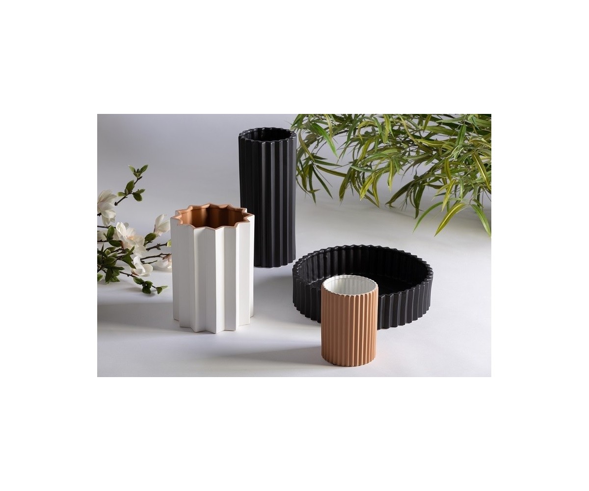 Toda la artesanía, cuidado del detalle, diseño y estética de la colección SOLID, plasmada en los nuevos jarrones creados y diseñados por EREdesign. El eje conductor del diseño se basa principalmente en los tejidos plisados y la adaptación de éstos a las formas tridimensionales.