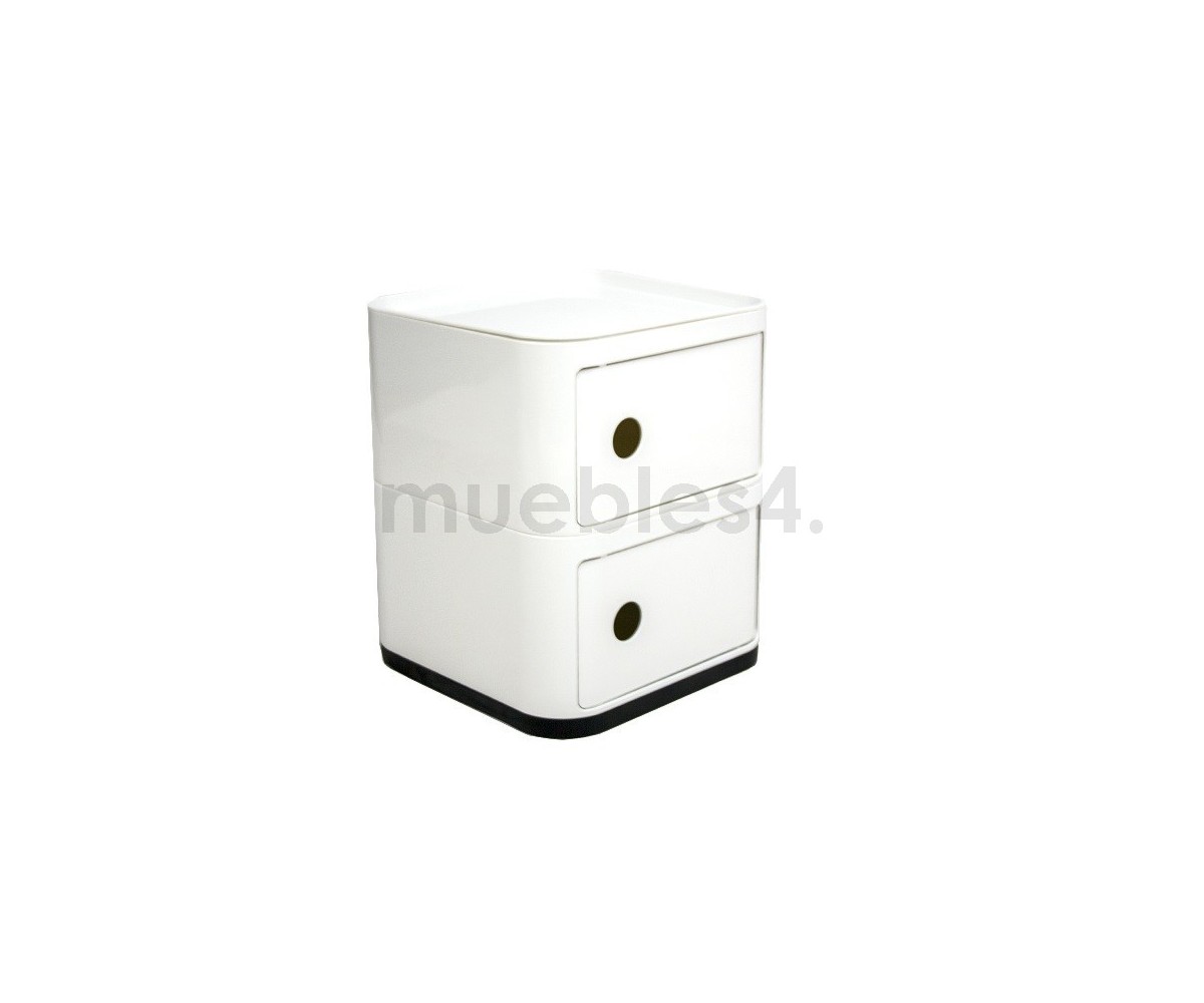 Contenedor inspirado en un diseño de Anna Castelli Ferrieri. Fabricado en polipropileno color blanco, compuesto por 2 módulos de puerta abatible y una bandeja superior. Todas las piezas son desmotables, permite añadir o quitar piezas en vertical para crear módulos de almacenaje a la medida de nuestras necesidades. Réplica exacta con materiales originales de máxima calidad.