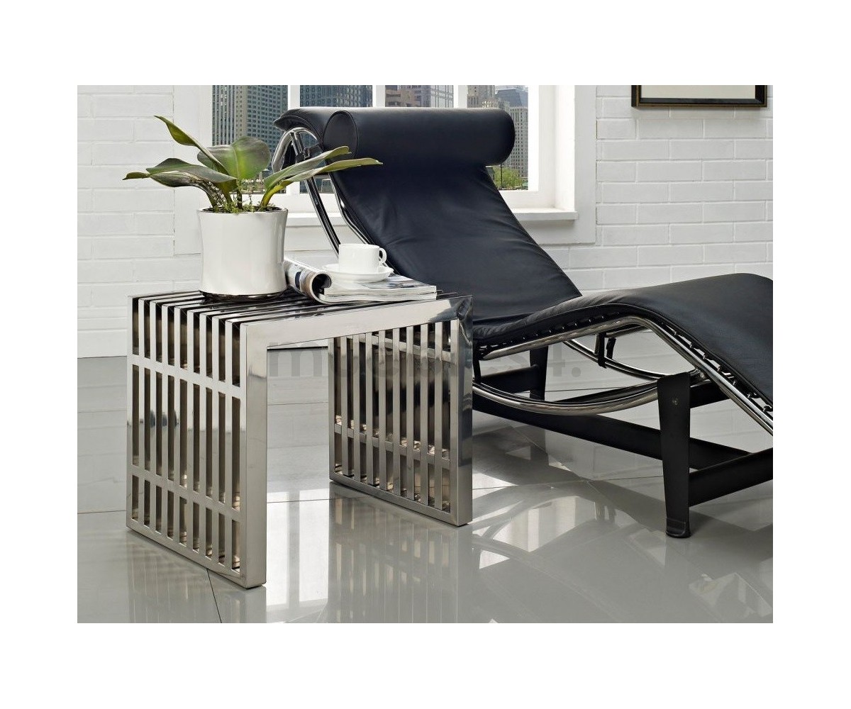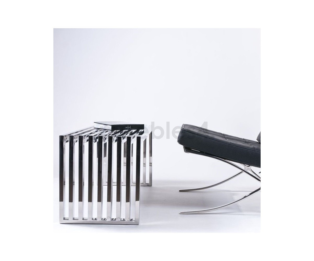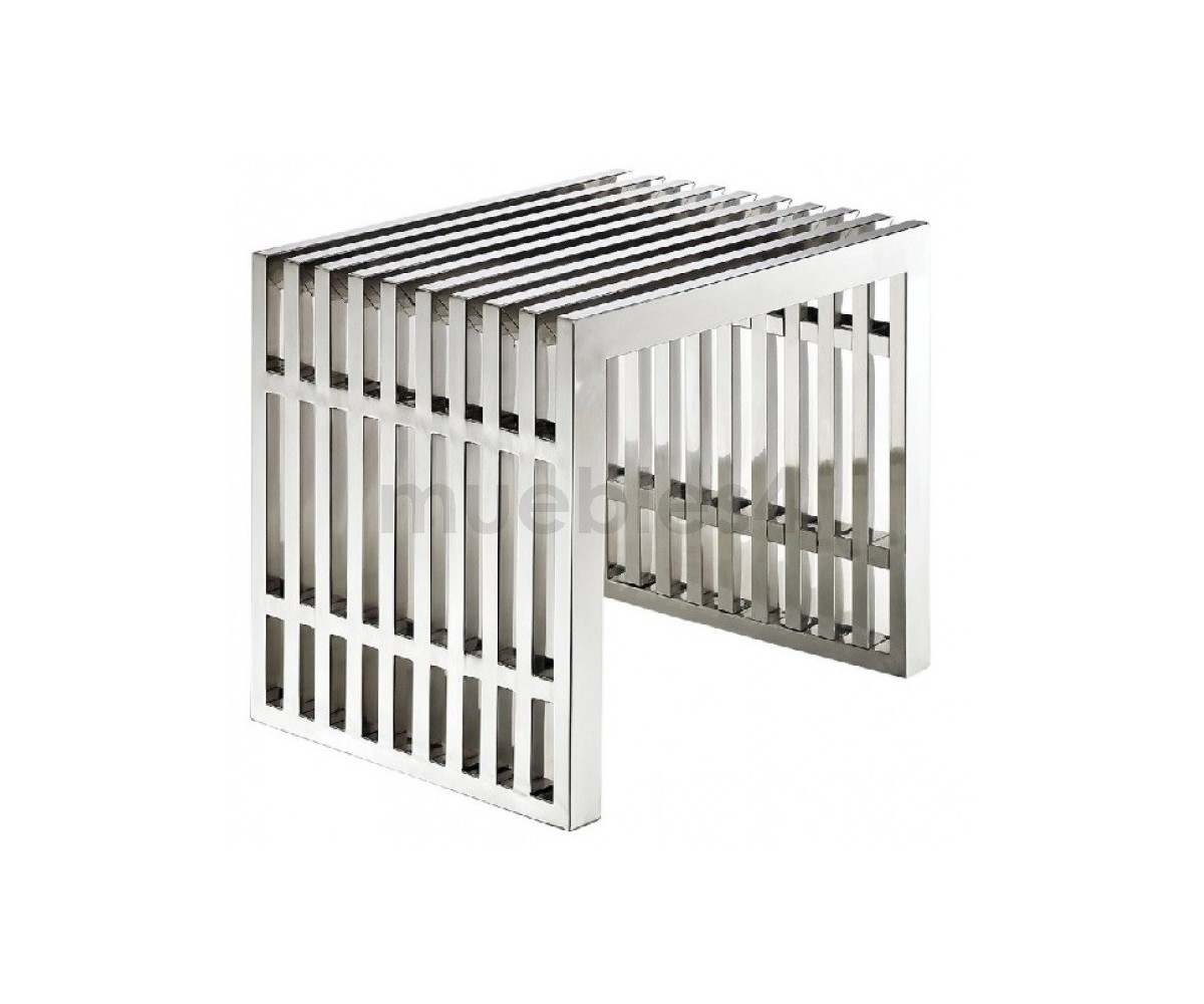 Banco inspirado en un diseño de Valentino Boretti. Fabricado por varias tiras de acero brillo, colocadas de forma intermitente dandole un aspecto muy ligero y llimpio. Réplica exacta con materiales originales de máxima calidad.