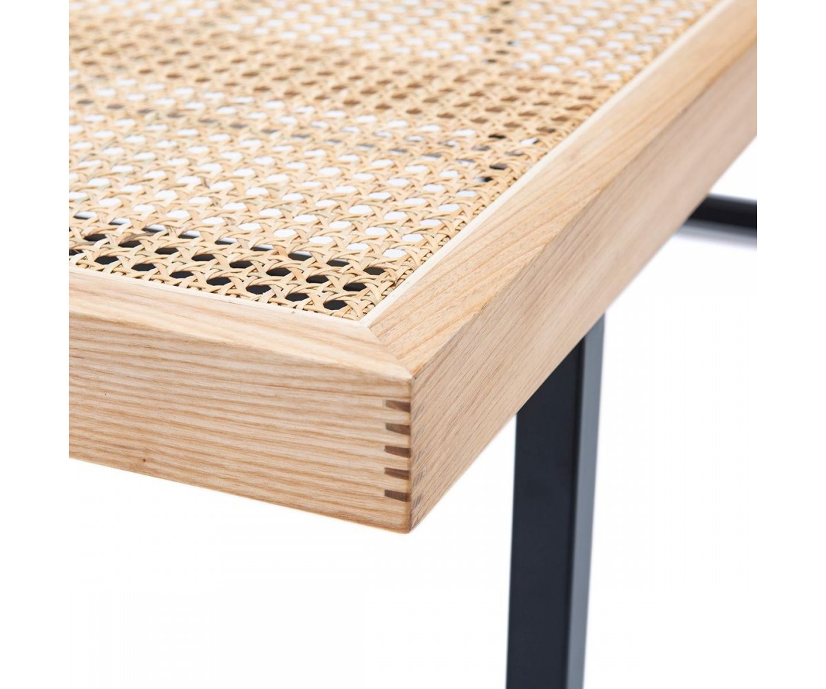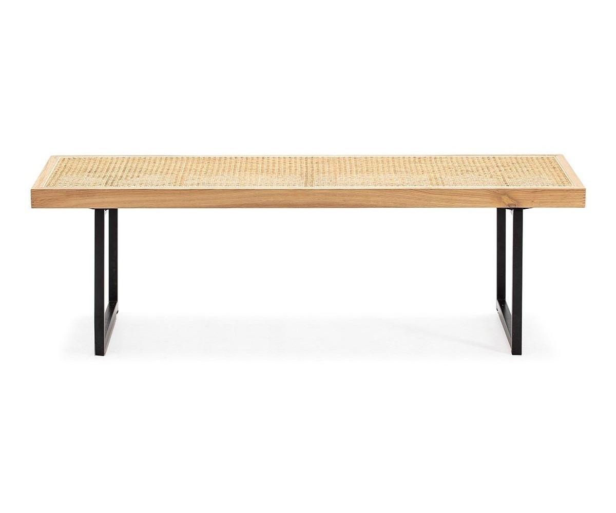 Banco inspirado en un diseño de Tommy Hyldahl y Kristian Sofus Hansen. Le Roi Bench está hecho de roble macizo con incrustaciones de ratán francés natural. Inspirado en los muebles de estilo colonial francés, Le Roi Bench es a la vez atemporal y funcional. Funciona igual de bien como un café mesa en un salón o banco en un recibidor o dormitorio. Estructura en acero con triple lacado color negro. Réplica con materiales originales de máxima calidad.