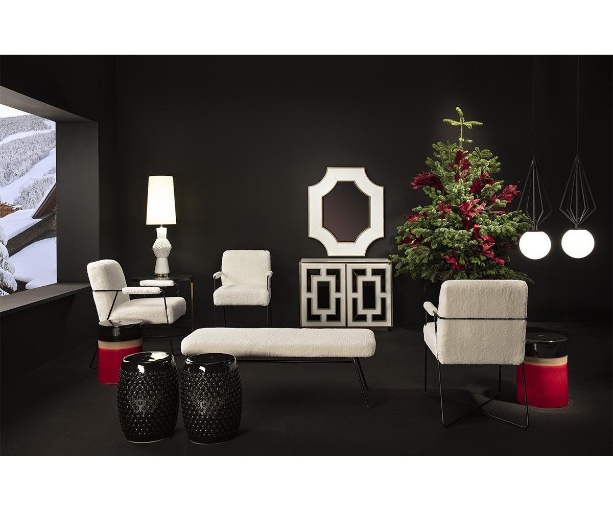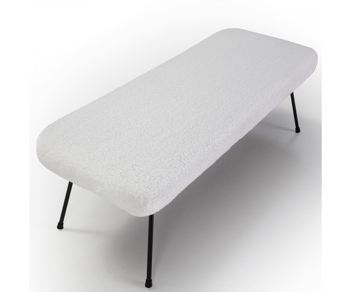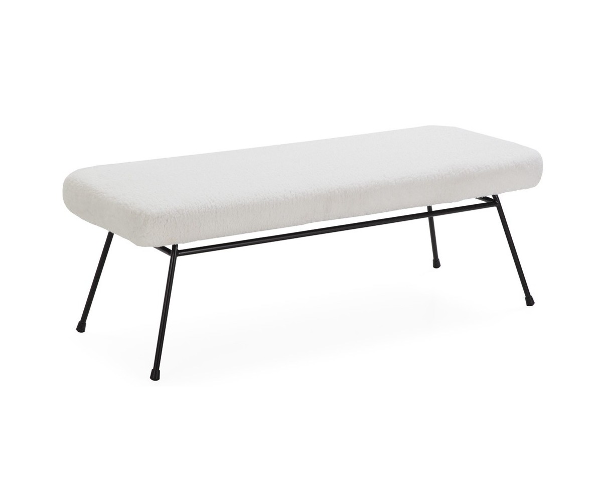 Banco inspirado en un diseño de Staffan Tollgard. Estructura en acero tubular con triple lacado al horno color negro. Asiento rectangular forrado en tela / rayón color blanco. No requiere montaje. Peso total 14 kg. Esta serie esta compuesta por banco y butaca. Réplica con materiales originales de máxima calidad.