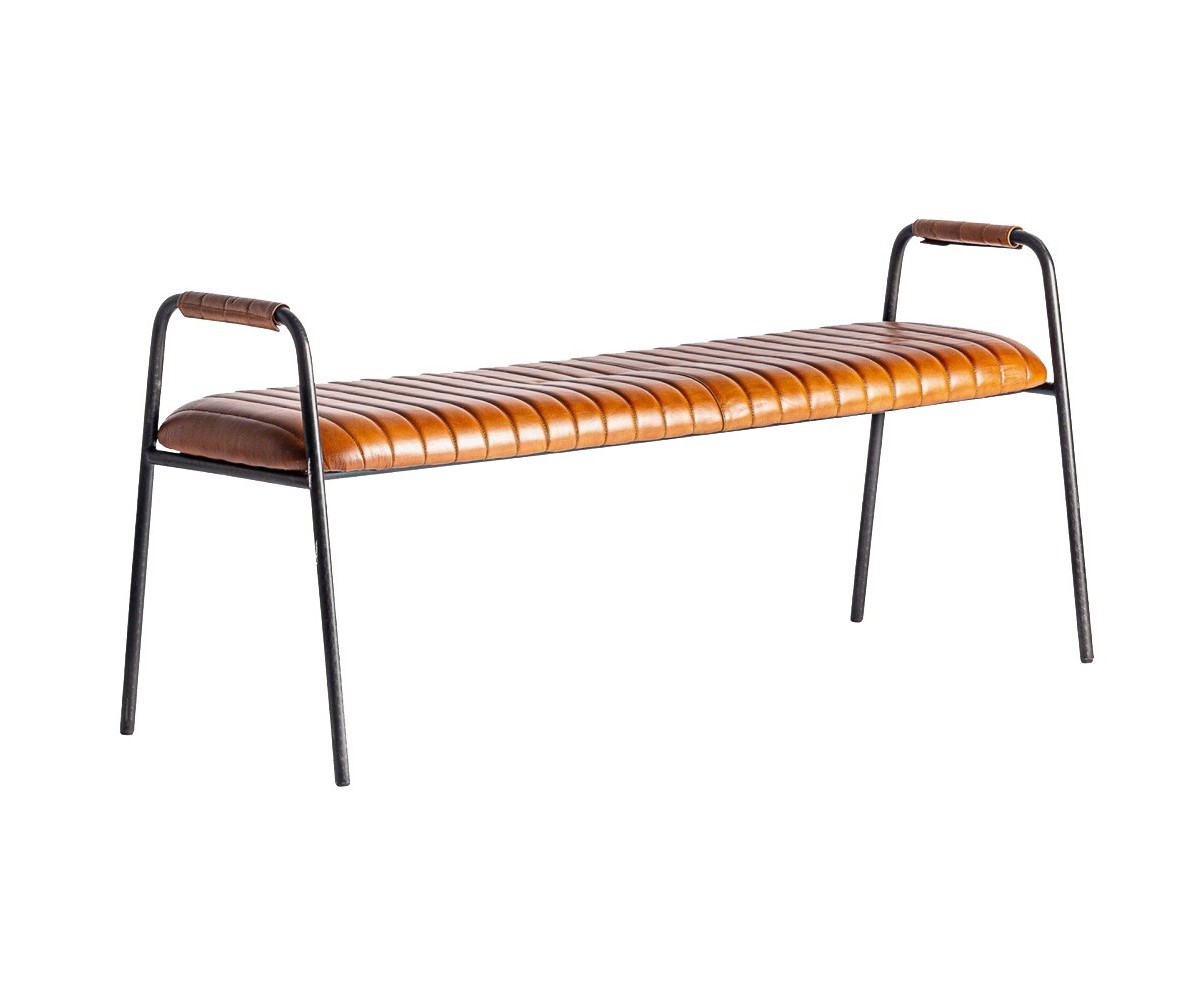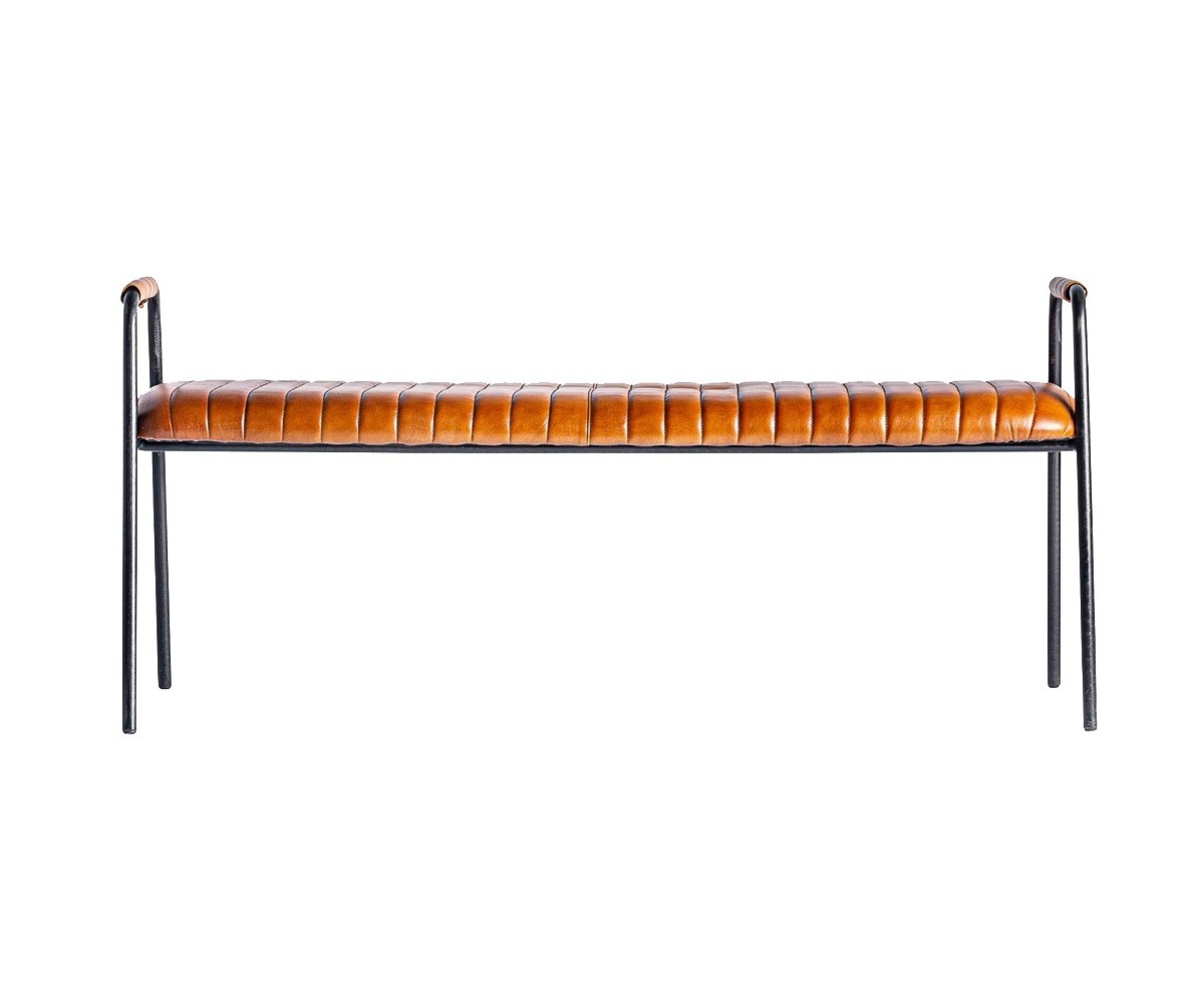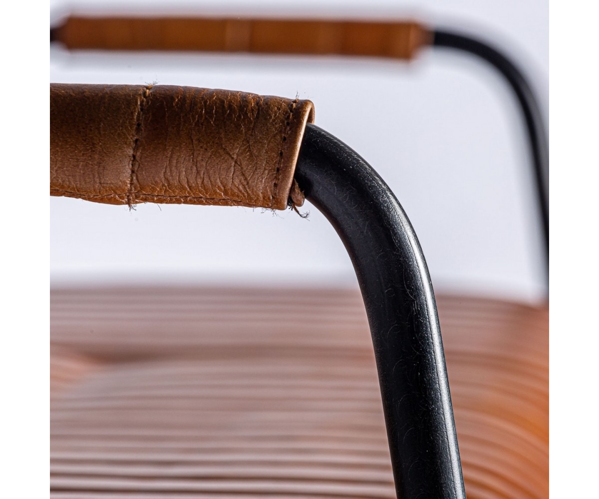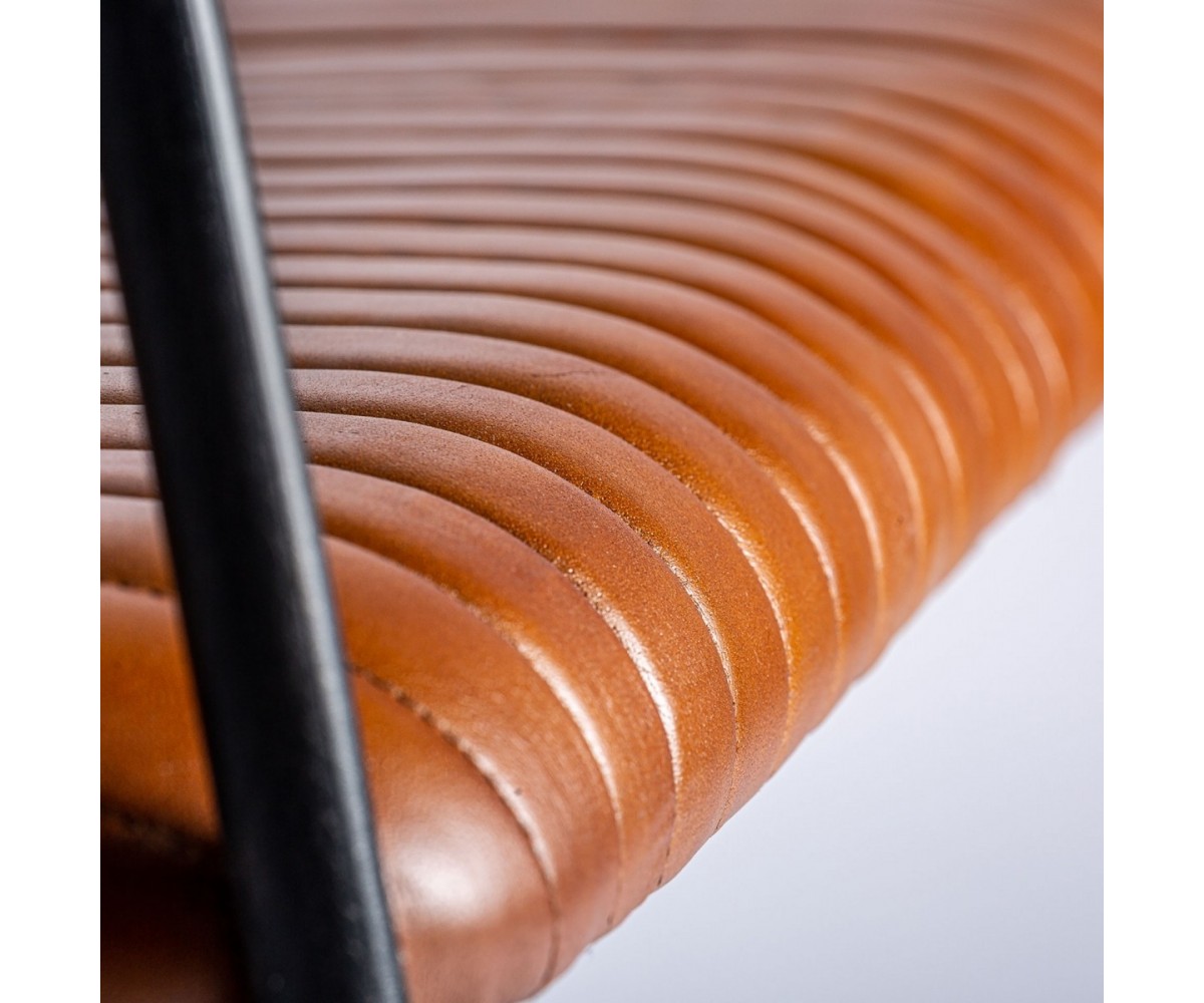 Banco inspirado en un diseño de Kurt Østervig. Estructura fabricada en acero tubular lacado al horno color negro. Asiento tapizado en cuero italiano envejecido color marrón. Réplica con materiales originales de máxima calidad.