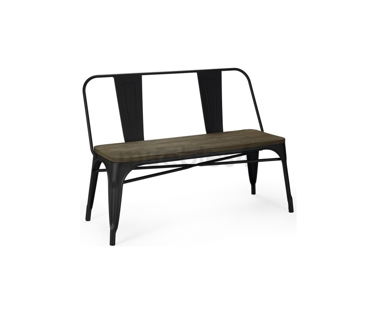 Banco con respaldo inspirado en un diseño de Xavier Pauchard. Estructura fabricada en acero con TRIPLE lacado color negro terminación mate, asiento en madera de olmo macizo. Tanto para uso exterior como interior. Réplica exacta con materiales originales de máxima calidad.