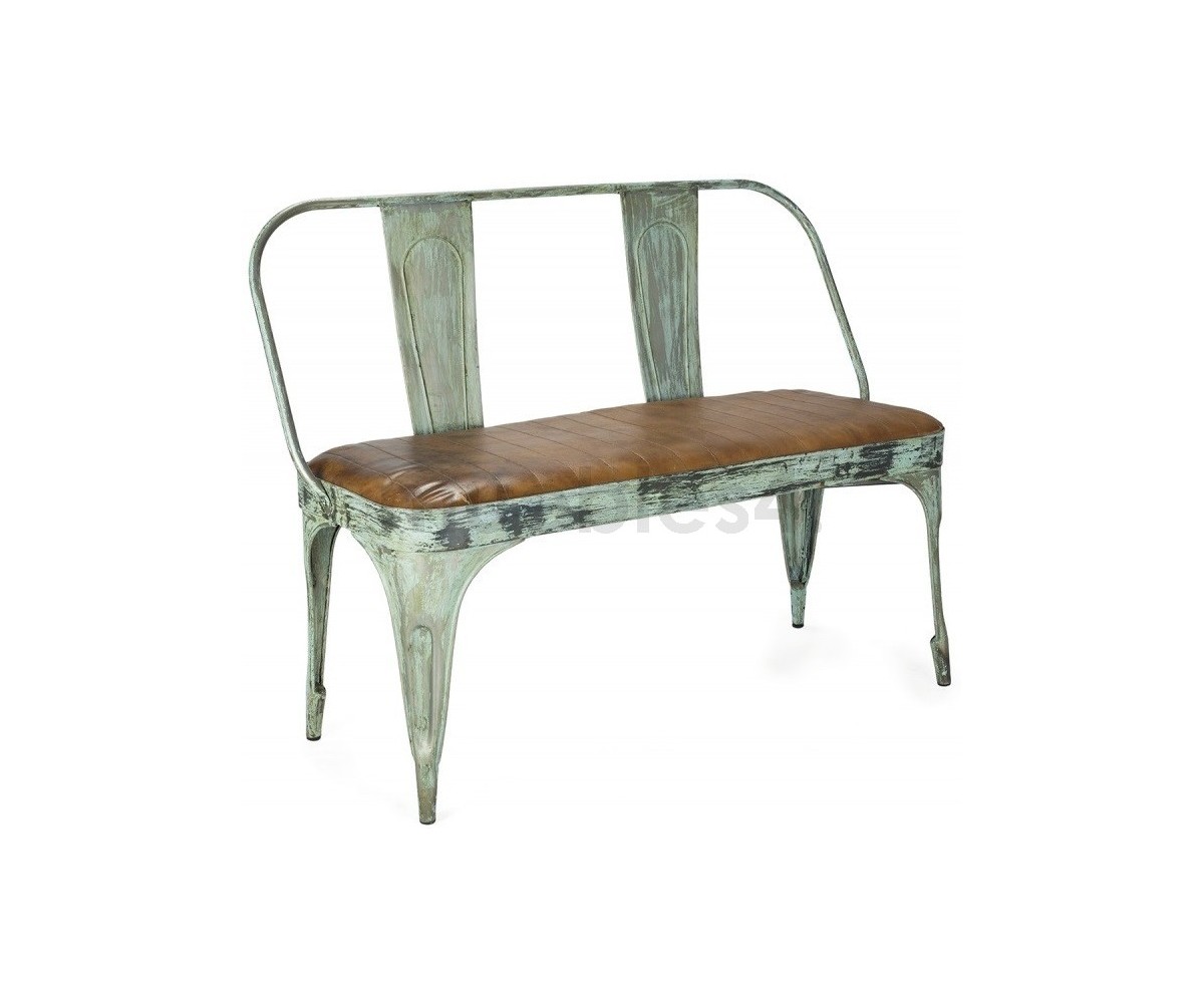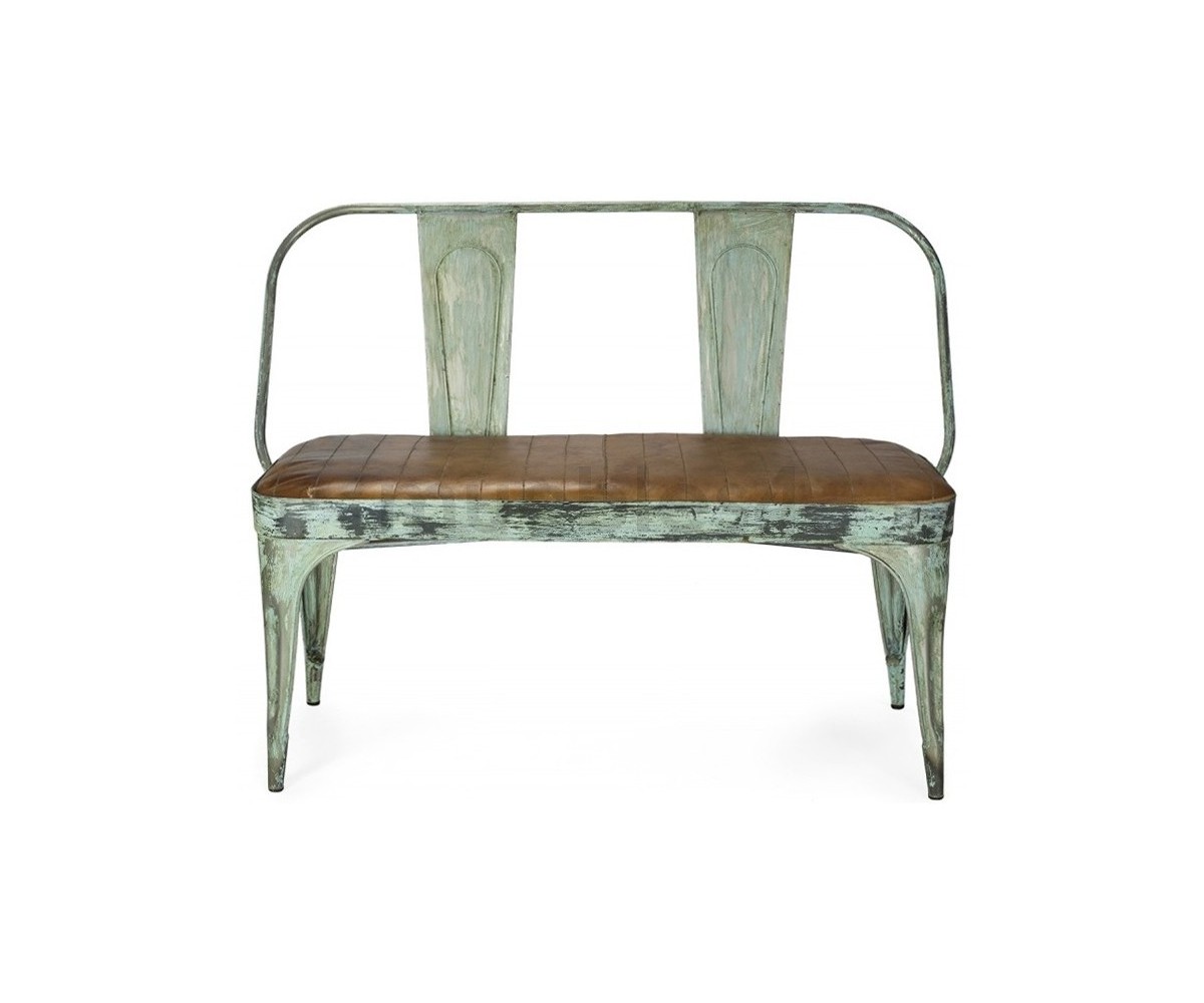 Banco con respaldo inspirado en un diseño de Xavier Pauchard. Estructura fabricada en acero lacado al horno epoxi color verde envejecido, asiento tapizado en cuero de alta calidad. Tanto para uso exterior como interior. Réplica exacta con materiales originales de máxima calidad.