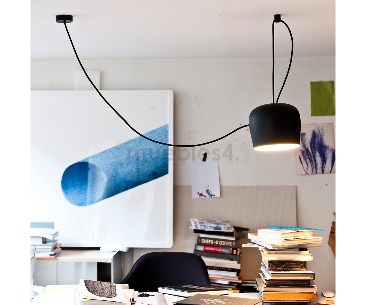Lámpara suspendida inspirada en un diseño de Ronan & Erwan Bouroullec. Fabricada en acero, disponible en negro o blanco interior blanco con tapa de metracrilato. Altura ajustable a sus necesidades. También disponible en 3 y 5 focos. Fabricada en Italia. Réplica exacta con materiales originales de máxima calidad.