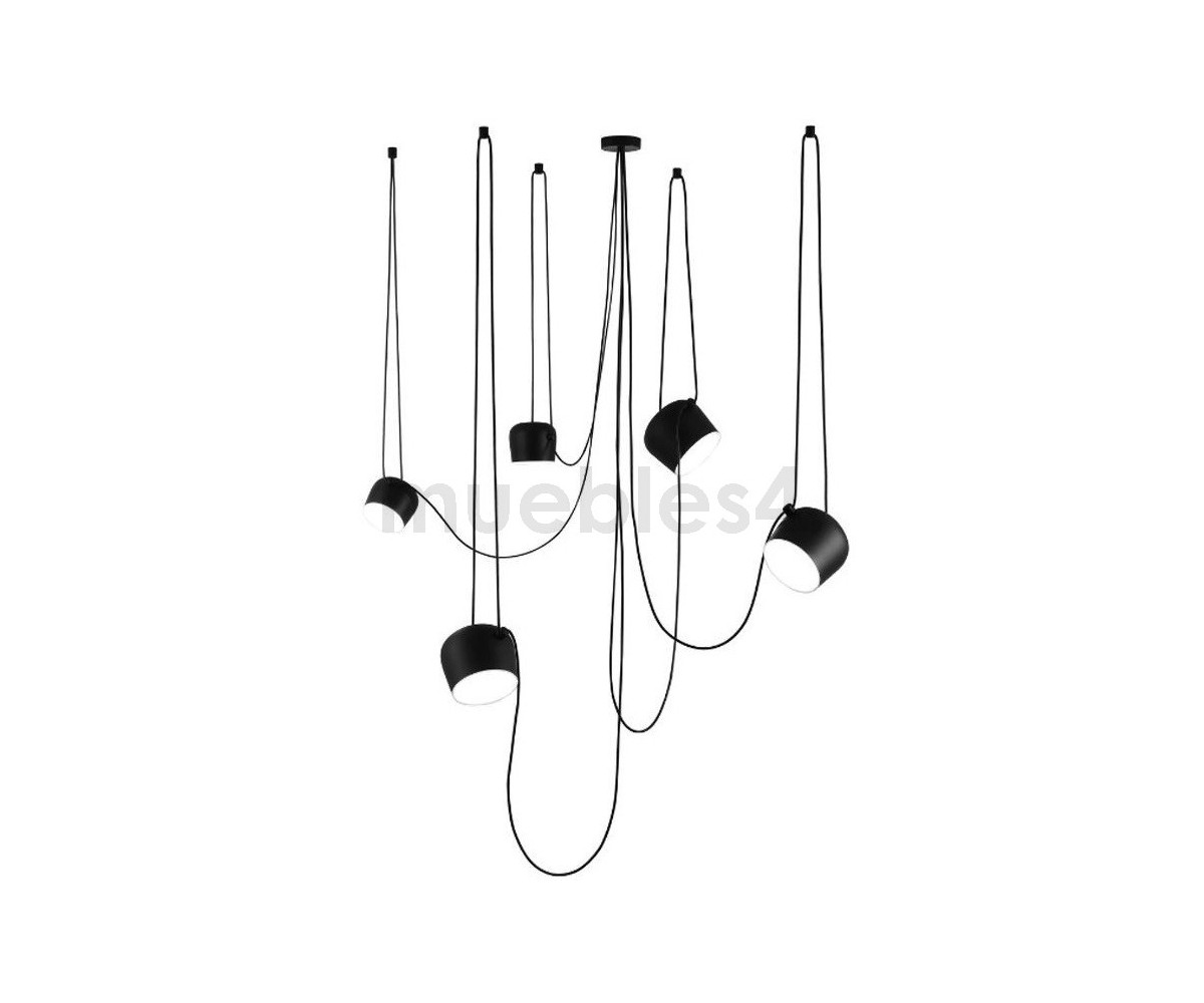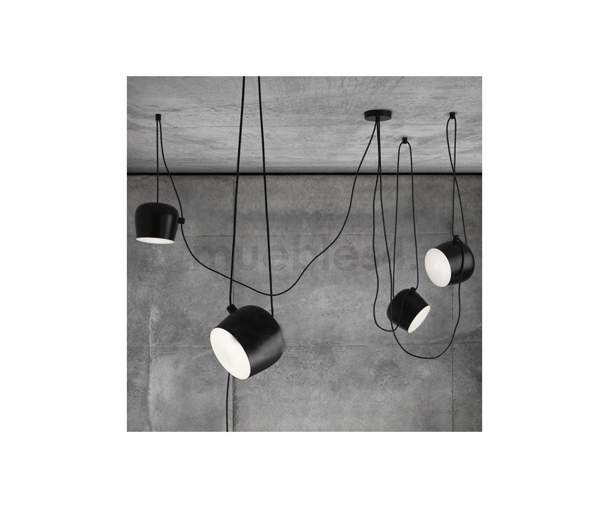Lámpara suspendida inspirada en un diseño de Ronan & Erwan Bouroullec. Fabricada en acero, disponible en negro o blanco, interior blanco con tapa de metracrilato. Altura ajustable a sus necesidades. También disponible en 1 y 3 focos. Focos tapados mediante un círculo acrílico. Fabricada en Italia. Réplica exacta con materiales originales de máxima calidad.