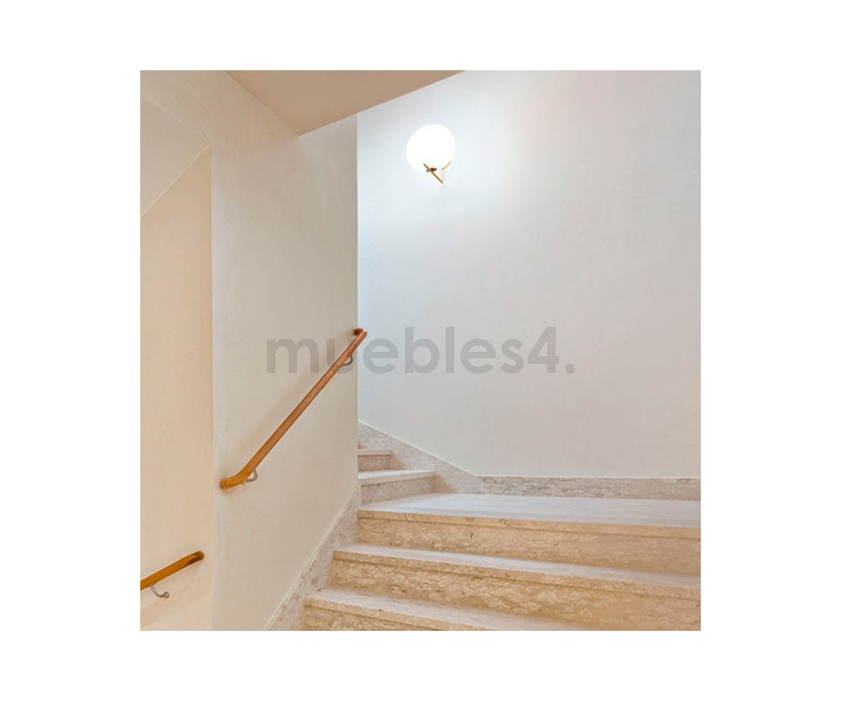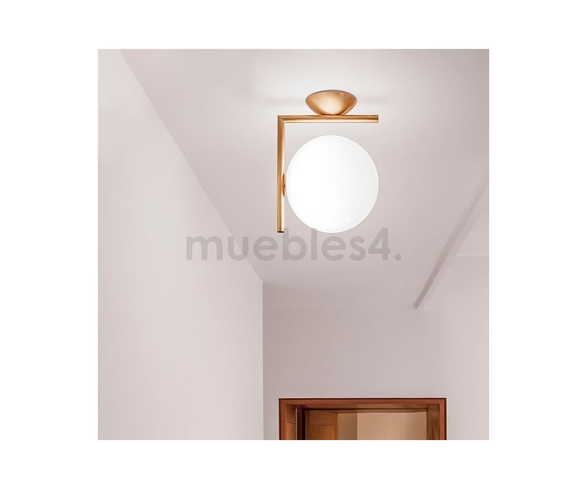 Lámpara de pared y techo, inspirada en un diseño de Michael Anastassiades. Estructura fabricada en acero tubular envejecido, tulipa circular de cristal blanco soplado. Para bombilla modelo E27. También disponible en lámpara de suelo, techo y sobremesa. Réplica exacta con materiales originales de máxima calidad.