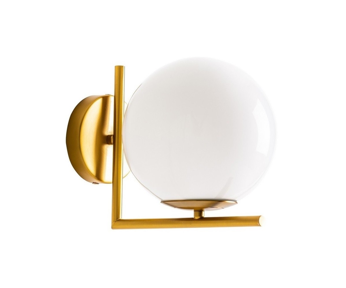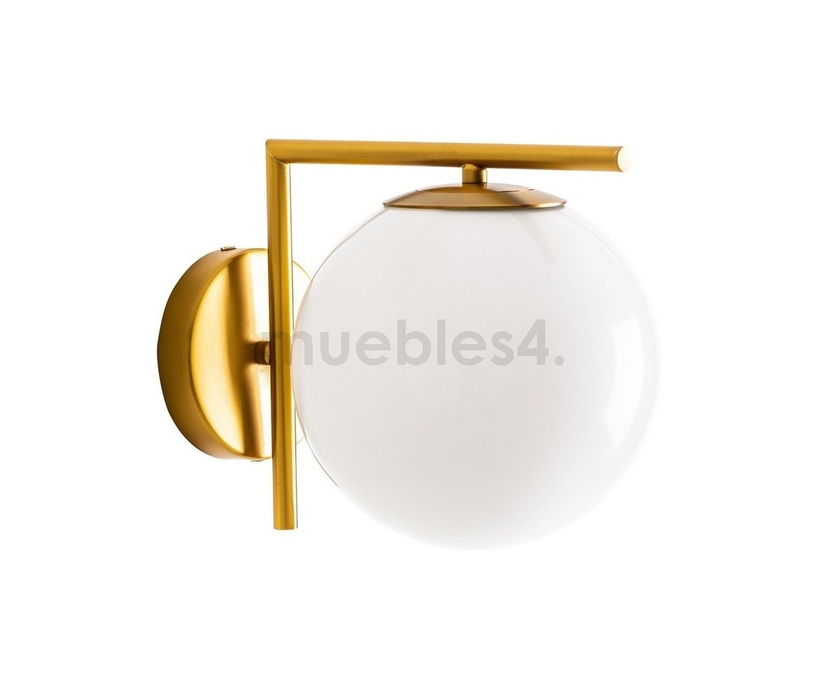 Lámpara de pared y techo, inspirada en un diseño de Michael Anastassiades. Estructura fabricada en latón dorado, tulipa circular de cristal blanco soplado. Para bombilla modelo E27. También disponible en lámpara de suelo, techo y sobremesa. Réplica exacta con materiales originales de máxima calidad.