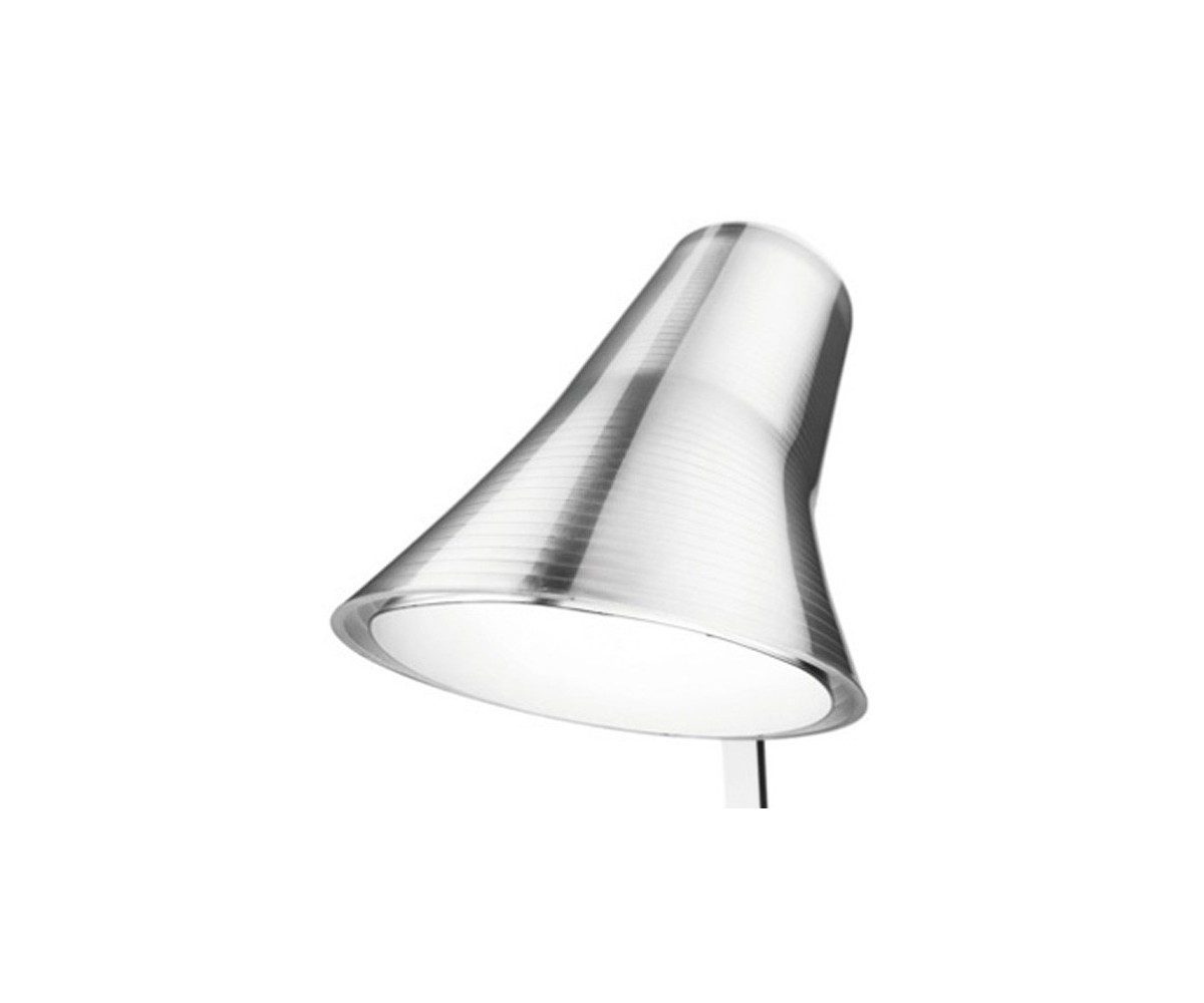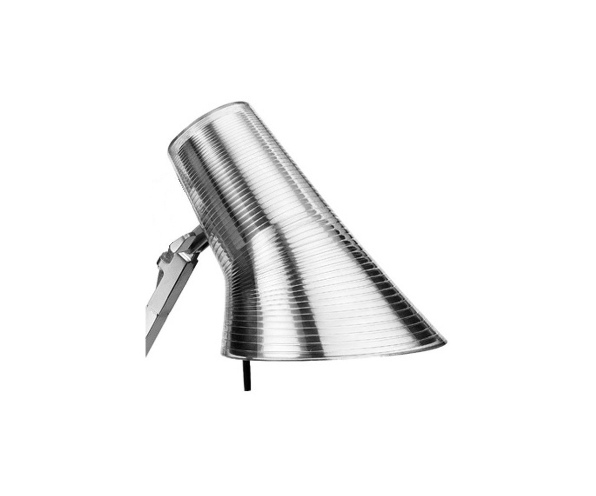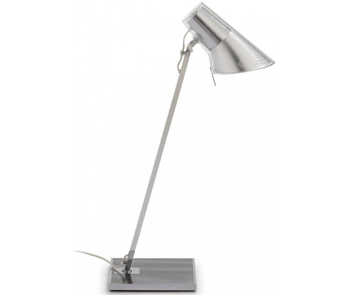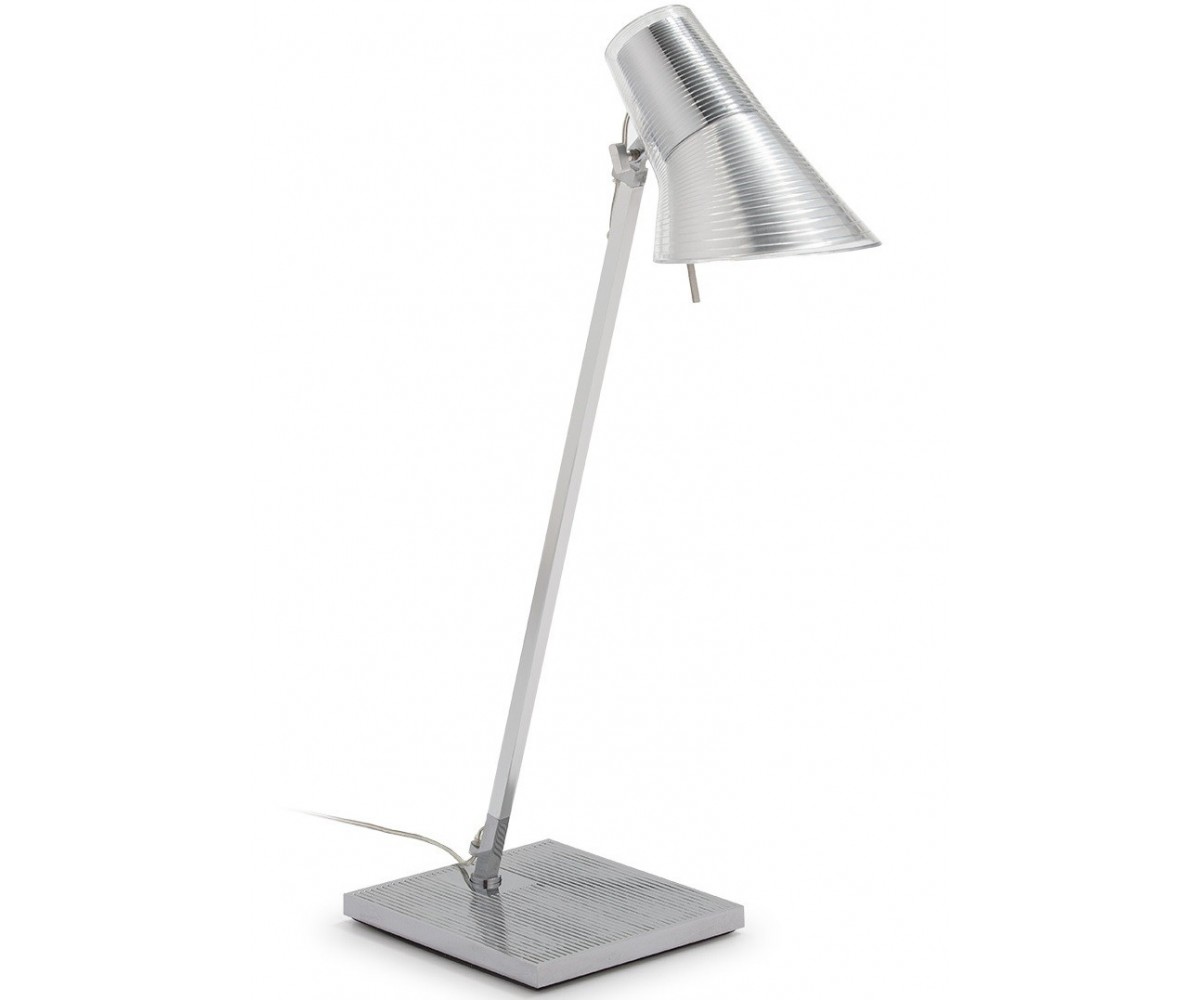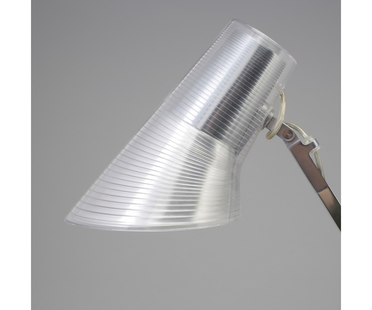 Lámpara de escritorio inspirado en un direño de Antonio Citterio. Fabricada en acero plata, terminación brillo, tulipa recubierta en policarbonato transparente. Réplica exacta con materiales originales de máxima calidad.