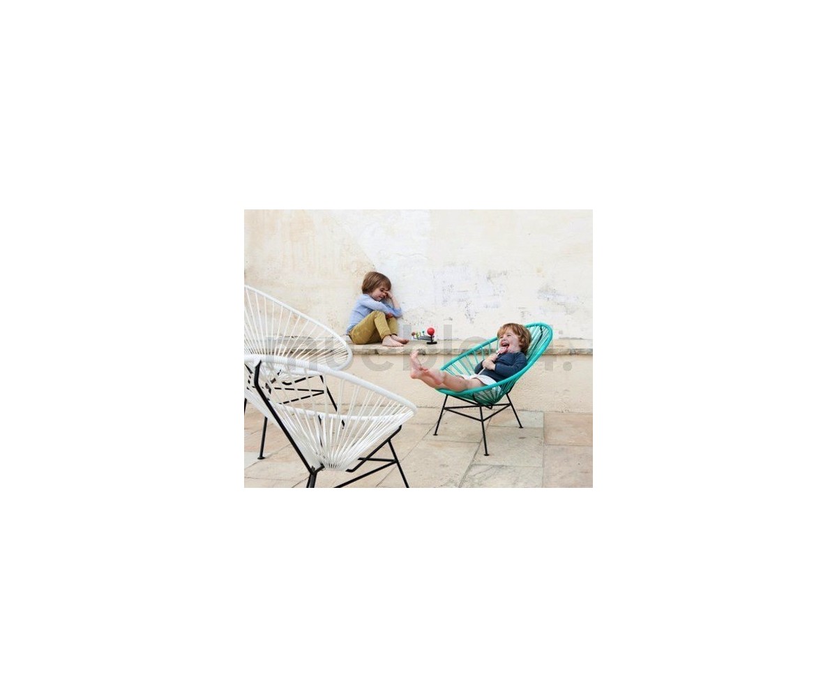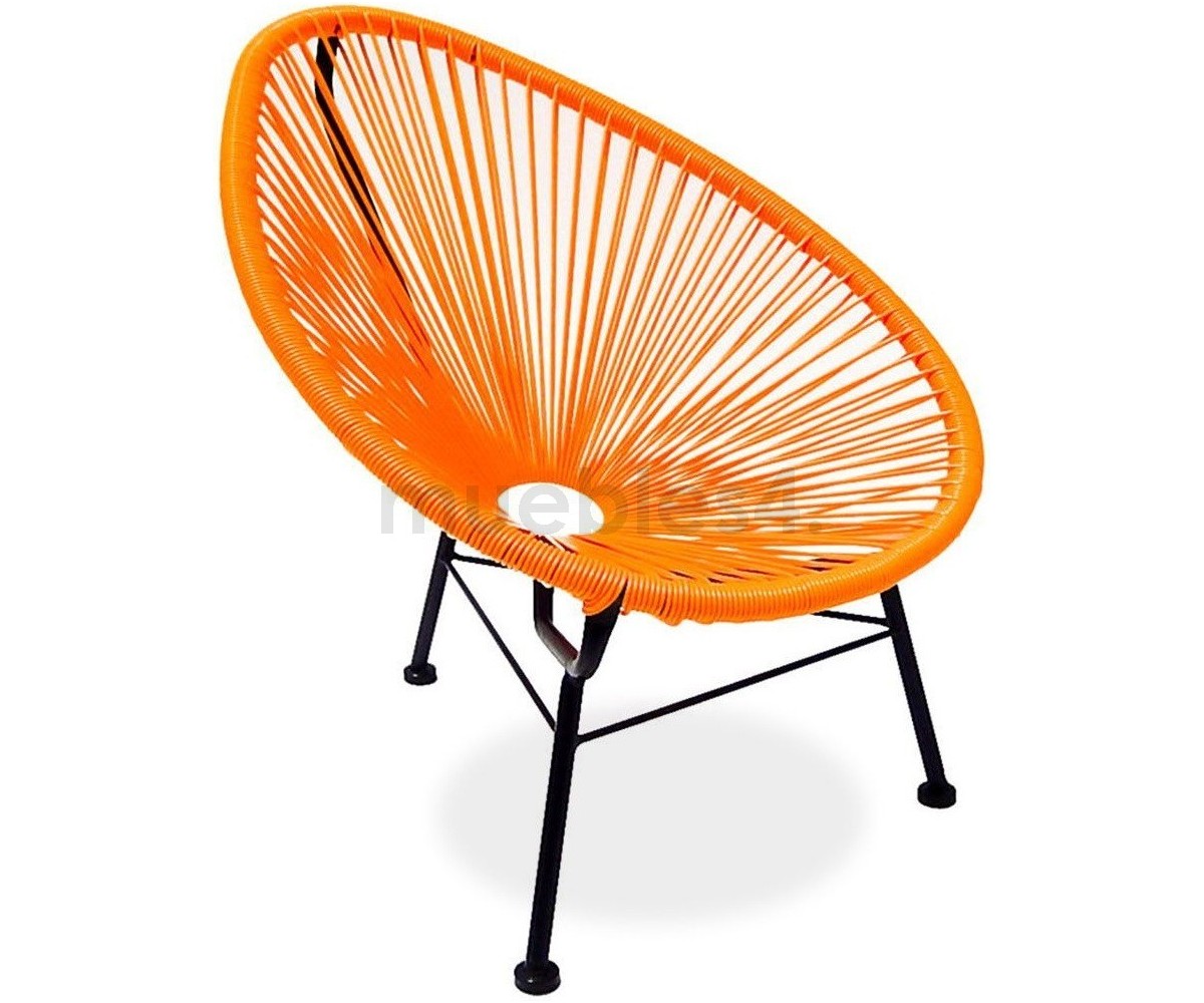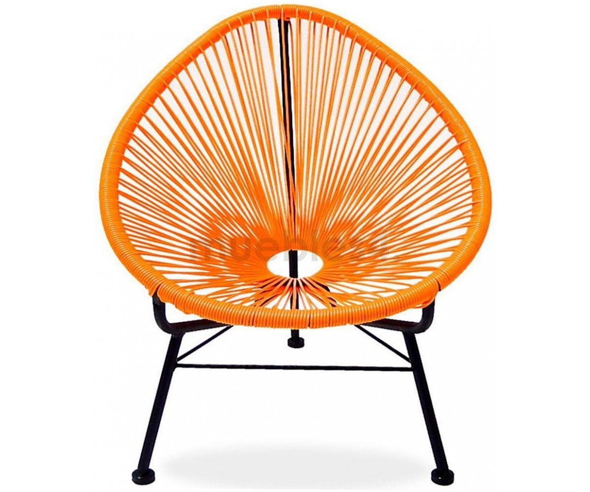 Silla para niño apilable para interior y exterior de diseñador anónimo. Estructura fabricada en acero pintando en epoxi terminación color negro de 12mm., asiento en tiras de polietileno de 4mm., terminación color rojo, naranja, azul y verde. Otros colores consultar. Réplica exacta con materiales originales de máxima calidad.