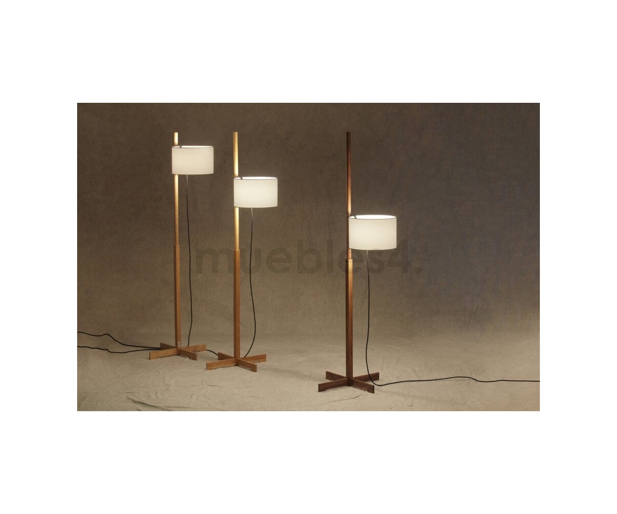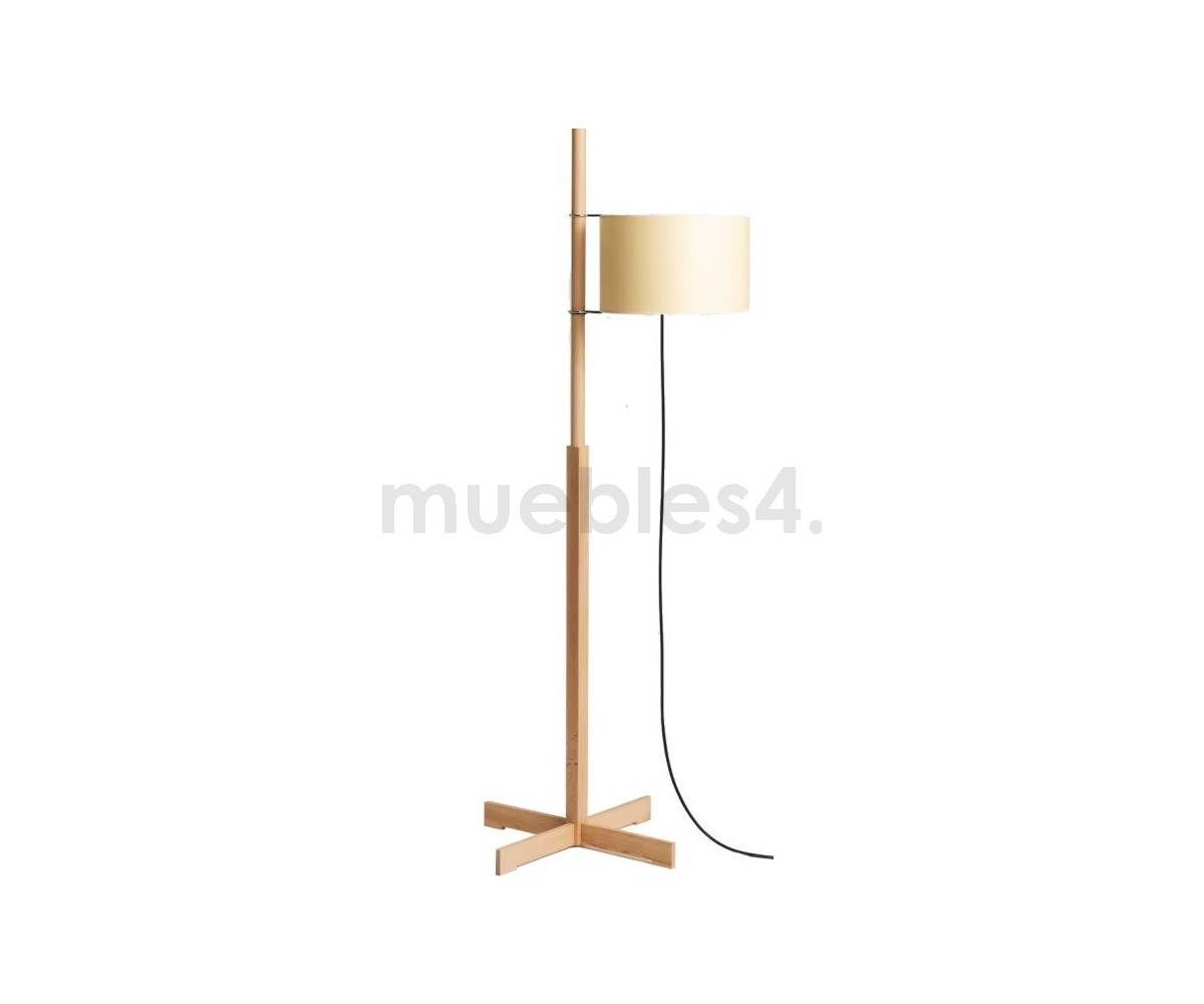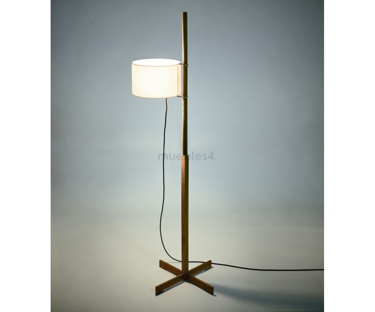 Lámpara de suelo inspirada en un diseño de Miguel Milá. Quizás sea la obra más aclamada de uno de los principales pioneros del diseño industrial en España. TMM es la versión más casual de la familia TM. Una base cruciforme lleva un eje cuadrado que se vuelve circular en el centro para permitir que la pantalla se mueva. La altura de La pantalla se puede ajustar.