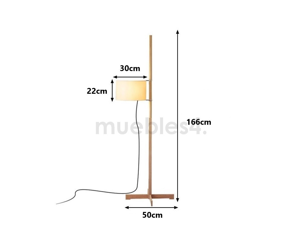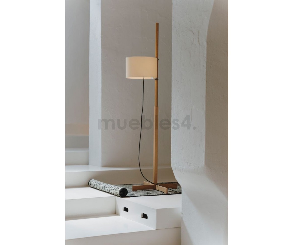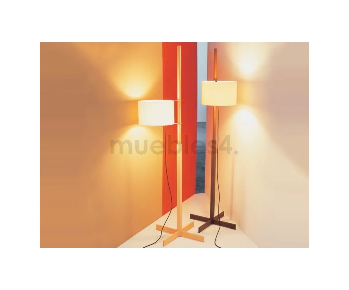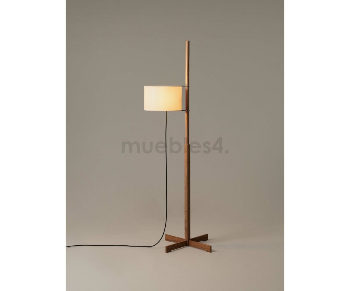 Lámpara de suelo inspirada en un diseño de Miguel Milá. Quizás sea la obra más aclamada de uno de los principales pioneros del diseño industrial en España. TMM es la versión más casual de la familia TM. Una base cruciforme lleva un eje cuadrado que se vuelve circular en el centro para permitir que la pantalla se mueva. La altura de La pantalla se puede ajustar.