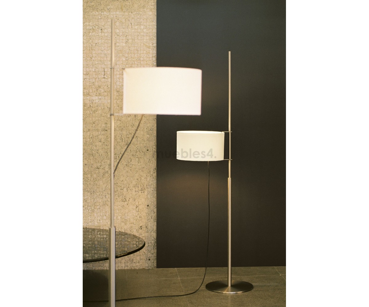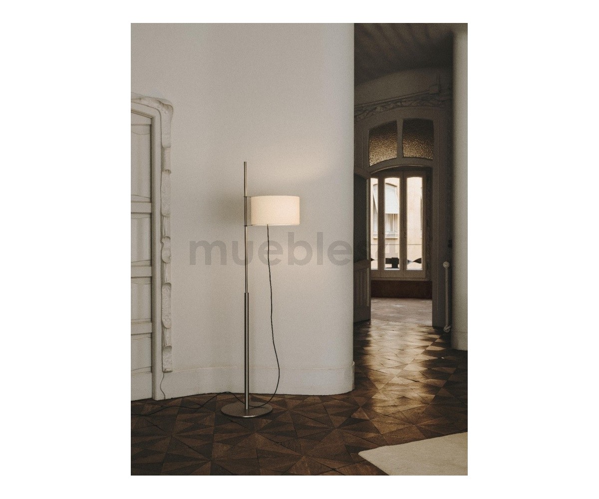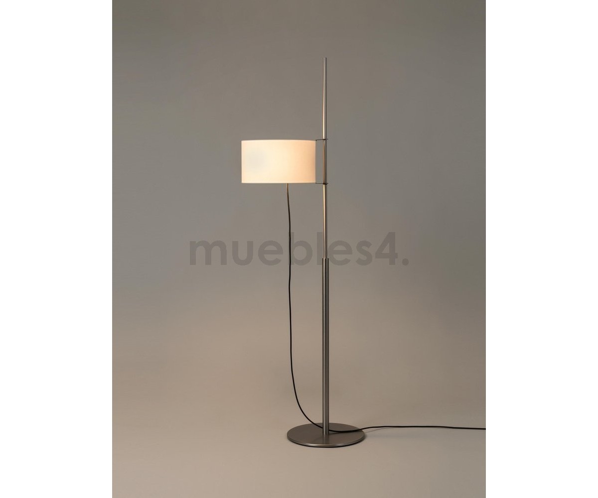 Lámpara de suelo inspirada en un diseño de Miguel Milá. Proyecto con la idea de una pantalla que se izase como una bandera por un mástil. Para reducir las secciones cambió la madera por el metal, y los pies en aspa por una base circular, menos intrusiva en la siempre repleta superficie de toda mesa de trabajo, pero mantuvo el ingenioso sistema de fijar la pantalla a la altura deseada. Apagada o encendida, la TMD consigue aportar calidez al espacio.