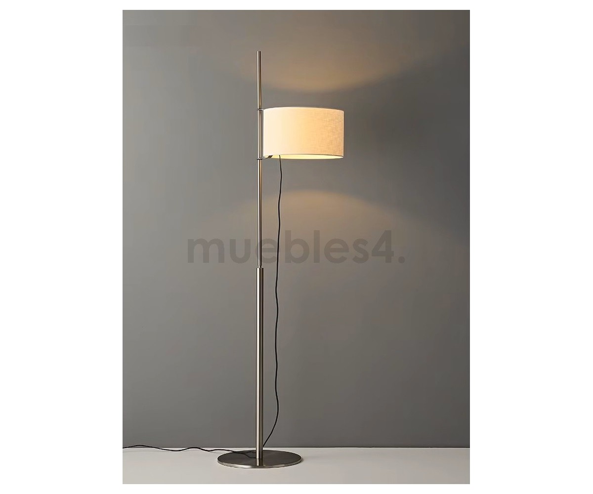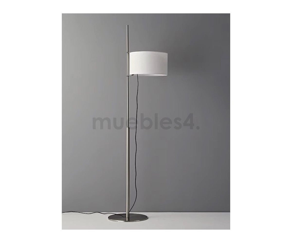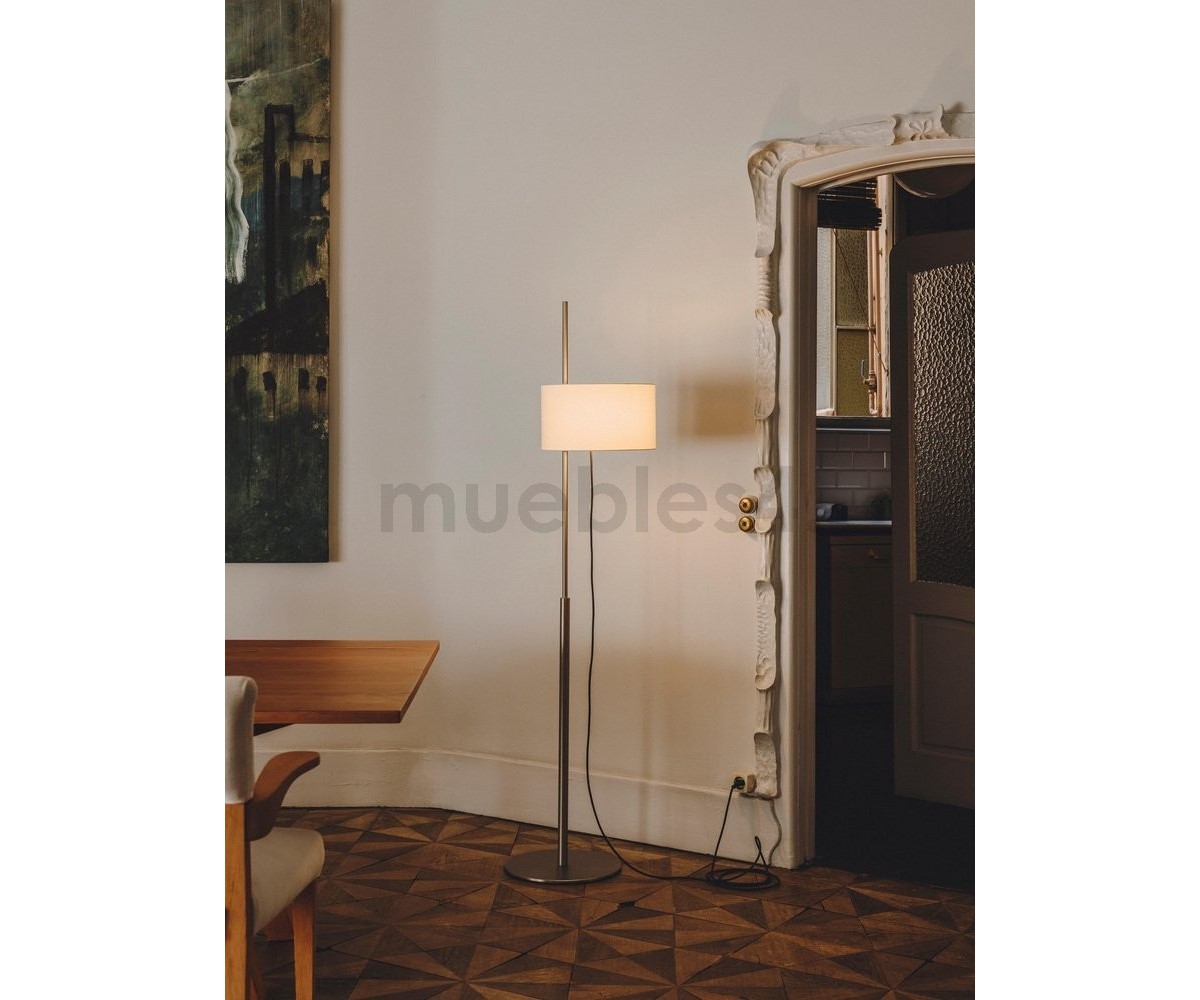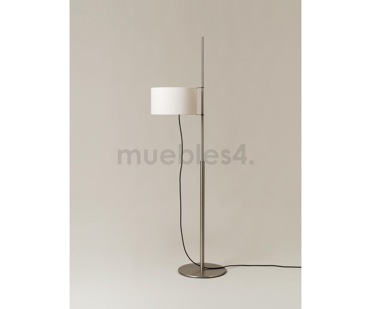 Lámpara de suelo inspirada en un diseño de Miguel Milá. Proyecto con la idea de una pantalla que se izase como una bandera por un mástil. Para reducir las secciones cambió la madera por el metal, y los pies en aspa por una base circular, menos intrusiva en la siempre repleta superficie de toda mesa de trabajo, pero mantuvo el ingenioso sistema de fijar la pantalla a la altura deseada. Apagada o encendida, la TMD consigue aportar calidez al espacio.