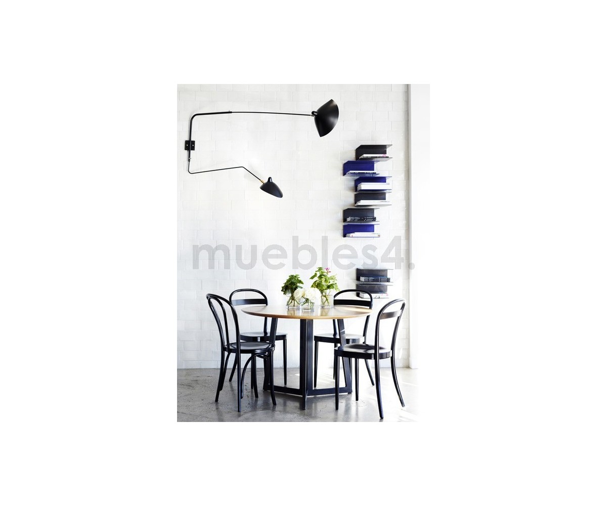 Lámpara aplique, inspirado en un diseño de Serge Mouille. Fabricado en acero con TRIPLE LACADO color negro mate y cobre, difusor orientable y brazos móviles. Longitud del cable 180cm. Incluye interruptor. Brazo largo 210cm fijo y brazo medio 132cm movible. Modelo que se puede colocar en punto de luz en pared con encendido y apagado mediante interruptor empotrado en pared. Bombilla modelo E14 no incluida. Réplica con materiales originales de máxima calidad.