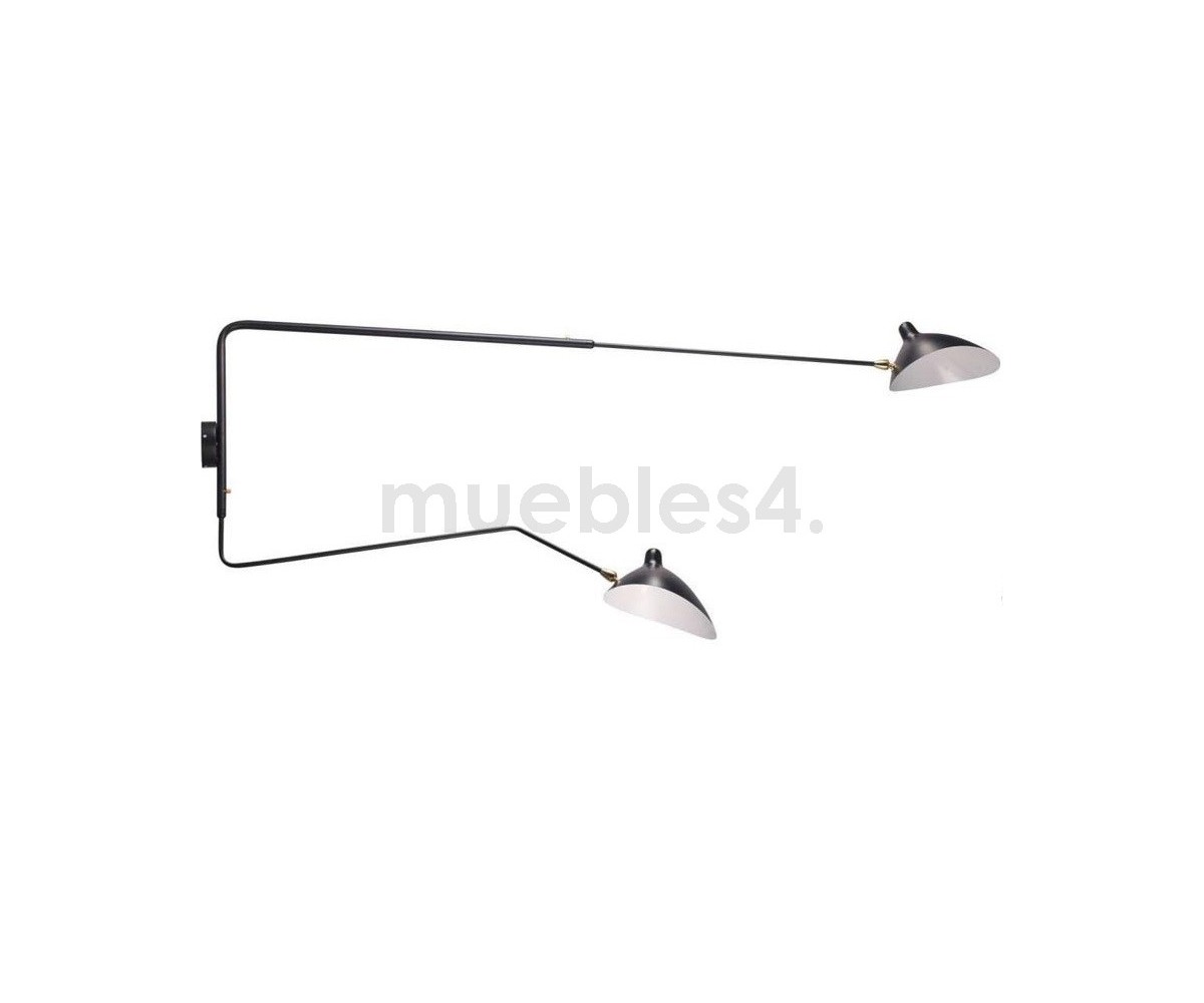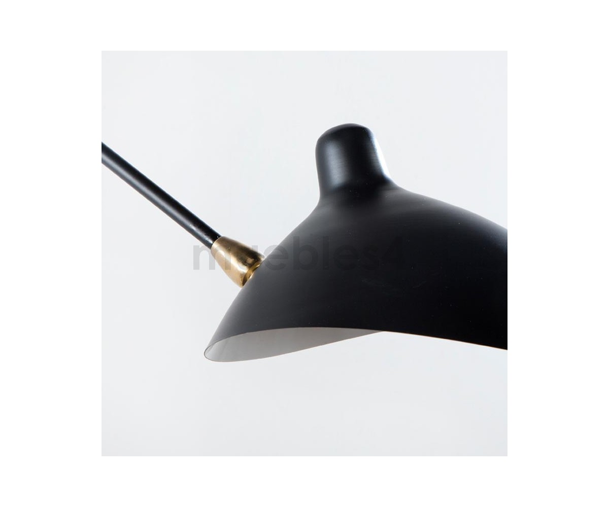Lámpara aplique, inspirado en un diseño de Serge Mouille. Fabricado en acero, color negro mate y cobre, difusor orientable y brazos móviles. Modelo que se puede poner directamente en punto de luz en la pared con encendido y apagado mediante interruptor. Brazo largo de 182cm fijo, brazo medio de 92cm movible. Bombilla E14 no incluida. Réplica con materiales originales de máxima calidad.