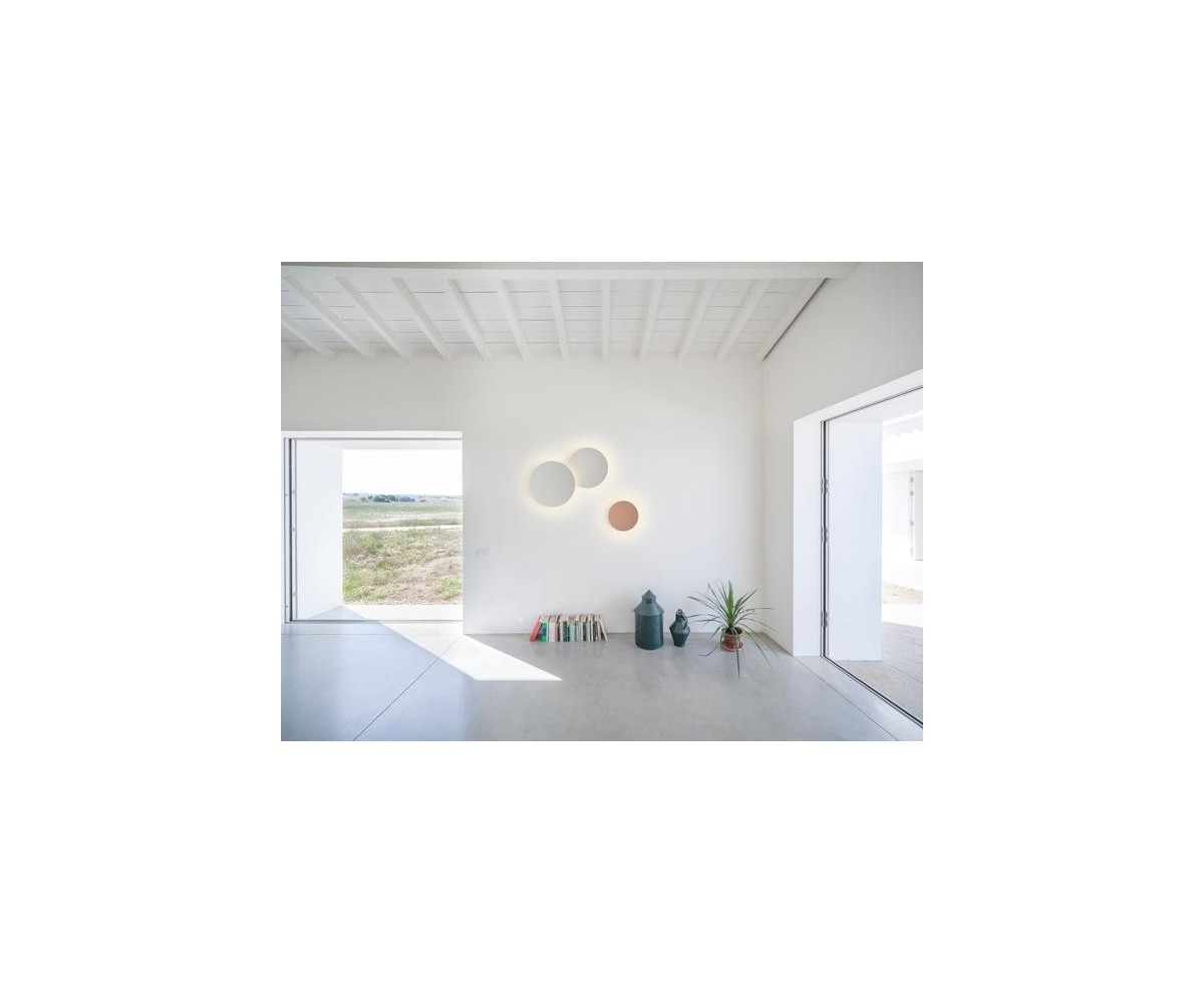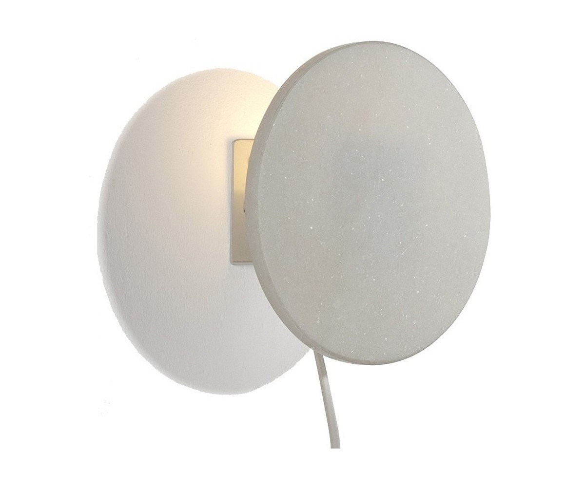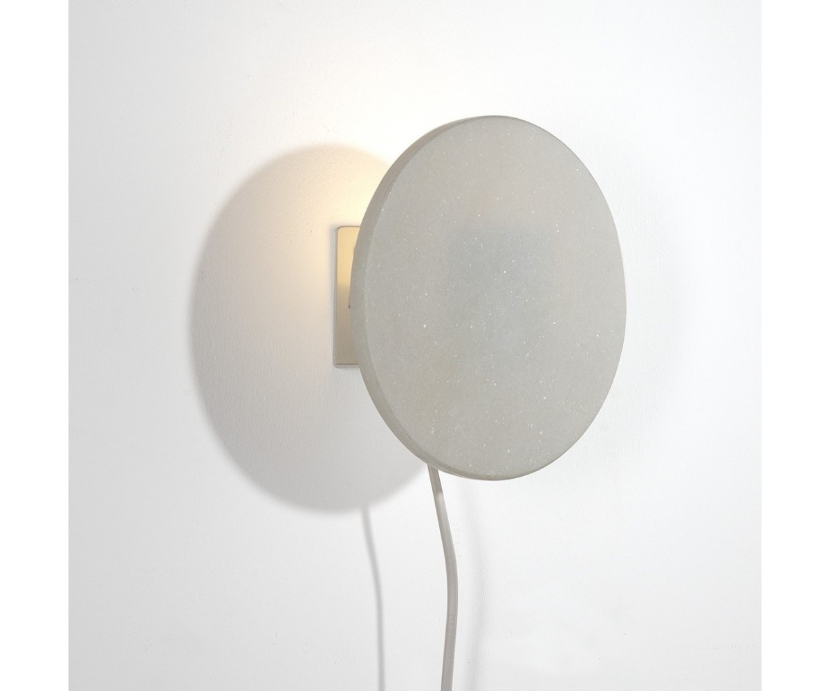 Lámpara de pared inspirado en un diseño de Jordi Vilardell para Vibia. Estructura fabricado en acero a pared, tulipa circular en mármol blanco. Se puede colocar mediante cable a enchufe red eléctrica o directamente a punto de luz. Modelo de bombilla E27. Réplica exacta con materiales originales de máxima calidad.
