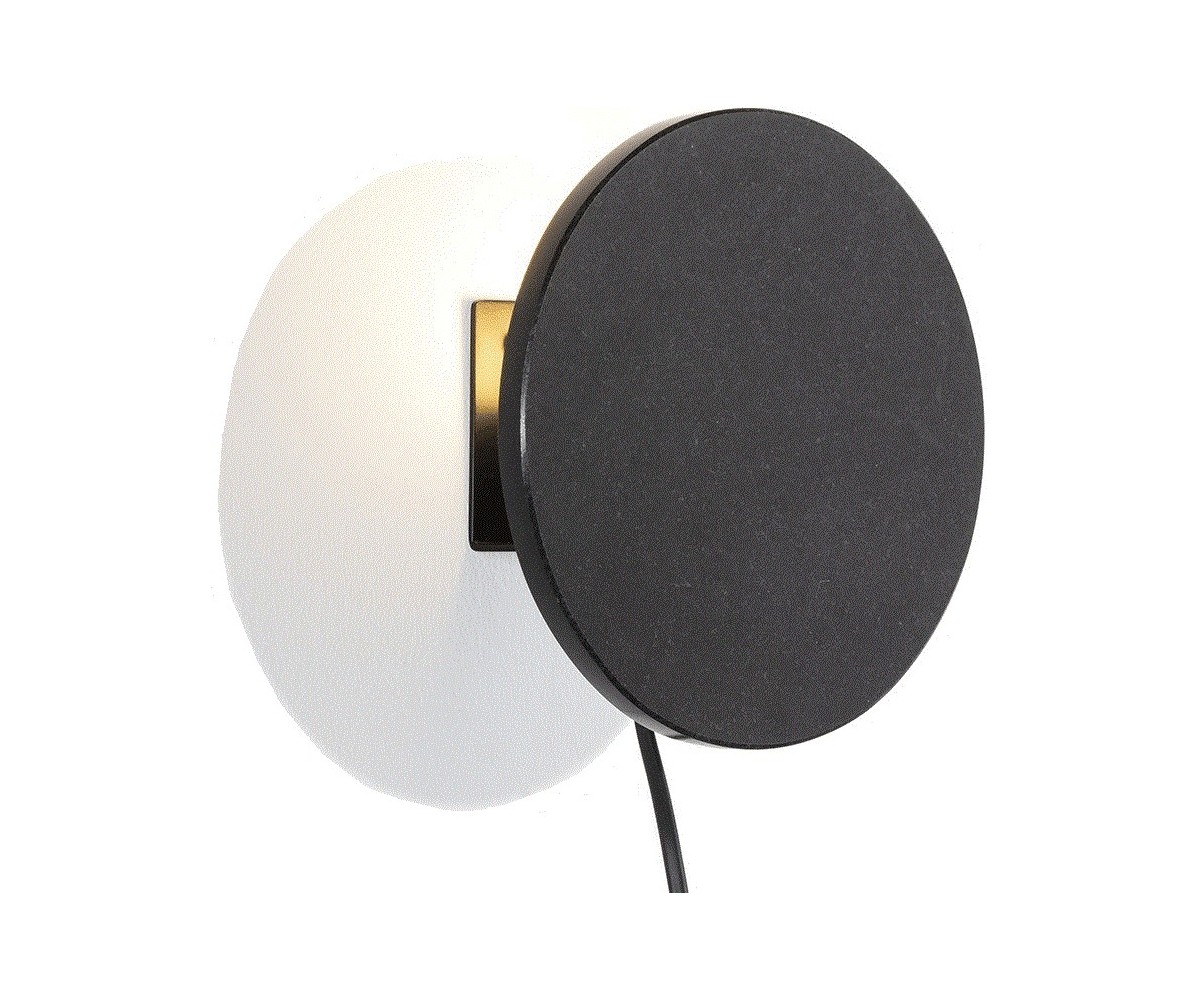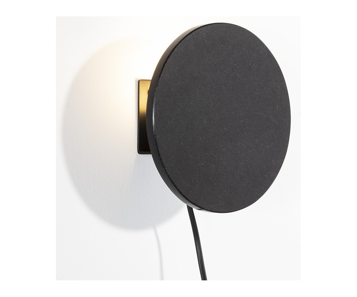 Lámpara de pared inspirado en un diseño de Jordi Vilardell para Vibia. Estructura fabricado en acero a pared, tulipa circular en mármol negro. Se puede colocar mediante cable a enchufe red eléctrica o directamente a punto de luz. Modelo de bombilla E27. Réplica exacta con materiales originales de máxima calidad.