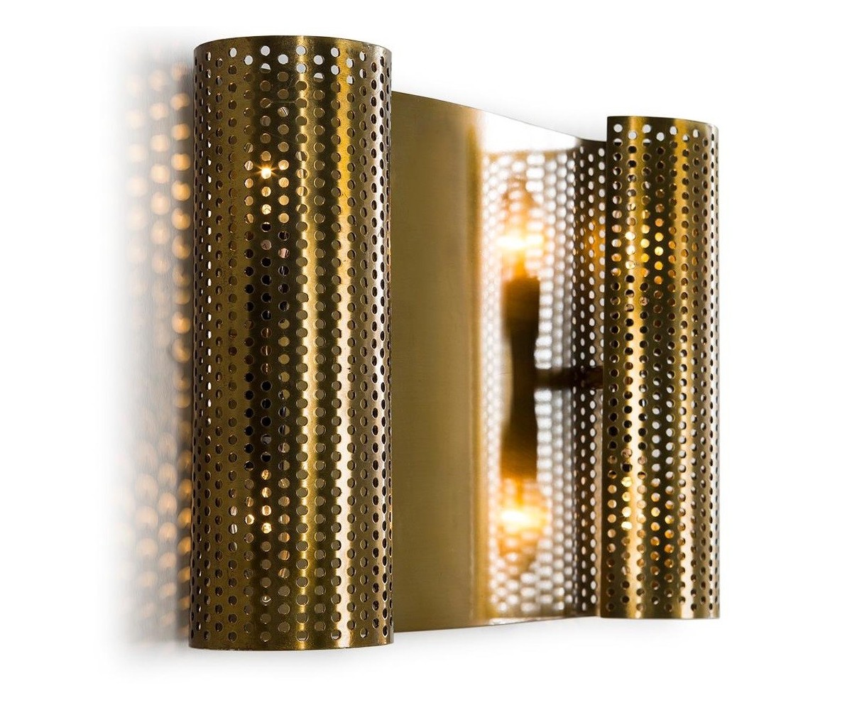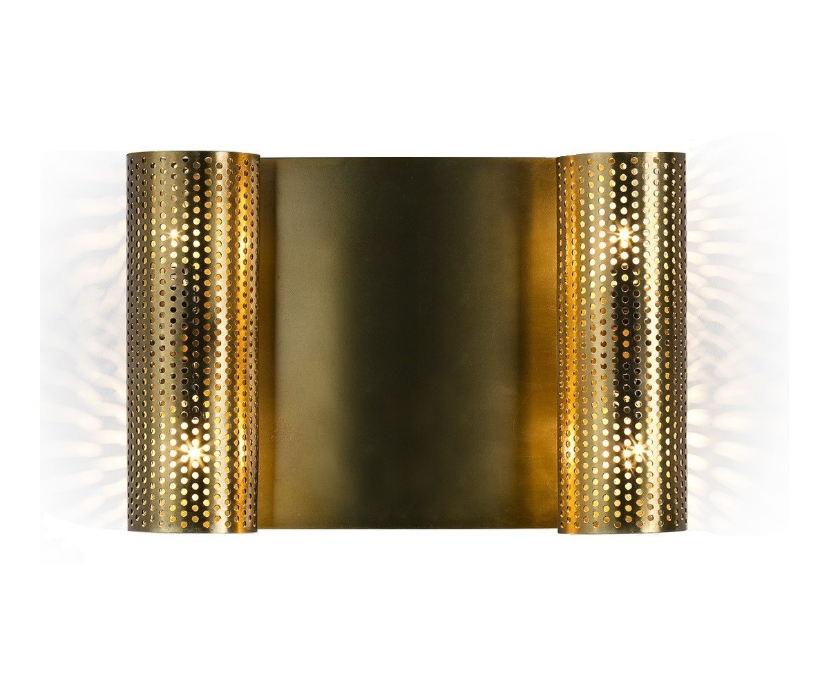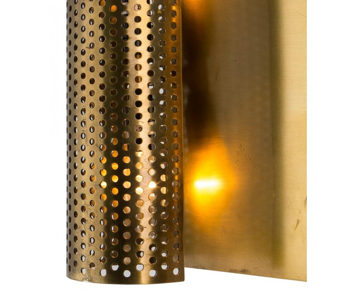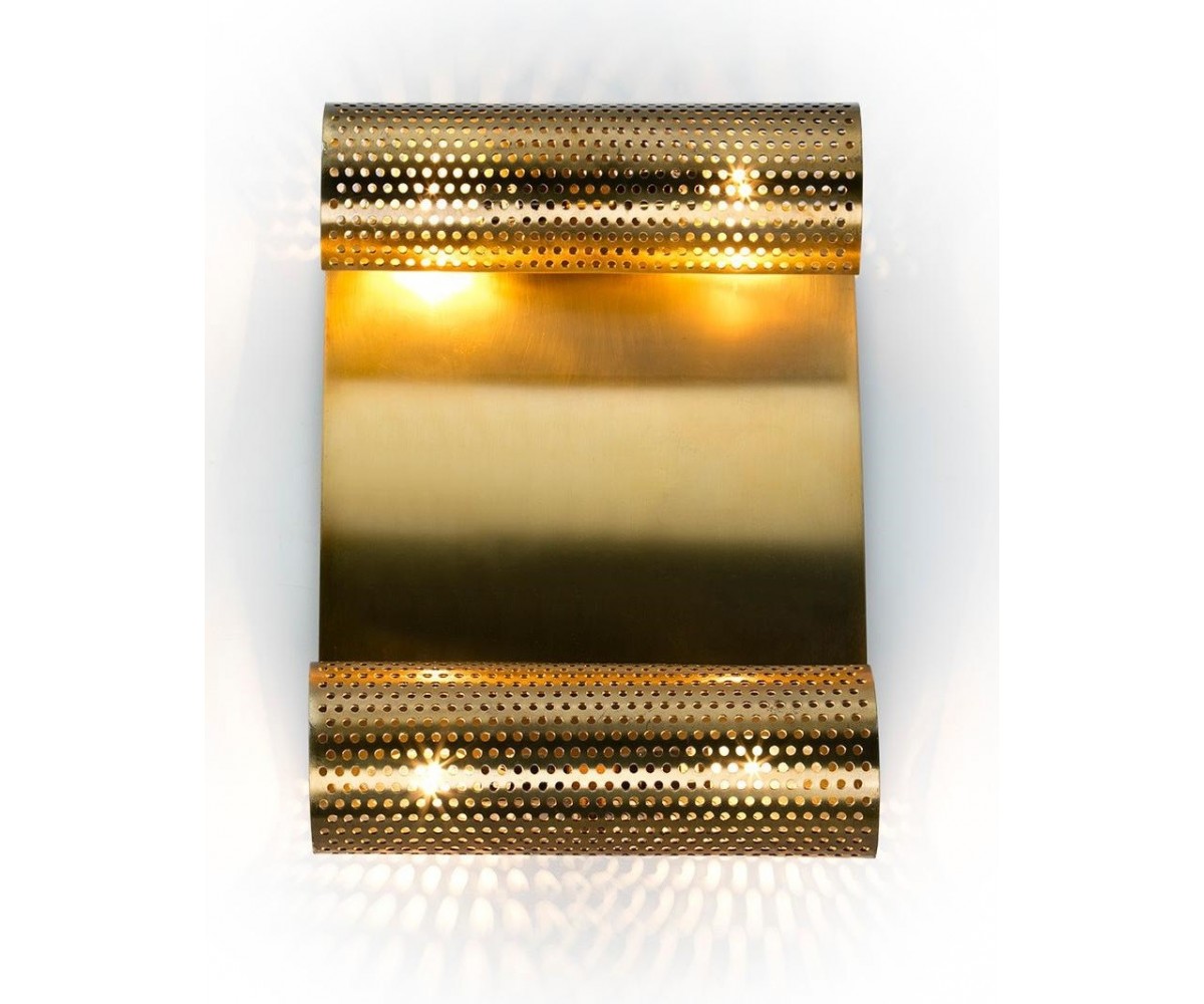 Lámpara de pared inspirada en un diseño de Tobia Scarpa. Fabricado en metal dorado curvado, terminación oro brillo. Se puede colocar en vertical o horizontal. No requiere montaje, bombilla modelo E14 x 4, no incluida. Réplica exacta con materiales originales de máxima calidad.