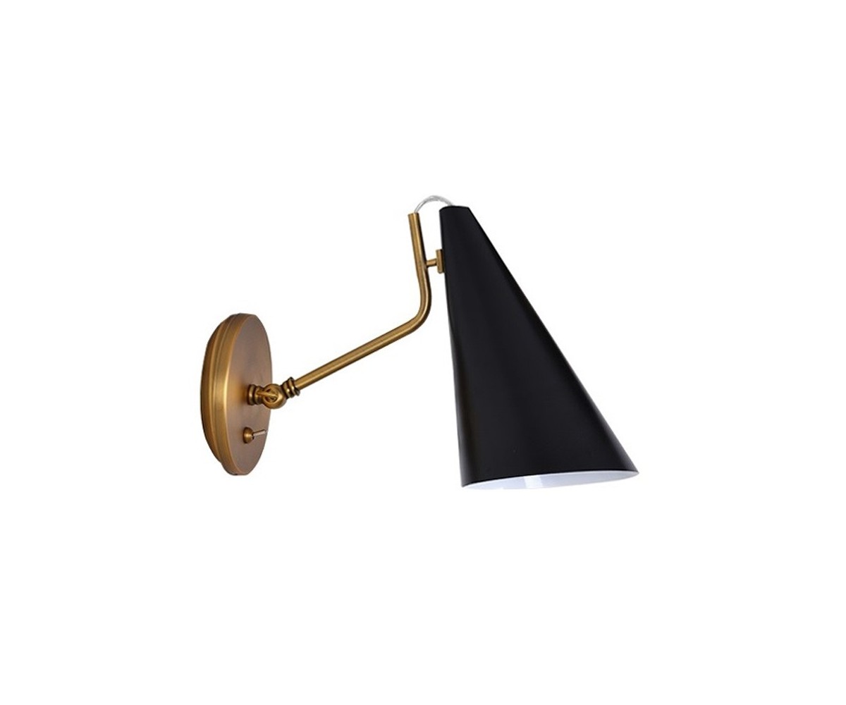 Lámpara de pared inspirada en un diseño de Northern Lighting. Fabricada en acero con triple lacado, terminación negro o dorado. Modelo de bombilla E27 no incluida. Este modelo va directamente a punto de luz en pared. Réplica con materiales originales de máxima calidad.