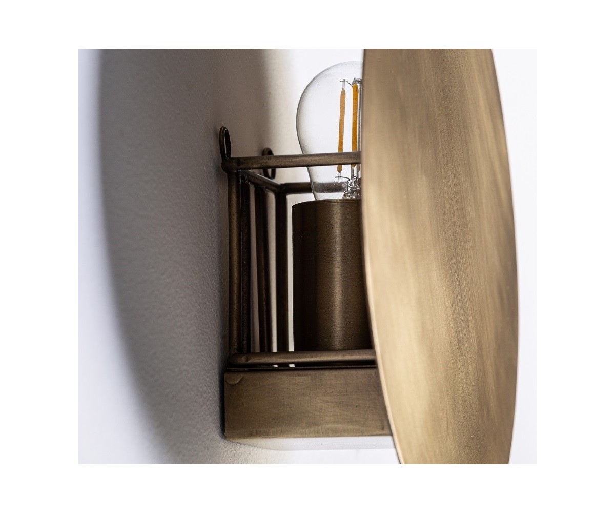 Lámpara de pared ART-DECO, inspirado en un diseño de Enzo Catellani. Fabricado en acero dorado envejecido. Largo del cable 10cm, incluye anclaje anilla tornillo a pared. Rosca de bombilla E27 no incluida. Peso total 1.8kg. Réplica con materiales originales de máxima calidad.