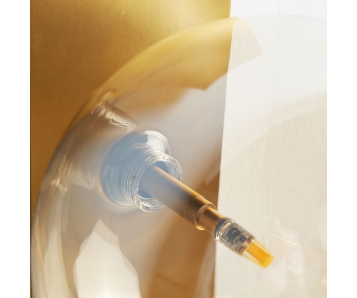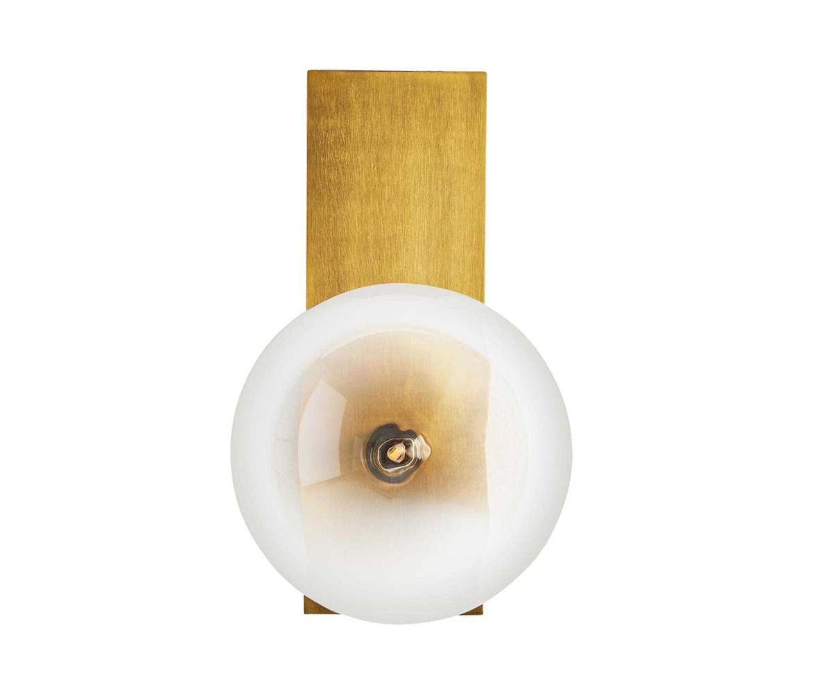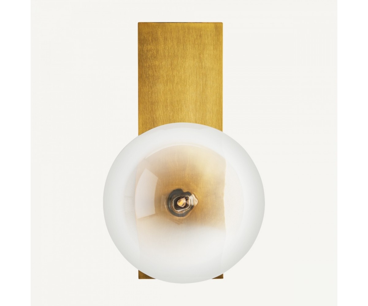 Lámpara de pared inspirado en un diseño de Articolo. Color oro, de estilo Art Deco, fabricado en cristal, combinado con latón. Producto desmontable. Medidas de la pantalla 18x18x18cm. Medida del embellecedor 10x3x30cm. Largo del cable 10cm. Bombilla G4 incluida. Peso total 0.7kg. Réplica con materiales originales de máxima calidad.