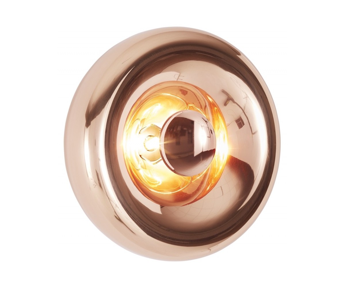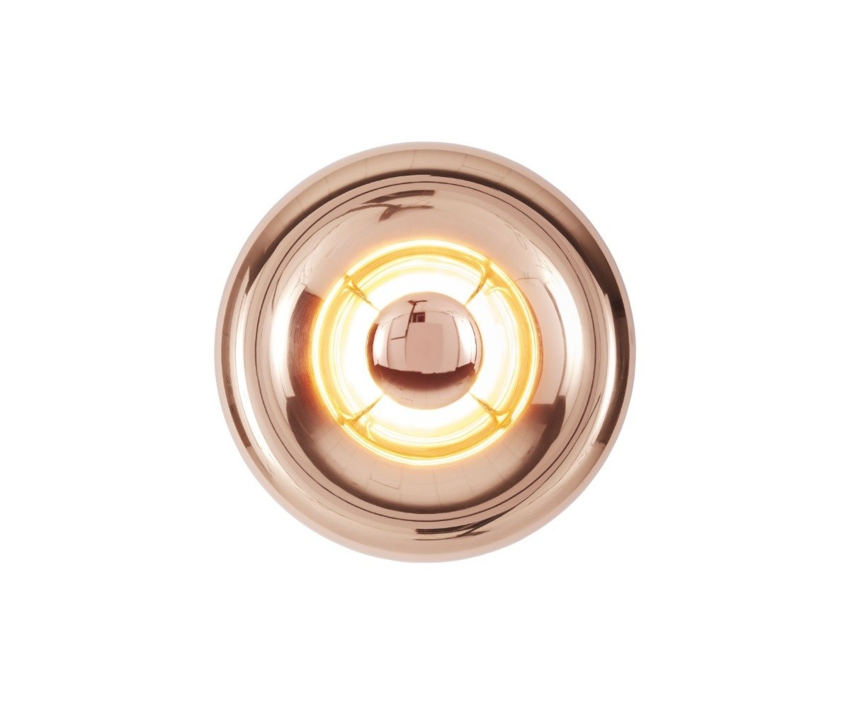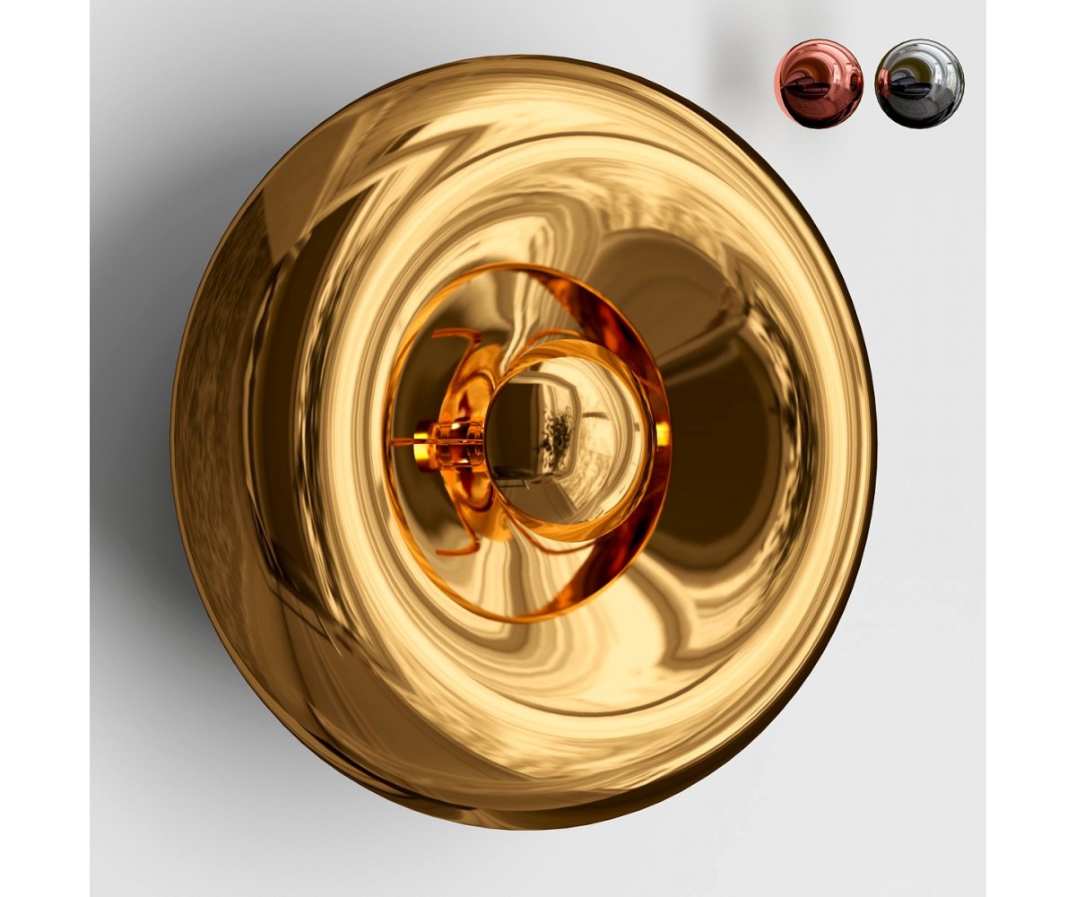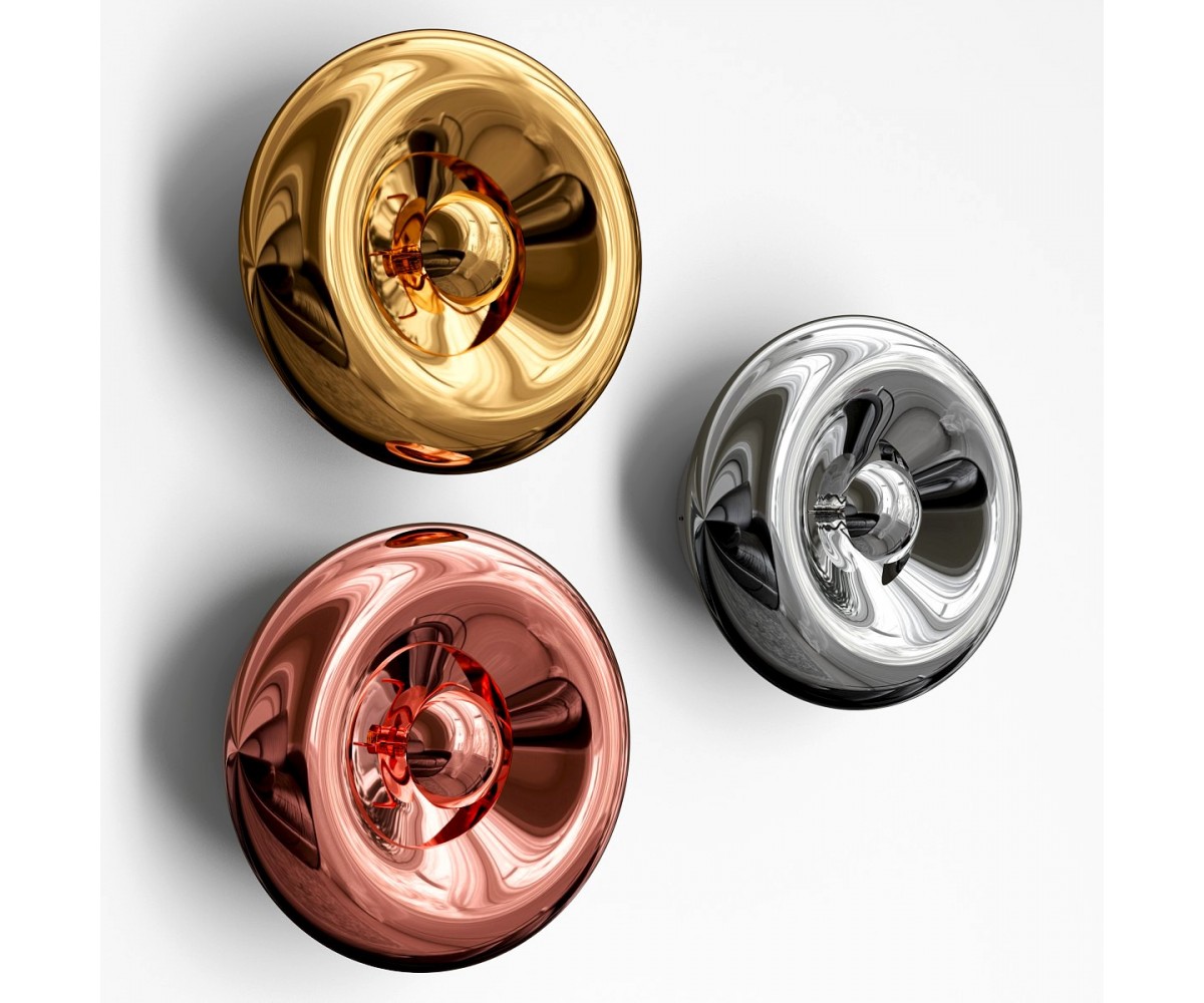 Lámpara de pared inspirado en un diseño de Tom Dixon. De forma ovalada fabricada en acero de alta calidad en color oro, plata y dorado rosado, terminación brillo. Tensión 230v, potencia máxima 40w, rosca para casquillo de bombilla E27, no incluida. Réplica con materiales originales de máxima calidad.