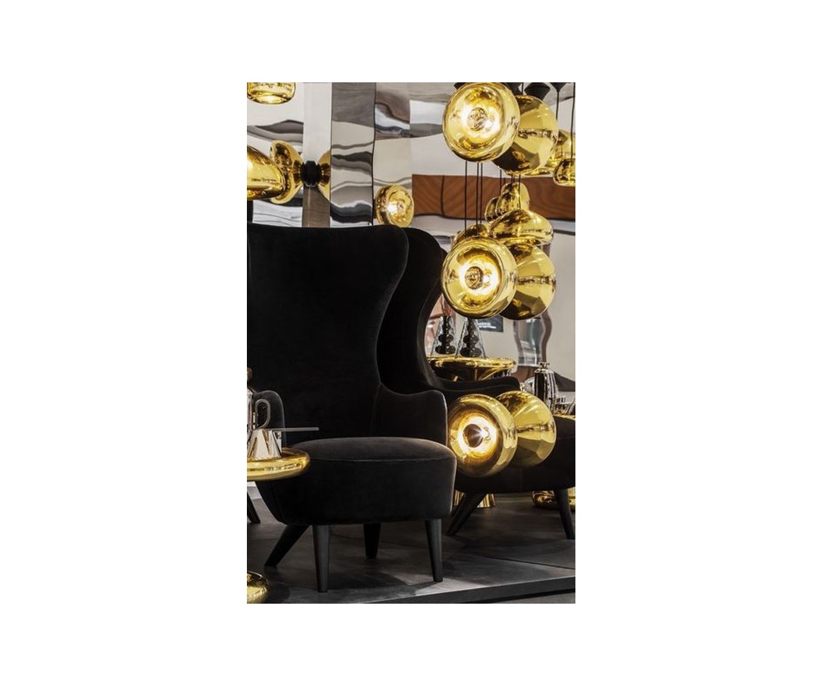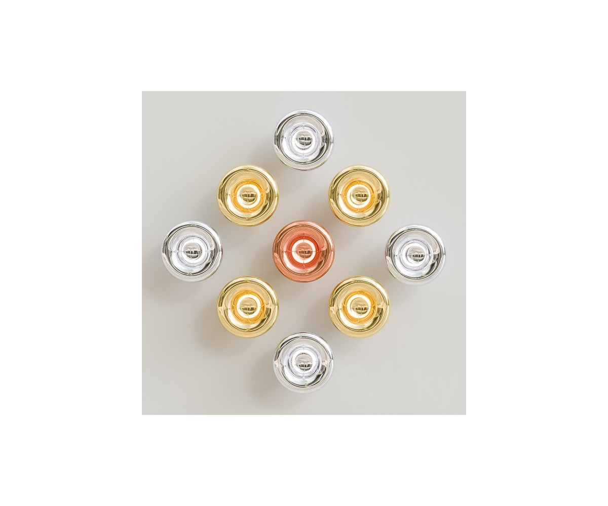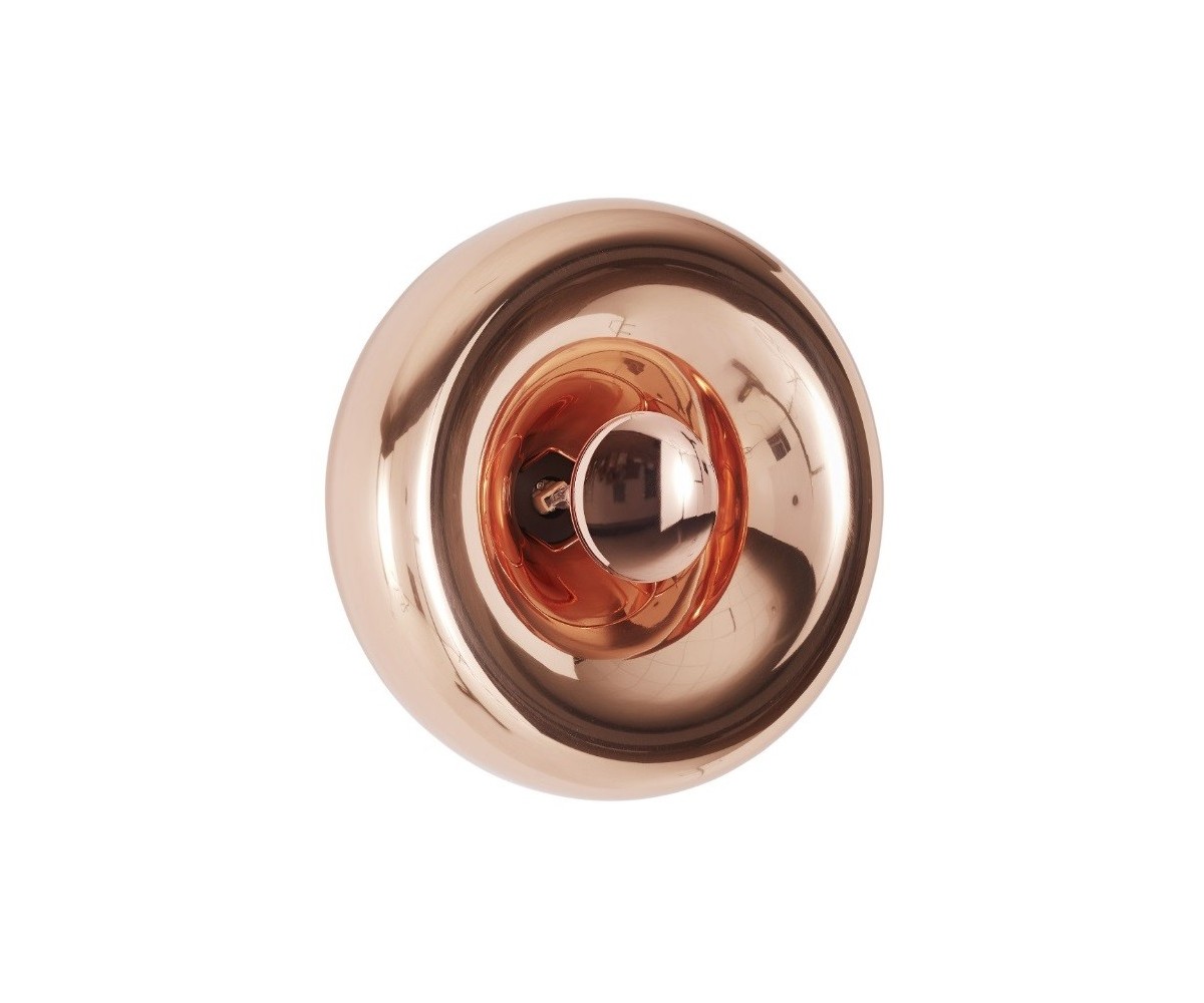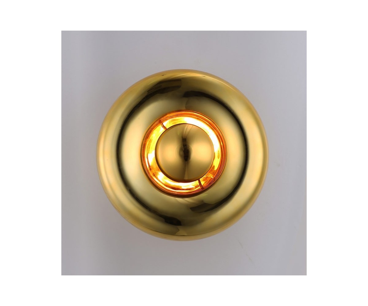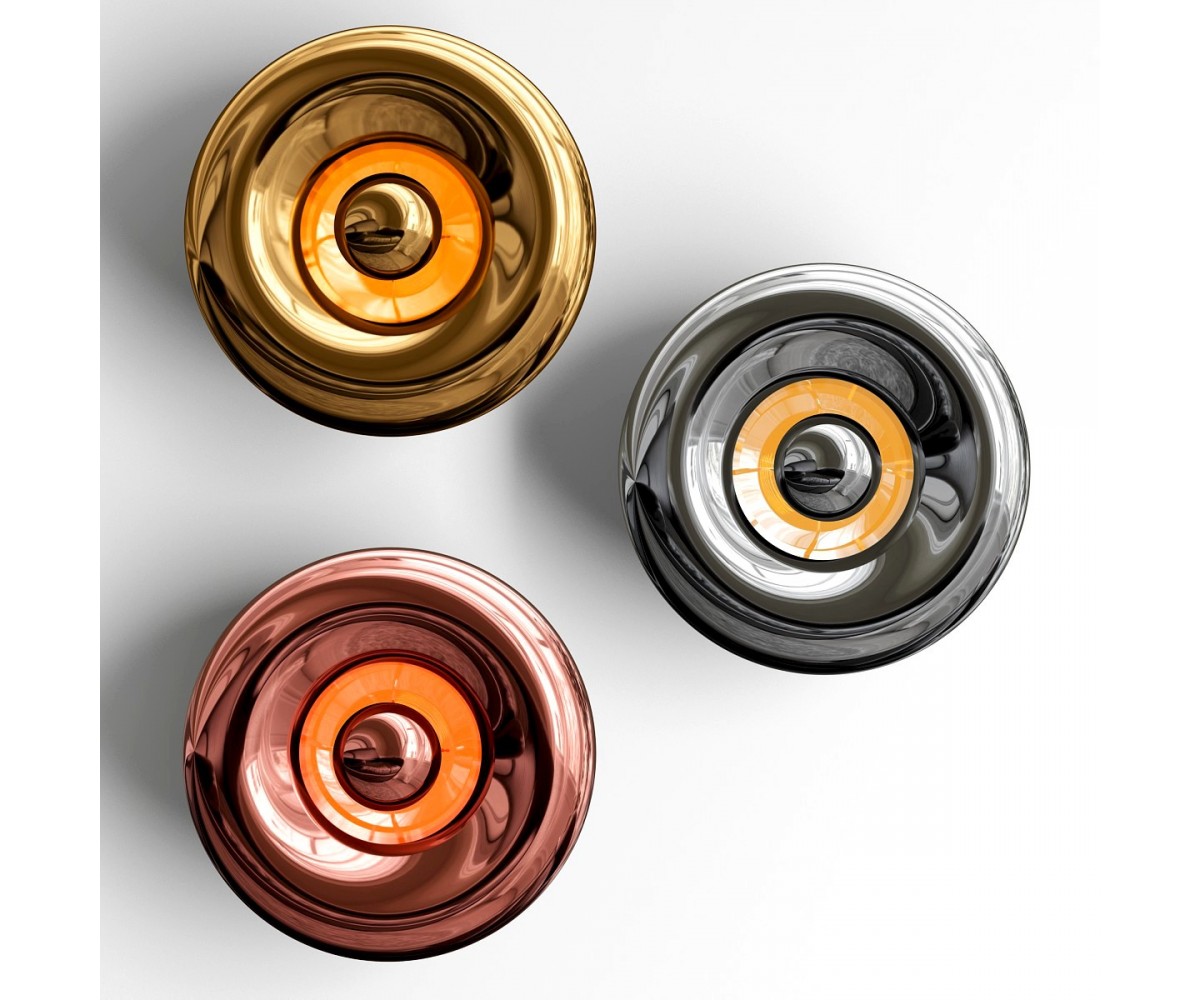 Lámpara de pared inspirado en un diseño de Tom Dixon. De forma ovalada fabricada en acero de alta calidad en color oro, plata y dorado rosado, terminación brillo. Tensión 230v, potencia máxima 40w, rosca para casquillo de bombilla E27, no incluida. Réplica con materiales originales de máxima calidad.