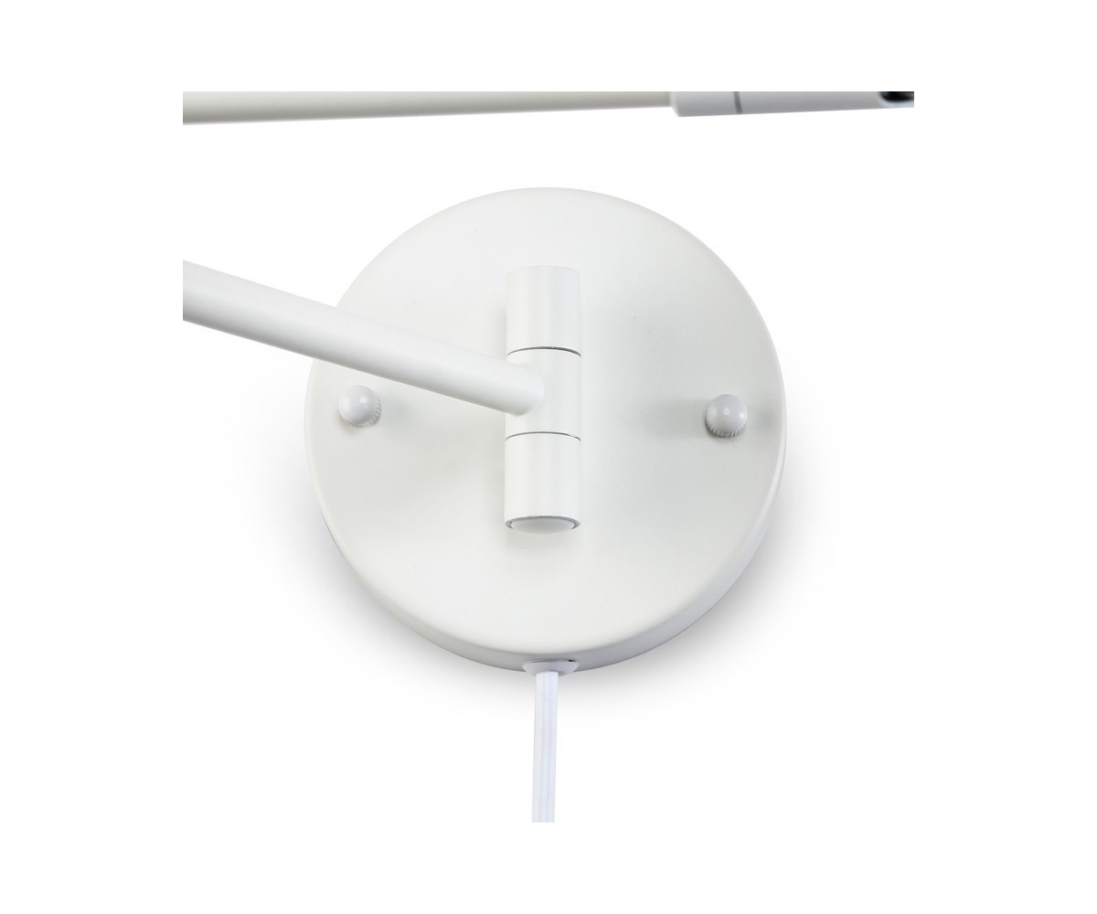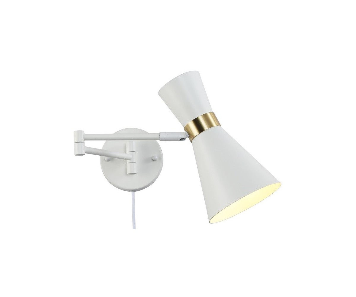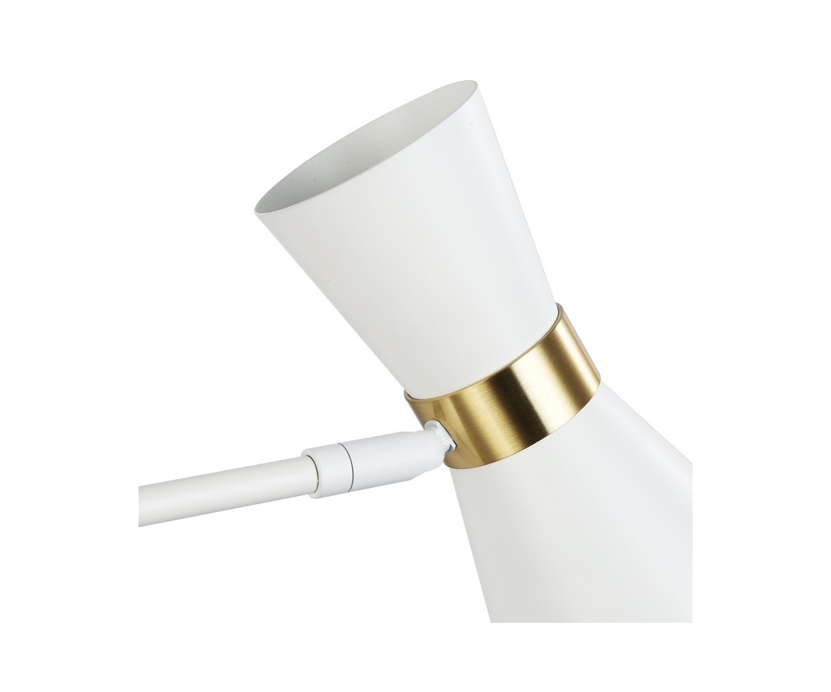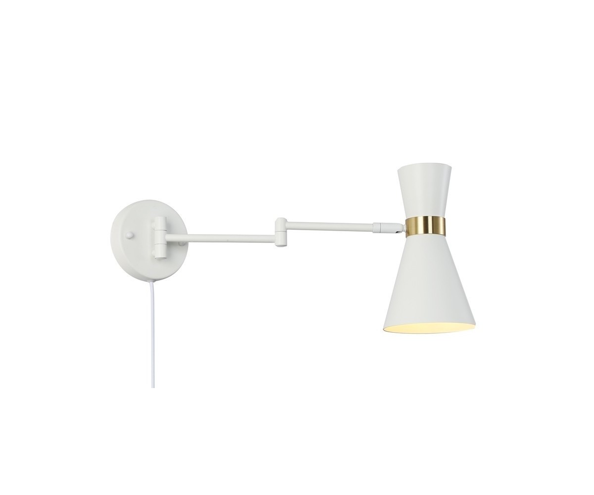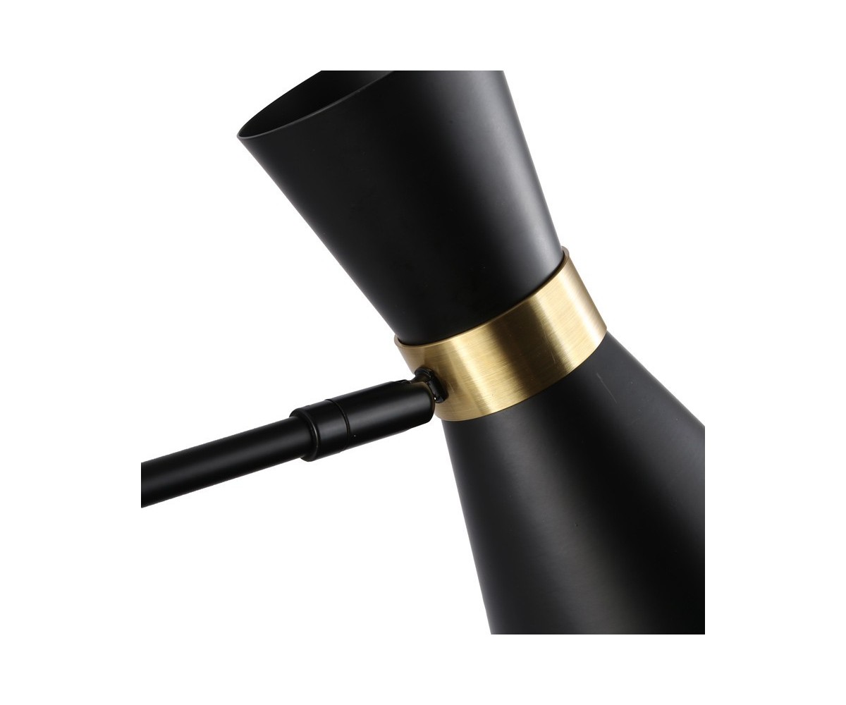 Aplique de pared con brazo articulado, inspirada en un diseño de Mike Treanor. Doble pantalla en forma de cono en acero lacado color negro o blanco, agarre central en acero dorado. Con su brazo articulado se puede orientar a cualquier dirección. Se puede conectar directamente a un punto de luz en la pared o con su cable y enchufe. Largo del cable 165 cm, para ajustarlo a la altura que desees. Rosca para bombilla E27, máximo 60w. Tensión nominal 220-240V/AC. Réplica con materiales originales de máxima calidad.