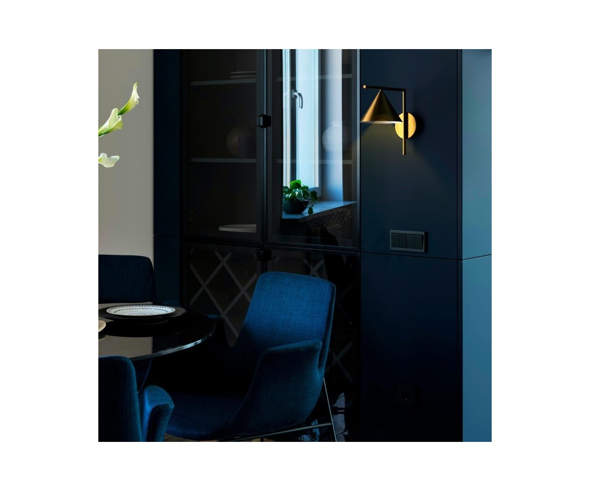 Lámpara de pared inspirada en un diseño de Michael Anastassiades. Captain Flint es una lámpara con un diseño elegante que destaca por su difusor cónico dotado de un mecanismo de rotación que permite una doble función al dirigir el haz de luz como se desee.