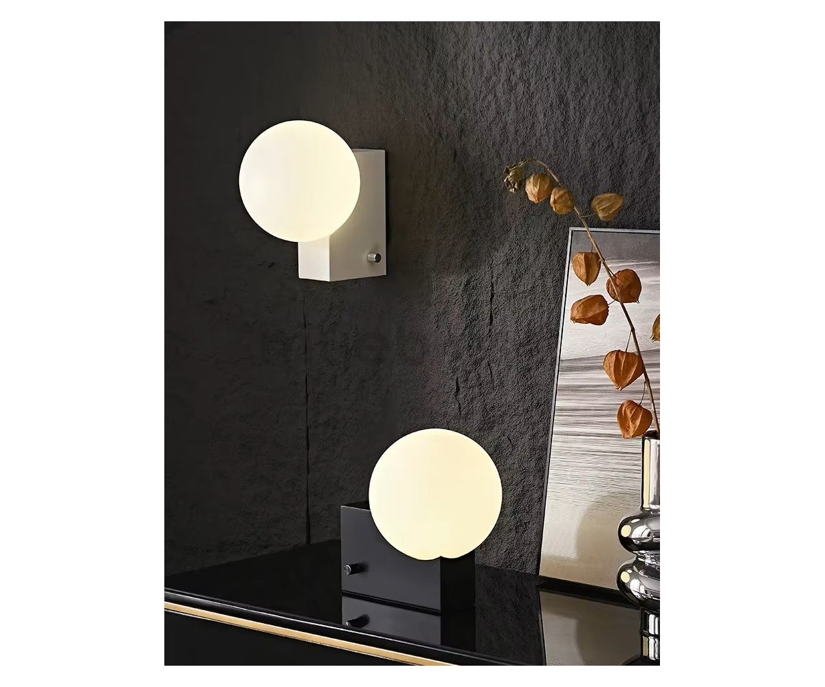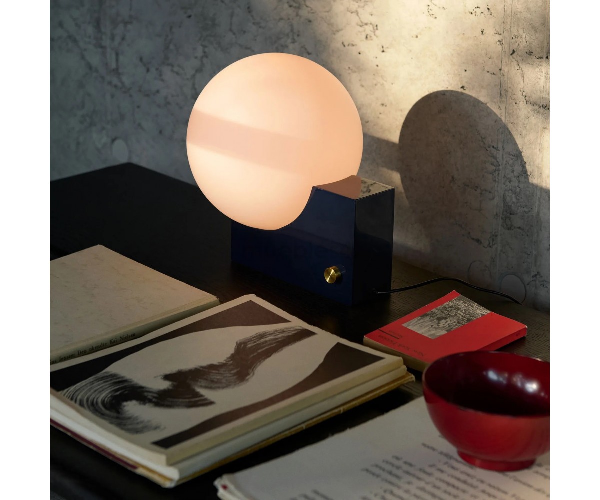 Aplique / Lámpara de sobremesa inspirada en un diseño de Signe Hytte para la icónica casa danesa & Tradition. Esta lámpara de doble función permite usarla como lámpara de mesa y también como aplique. Representa una hermosa fusión de dos formas geométricas clásicas: la esfera y el rectángulo. Esta superposición de formas le confiere un aspecto elegante y refinado. Aporta una hermosa luz ambiental a su interior. Su difusor opalino deja pasar la luz de forma uniforme sin deslumbrar.