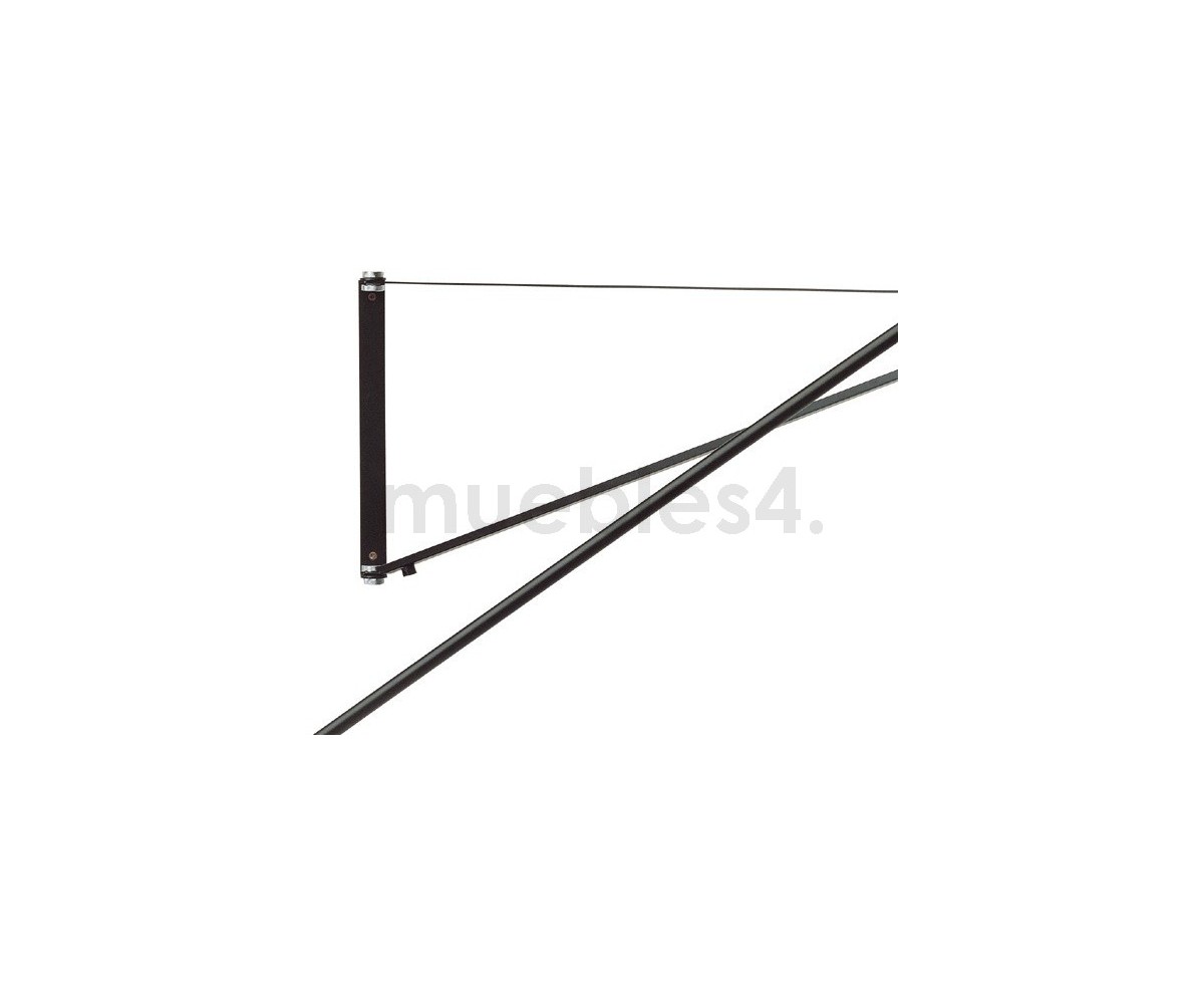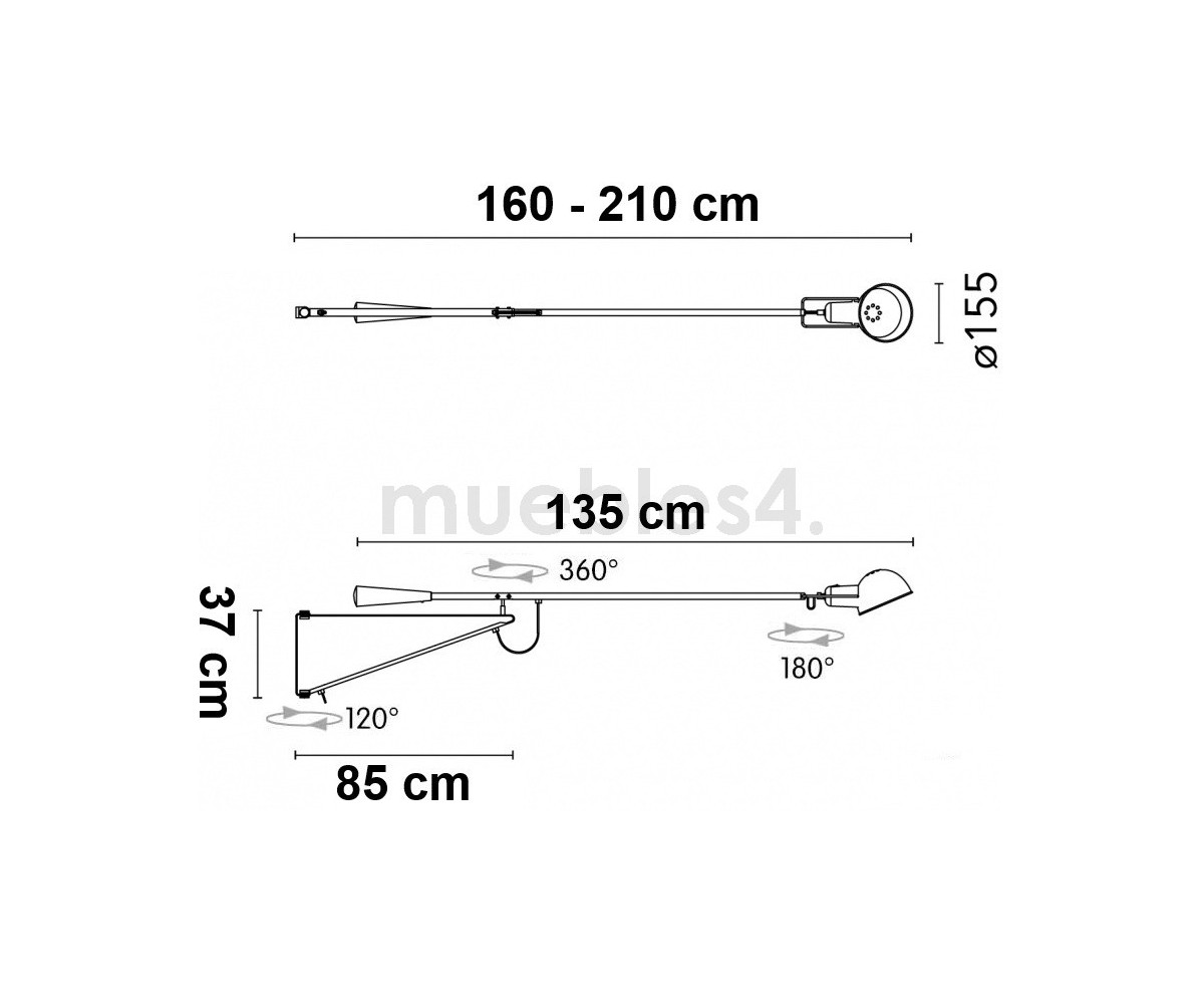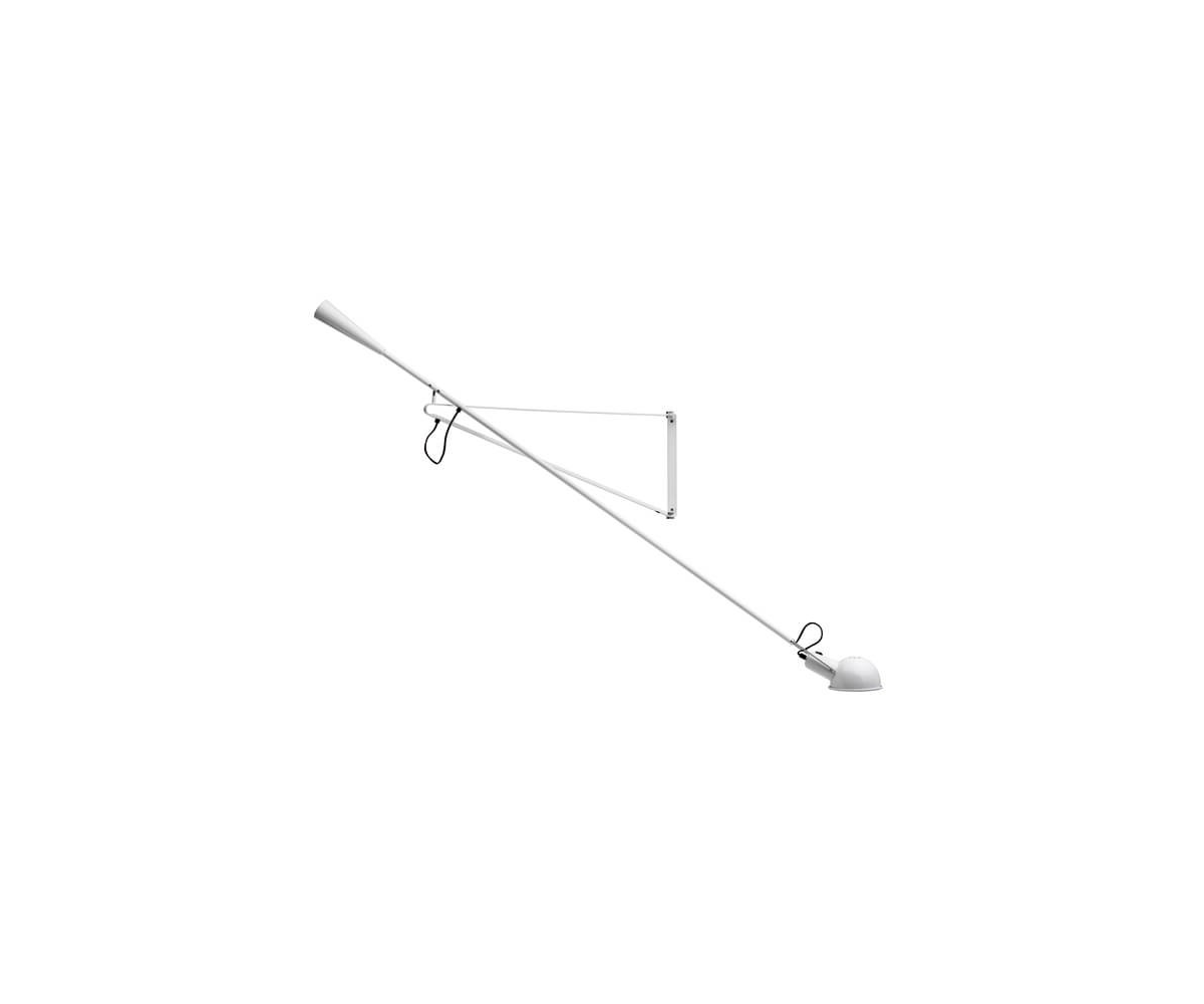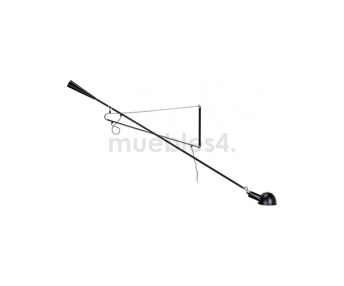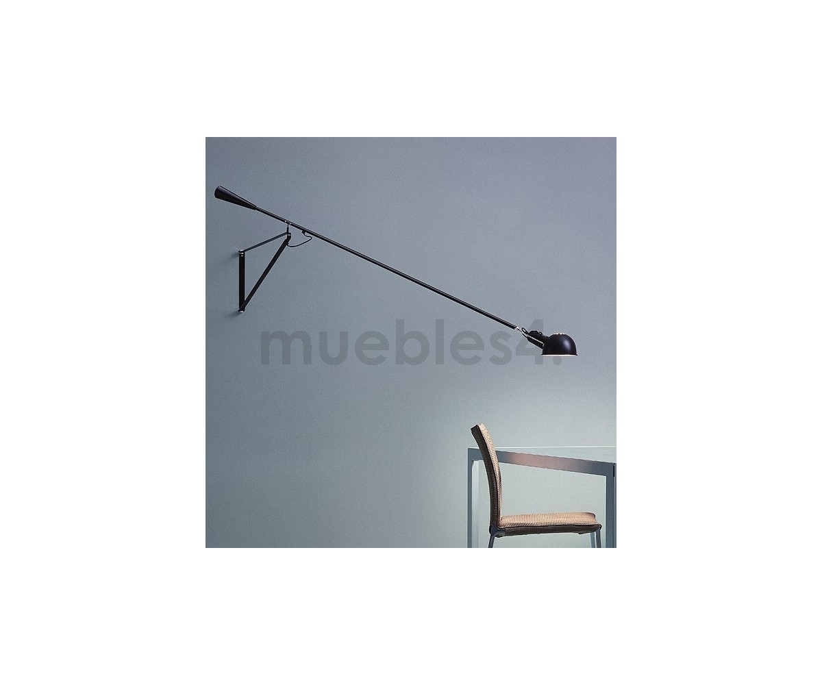 Lámpara aplique de pared inspirada en un diseño de Paolo Rizzatto. Emite una luz directa, muy versátil ya que es orientable tanto en horizontal como en vertical, abarcando un radio de 180 cm., su reflector es igualmente orientable y basculante. Se fija directamente a la pared, para que la lámpara sea estable y poderlo poner en la posición deseada, dispone de un contrapeso con forma cónica en fundición.