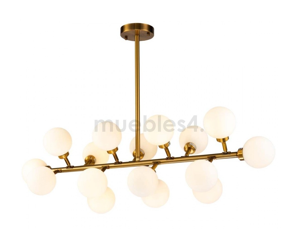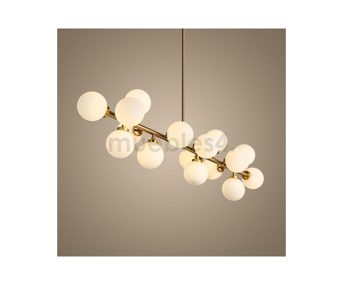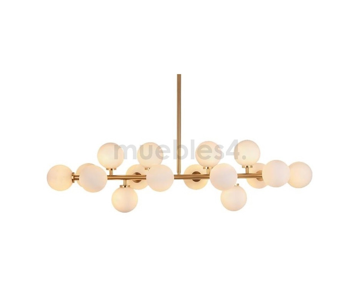 Lámpara de techo inspirada en un diseño de Atelier Areti. Fabricada en acero tubular envejecido, compuesta por 16 globos de cristal terminación blanco. Réplica exacta con materiales originales de máxima calidad.