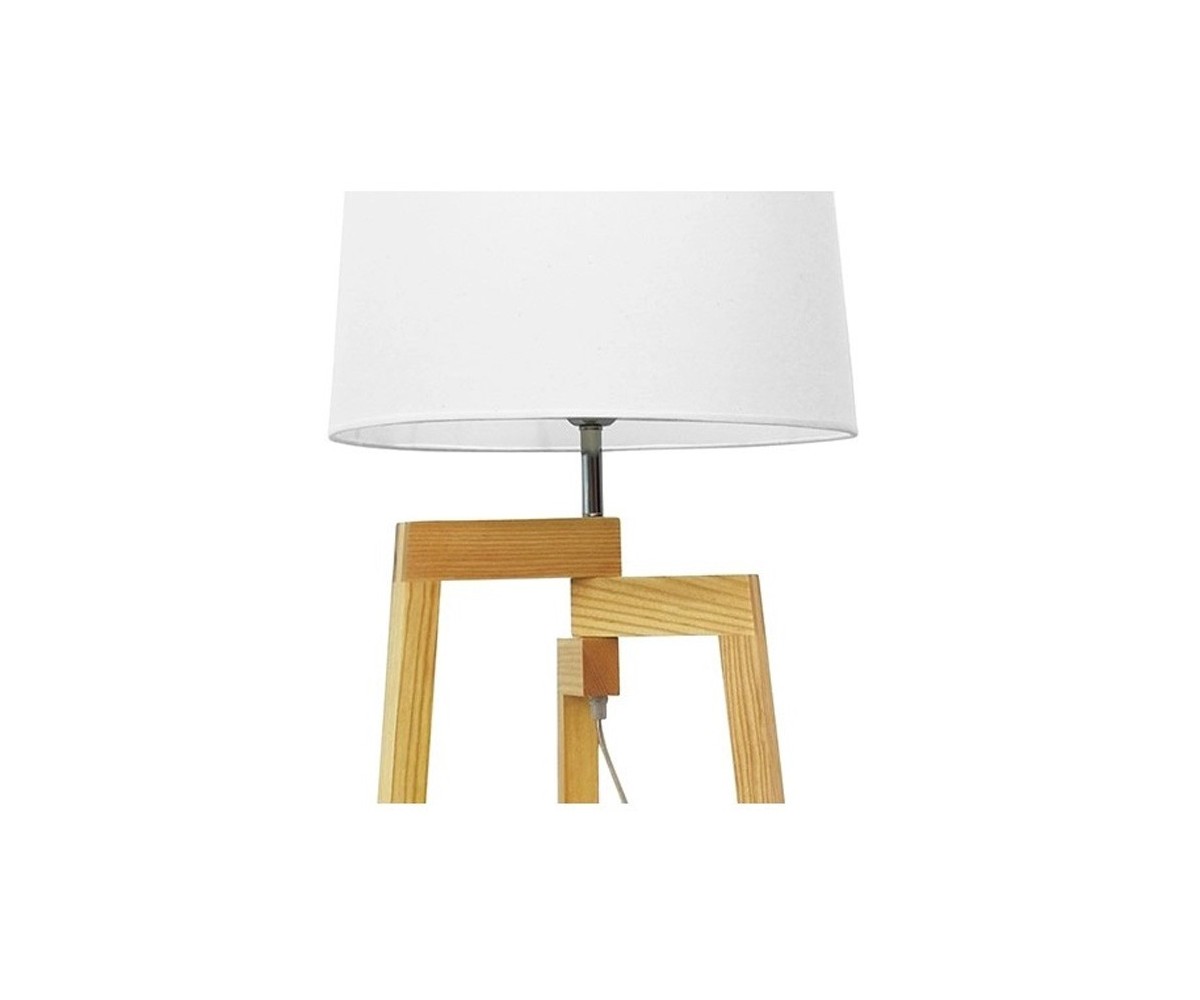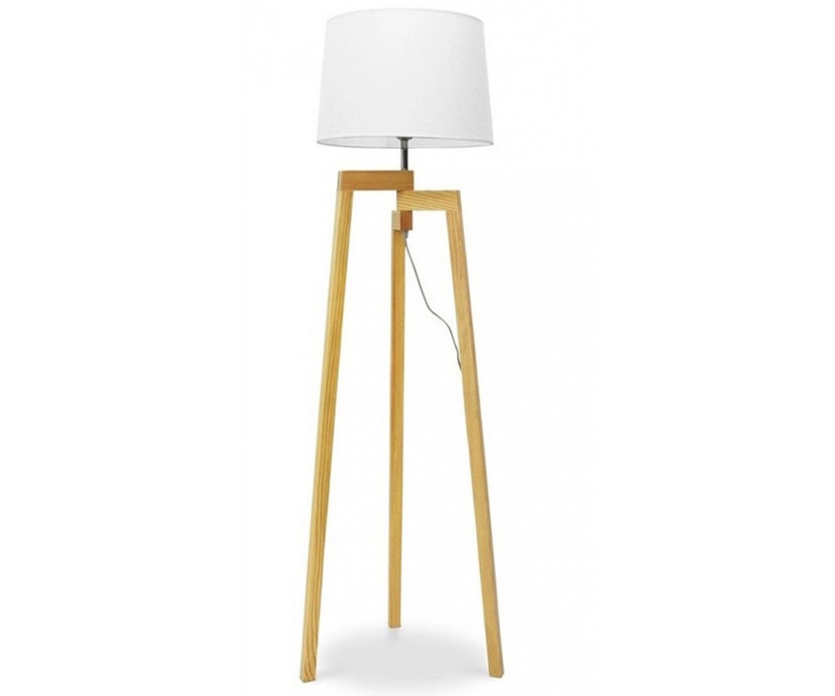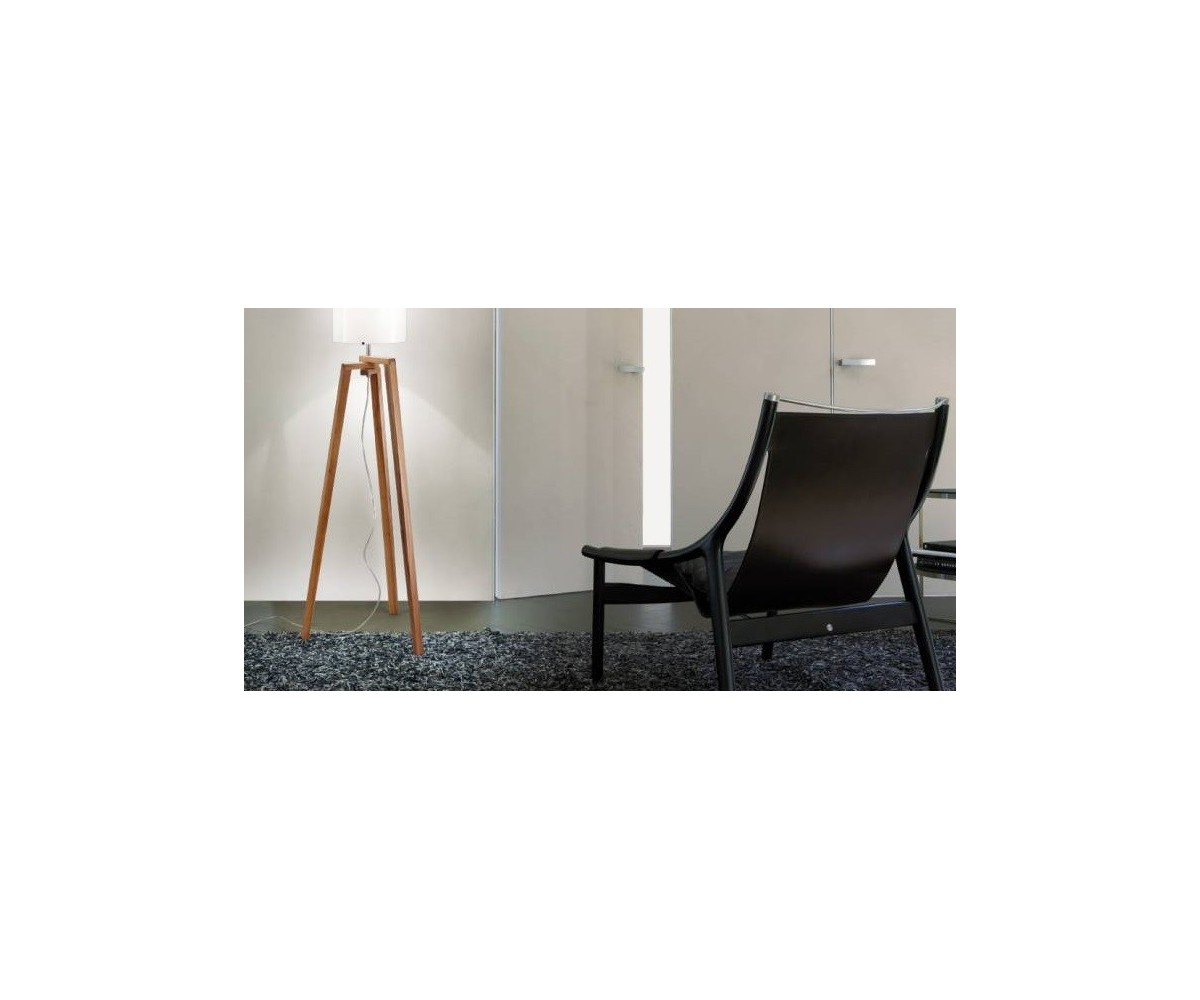 Lámpara de pie inspirada en un diseño de Favaretto&Partners para Vistosi. Base en forma de trípode en madera de nogal claro, pantalla circular de tejido resistente y facil limpieza. Encendido mediante interruptor incorporado en el cable. Modelo de bombilla E27 de un máximo de 60W. Réplica exacta con materiales originales de máxima calidad.
