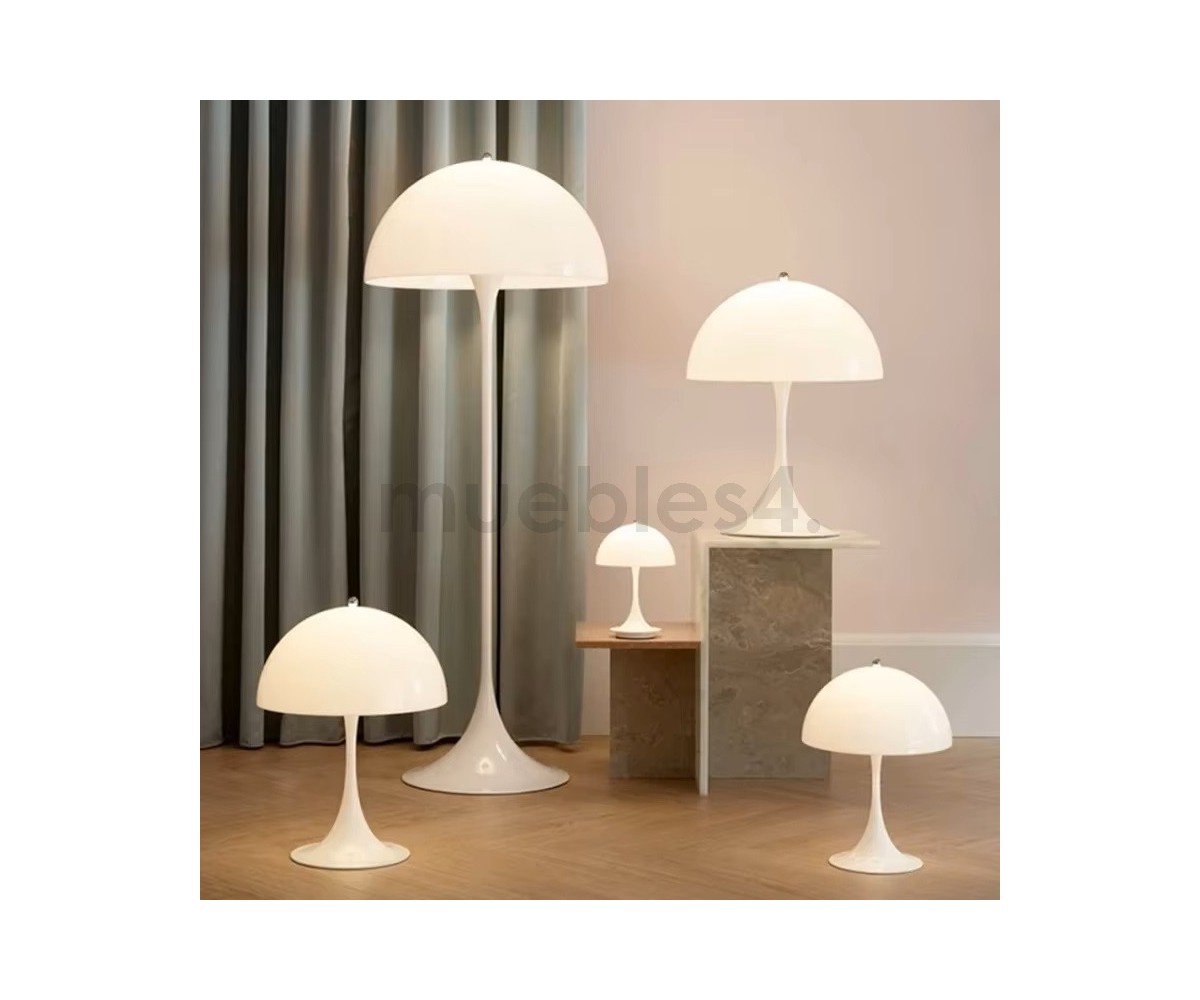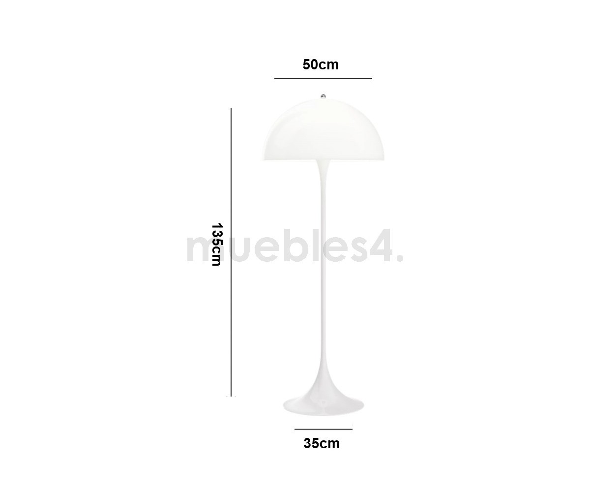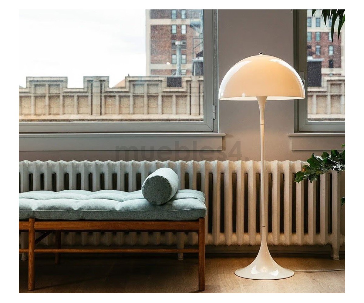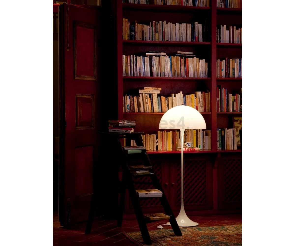 Lámpara de suelo danesa inspirada en un diseño de Verner Panton para Louis Poulsen. Destaca por sus formas delicadas de inspiración orgánica y una pantalla de diseño semiesférico. La pantalla se convierte en el elemento central de esta pieza. Se convirtió en uno de los referentes más destacados en la escena del interiorismo de la década de los años 20. Esta luminaria salió al mercado en 1971 y ha recibido el premio iF Design Award.