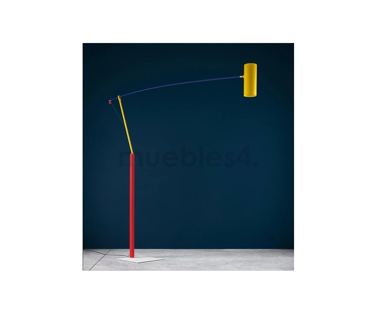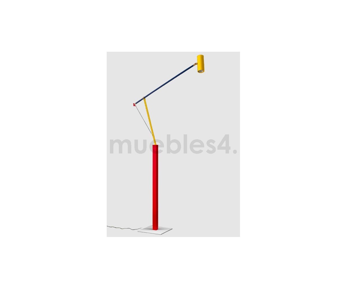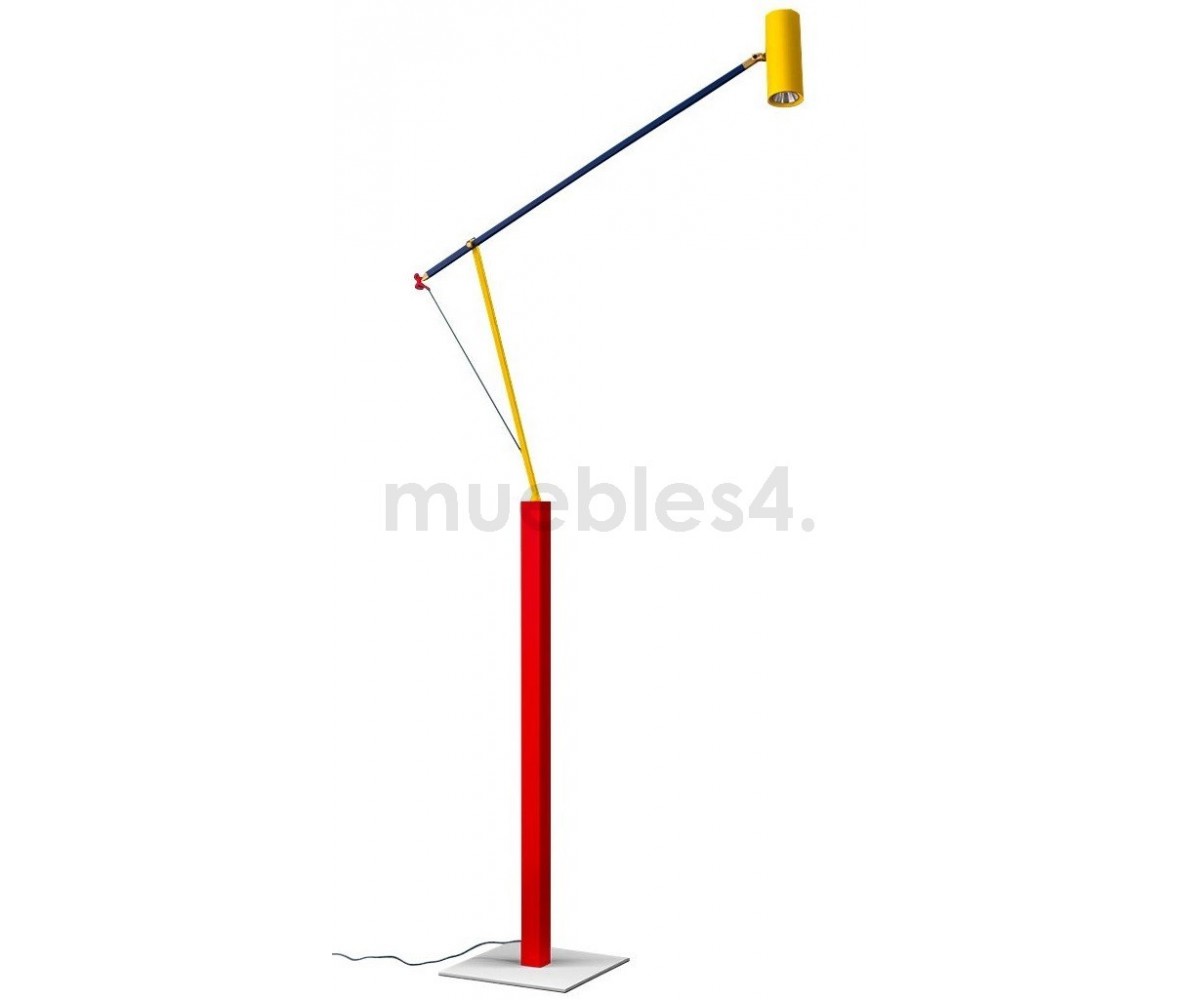 Lámpara de suelo inspirada en un diseño de Catellani & Smith. Versión de colores, mezclando el azul, amarillo y rojo. Ettorino T fue diseñada como lámpara de escritorio, para ofrecer una iluminación correcta en la superficie de trabajo, gracias a la posibilidad de movimiento y rotación de la lámpara.
