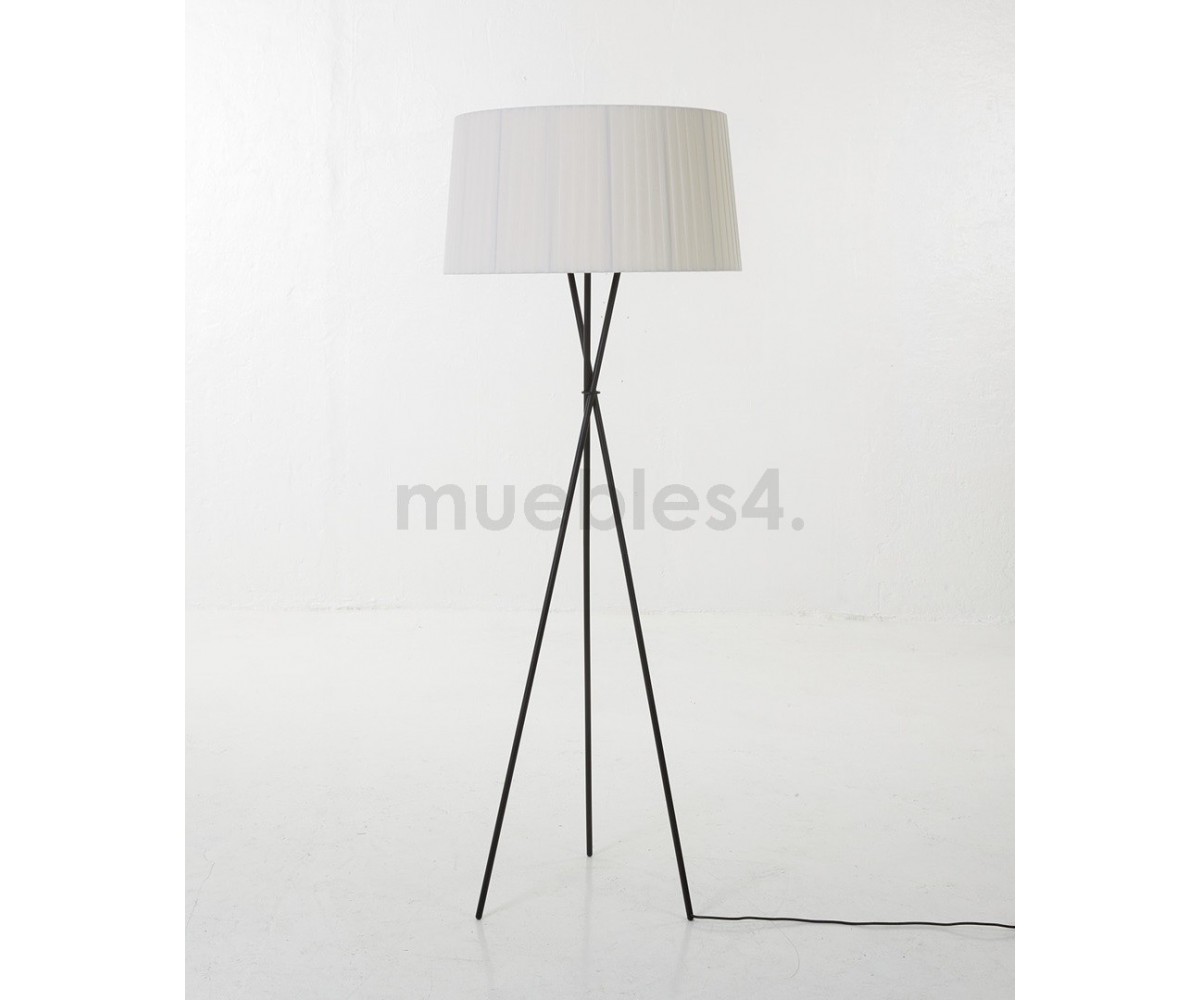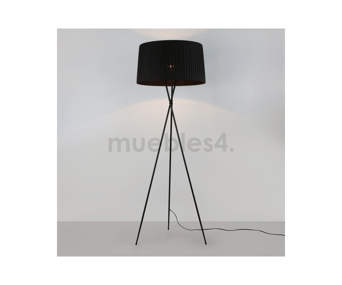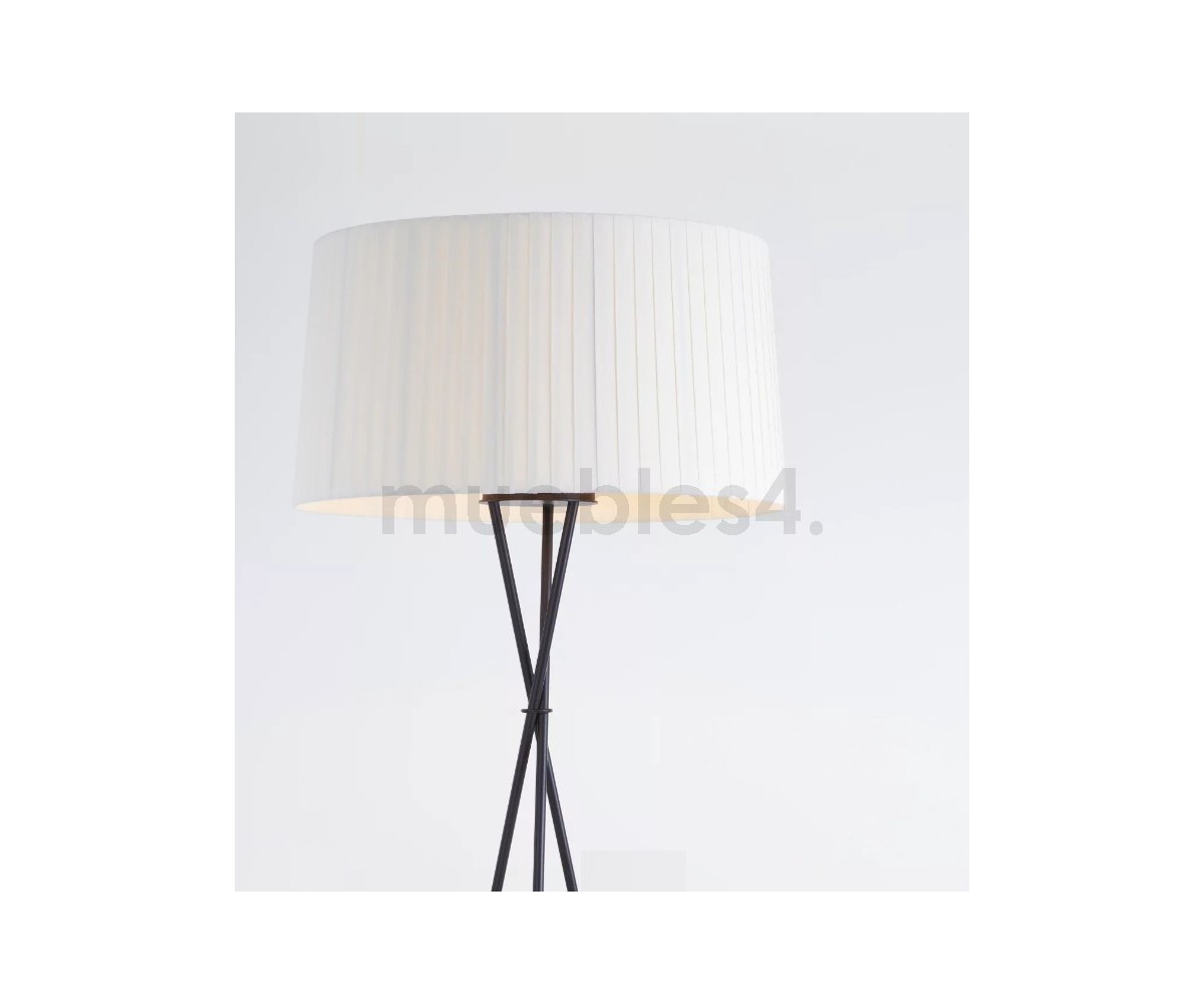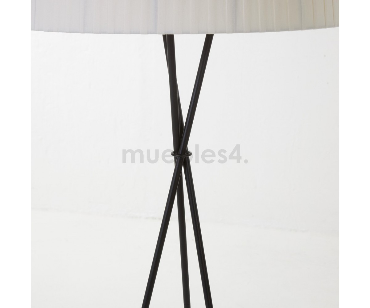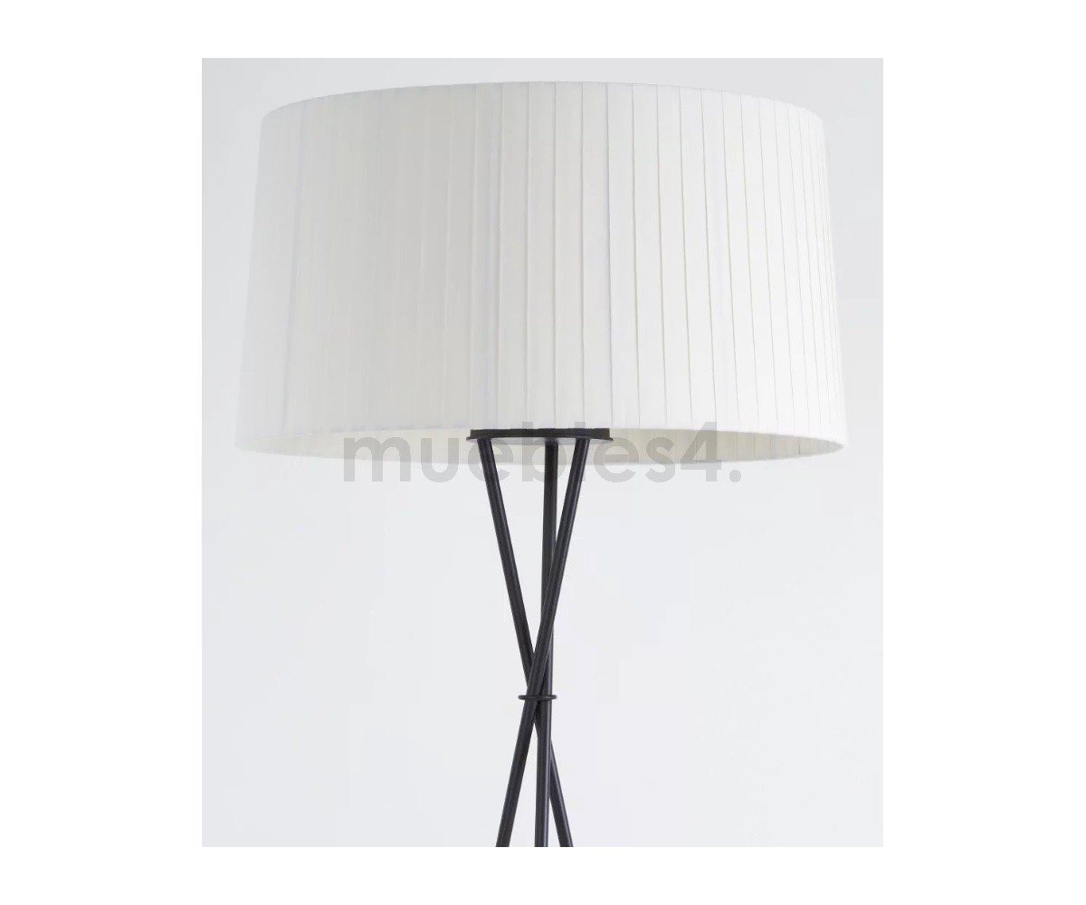 Lámpara de suelo, RÉPLICA INSPIRADA en un diseño de Santa&Cole. Hermosa iluminación compuesta por un haz de tres tubos negros unidos como un juego de palillos chinos, que levanta una amplia pantalla encintada. La pantalla es un verdadero símbolo del diseño moderno, proporcionando una luz cálida.