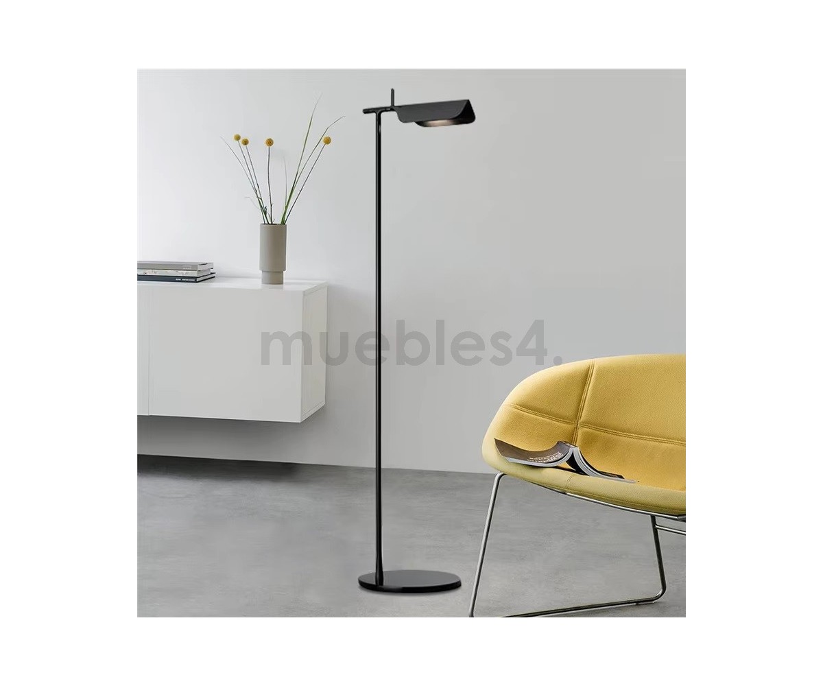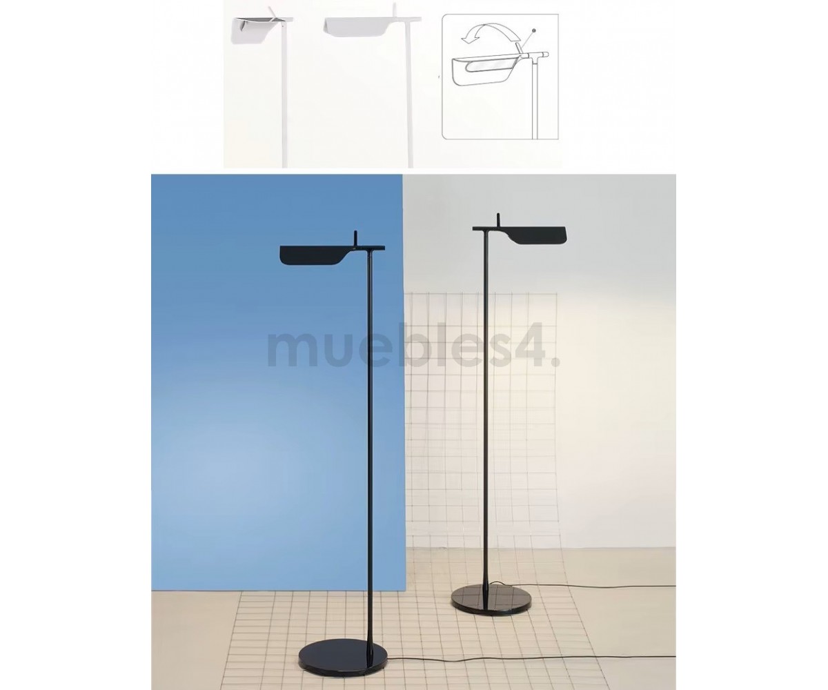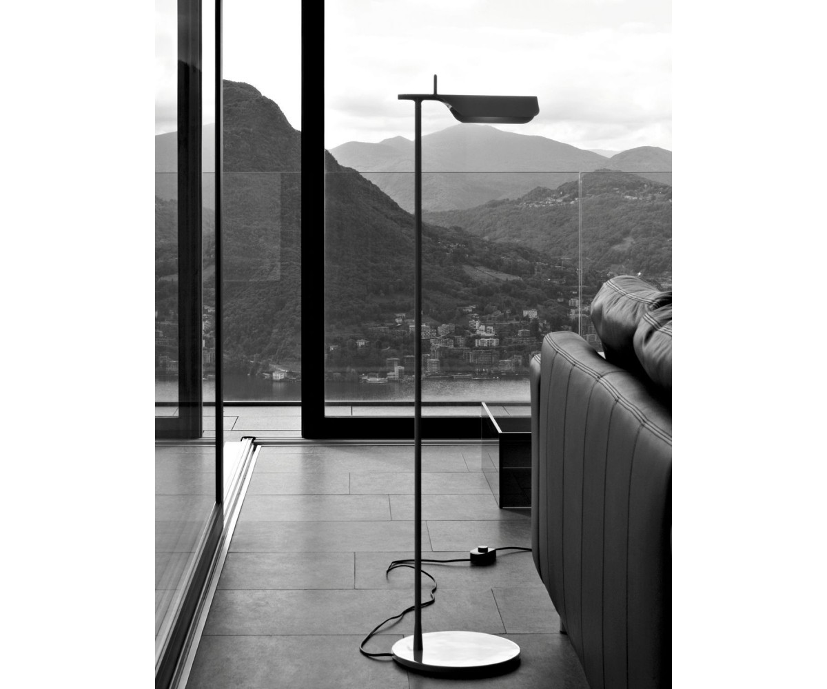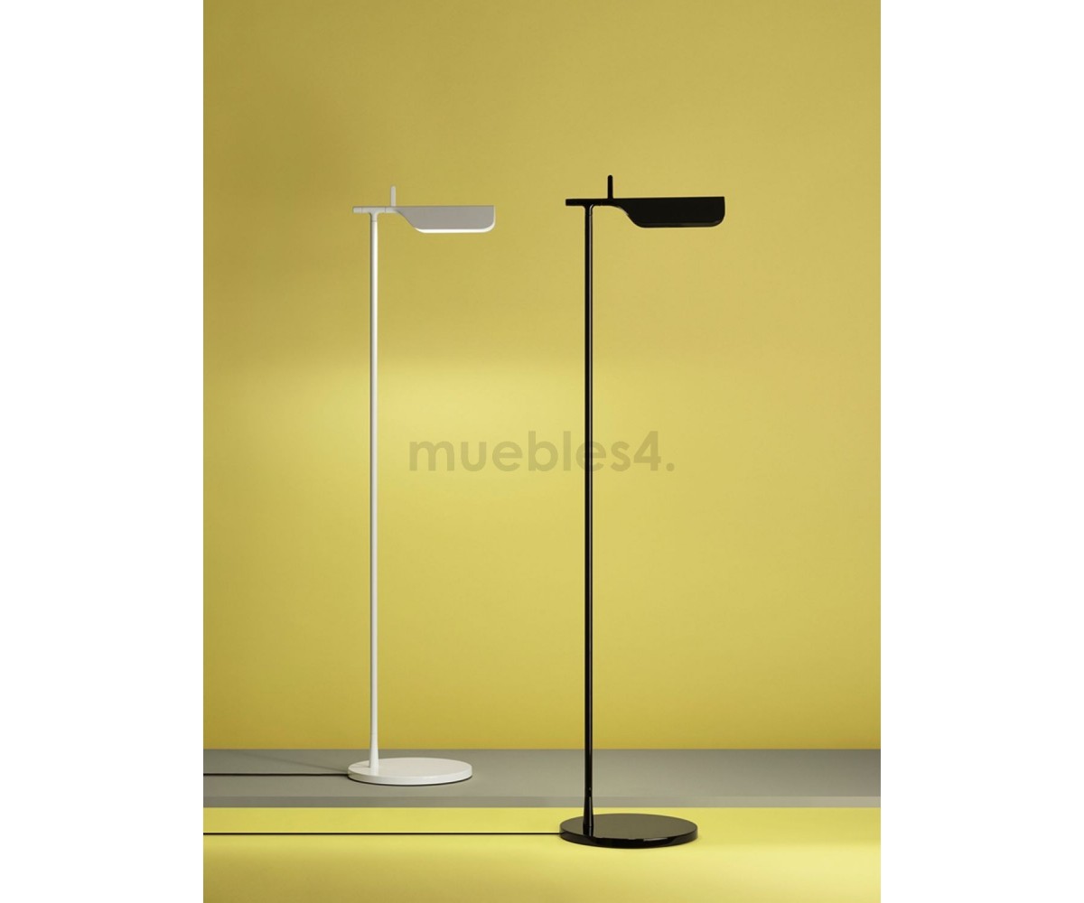 Lámpara de suelo inspirada en un diseño de Edward Barber & Jay Osgerby. La pantalla de la lámpara de mesa Tab se sitúa como un techo sobre los LED, cuyo haz de luz puede dirigirse en la dirección deseada mediante el cabezal giratorio.