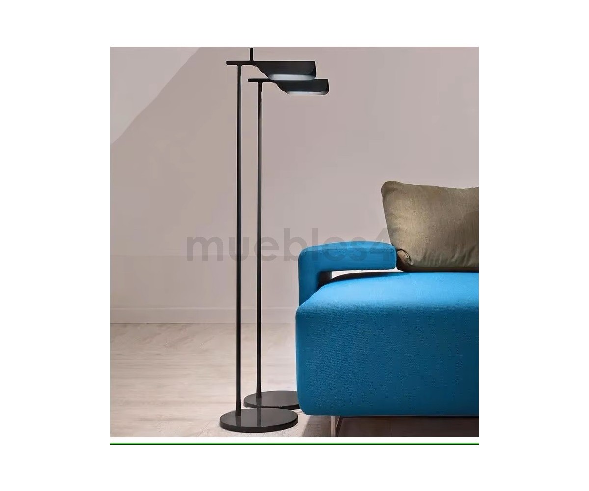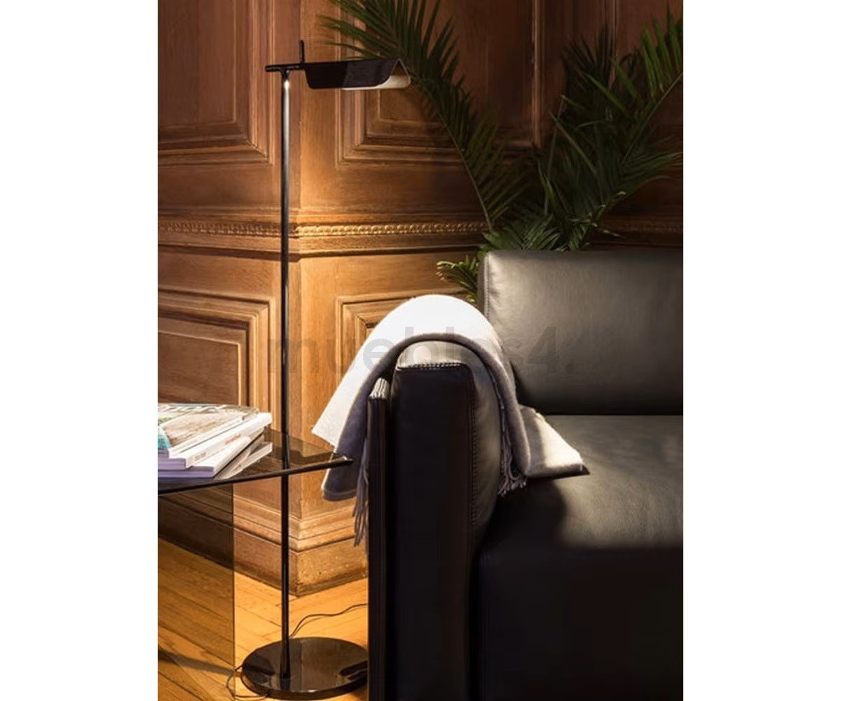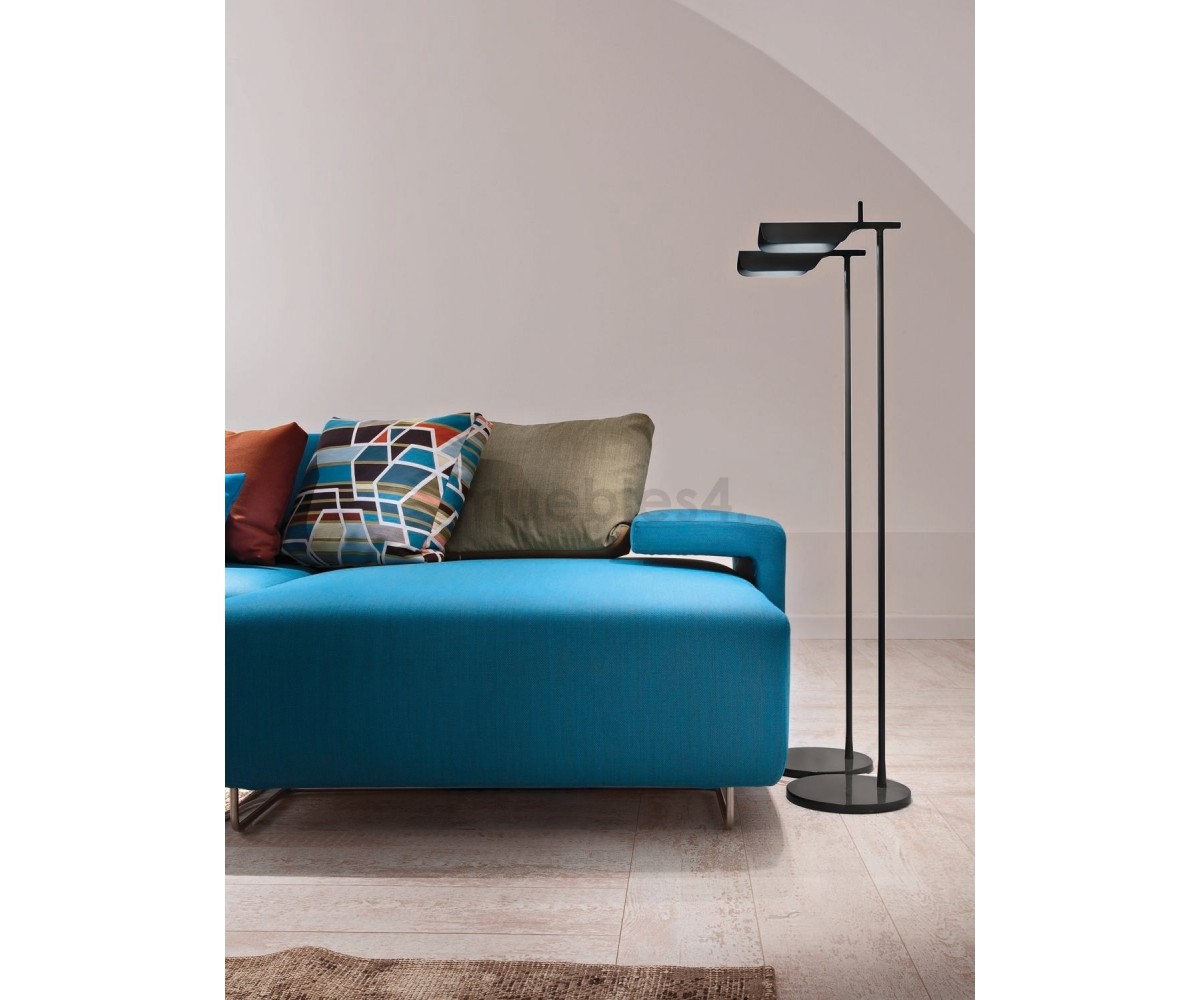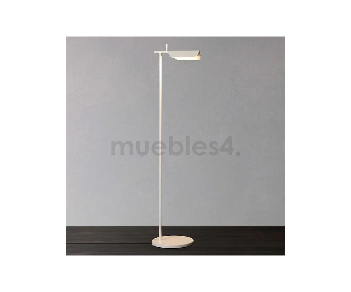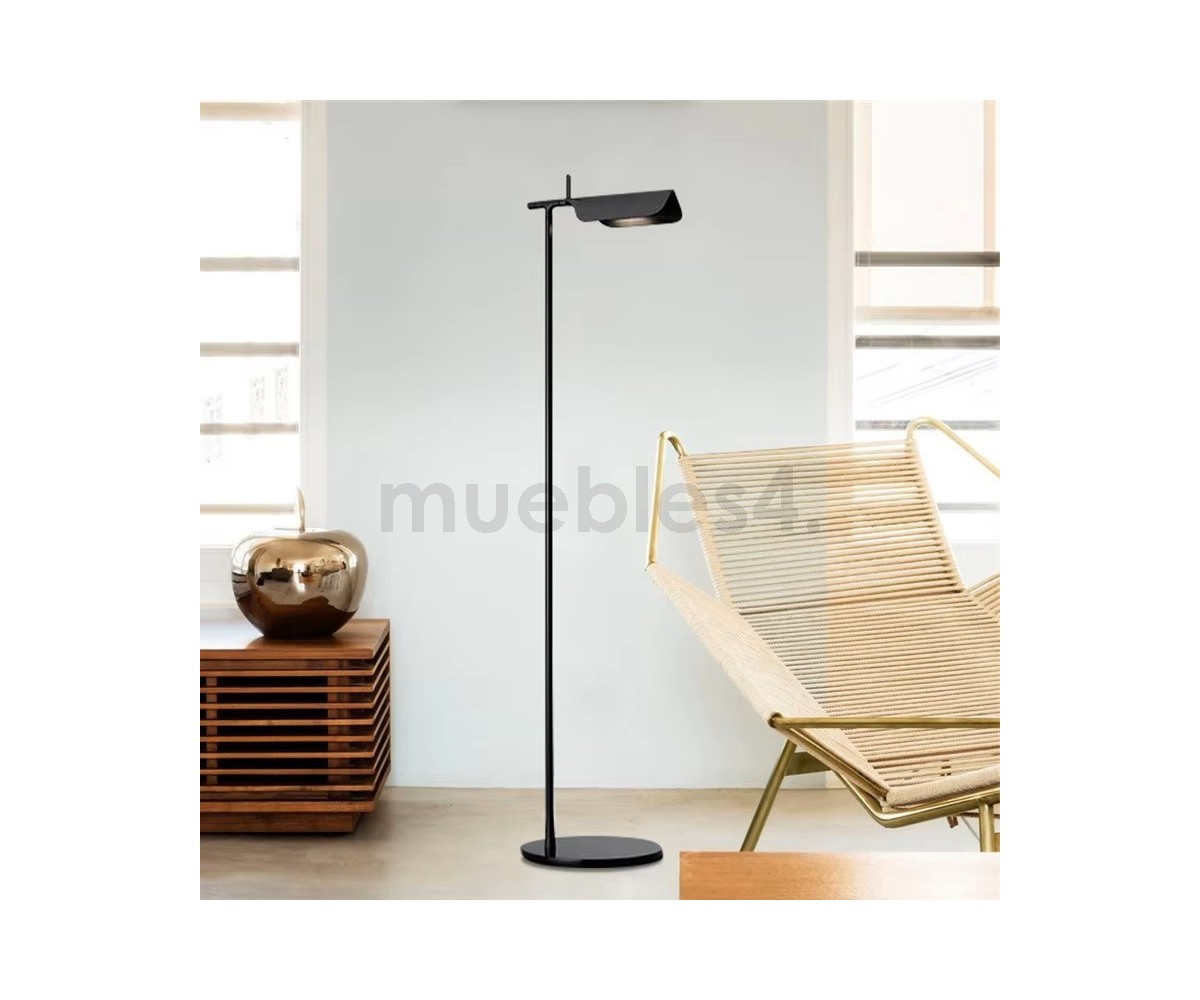 Lámpara de suelo inspirada en un diseño de Edward Barber & Jay Osgerby. La pantalla de la lámpara de mesa Tab se sitúa como un techo sobre los LED, cuyo haz de luz puede dirigirse en la dirección deseada mediante el cabezal giratorio.