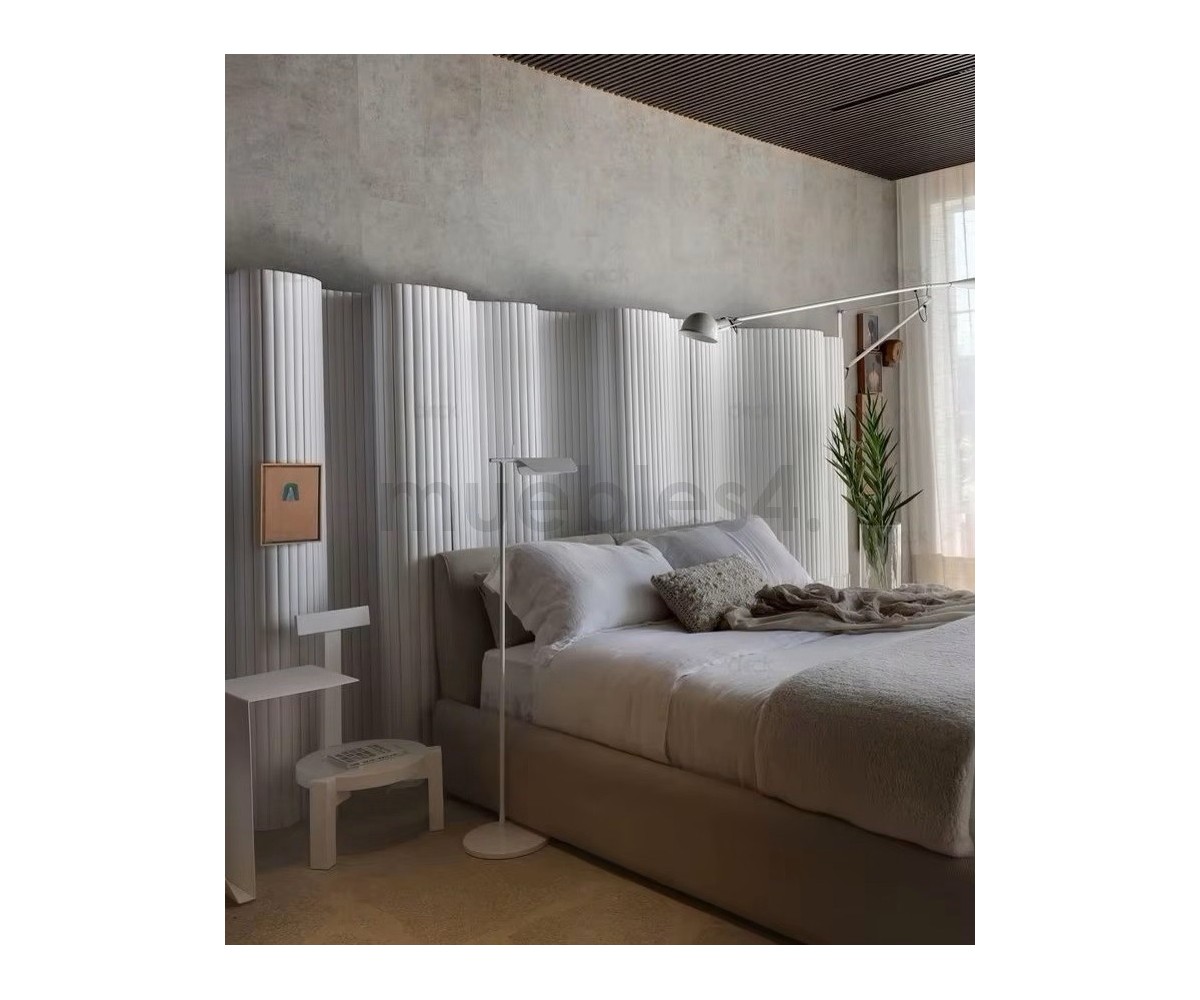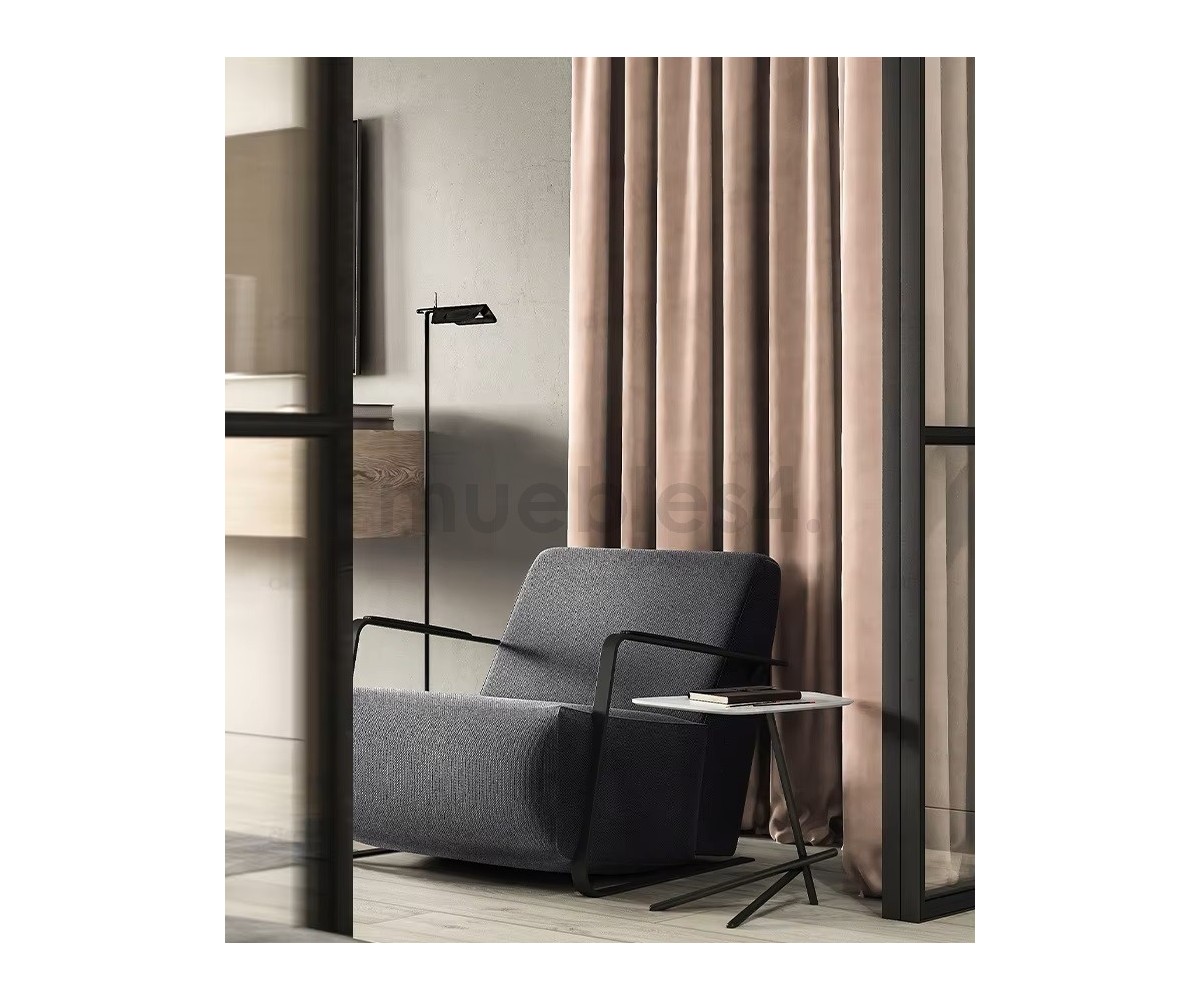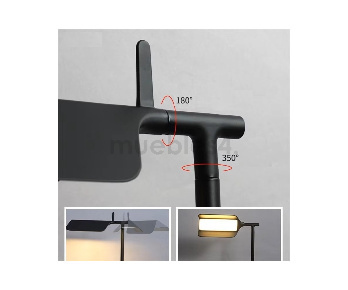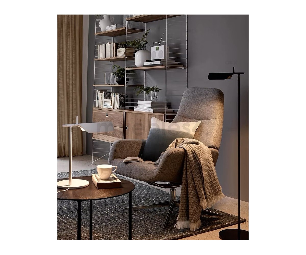 Lámpara de suelo inspirada en un diseño de Edward Barber & Jay Osgerby. La pantalla de la lámpara de mesa Tab se sitúa como un techo sobre los LED, cuyo haz de luz puede dirigirse en la dirección deseada mediante el cabezal giratorio.