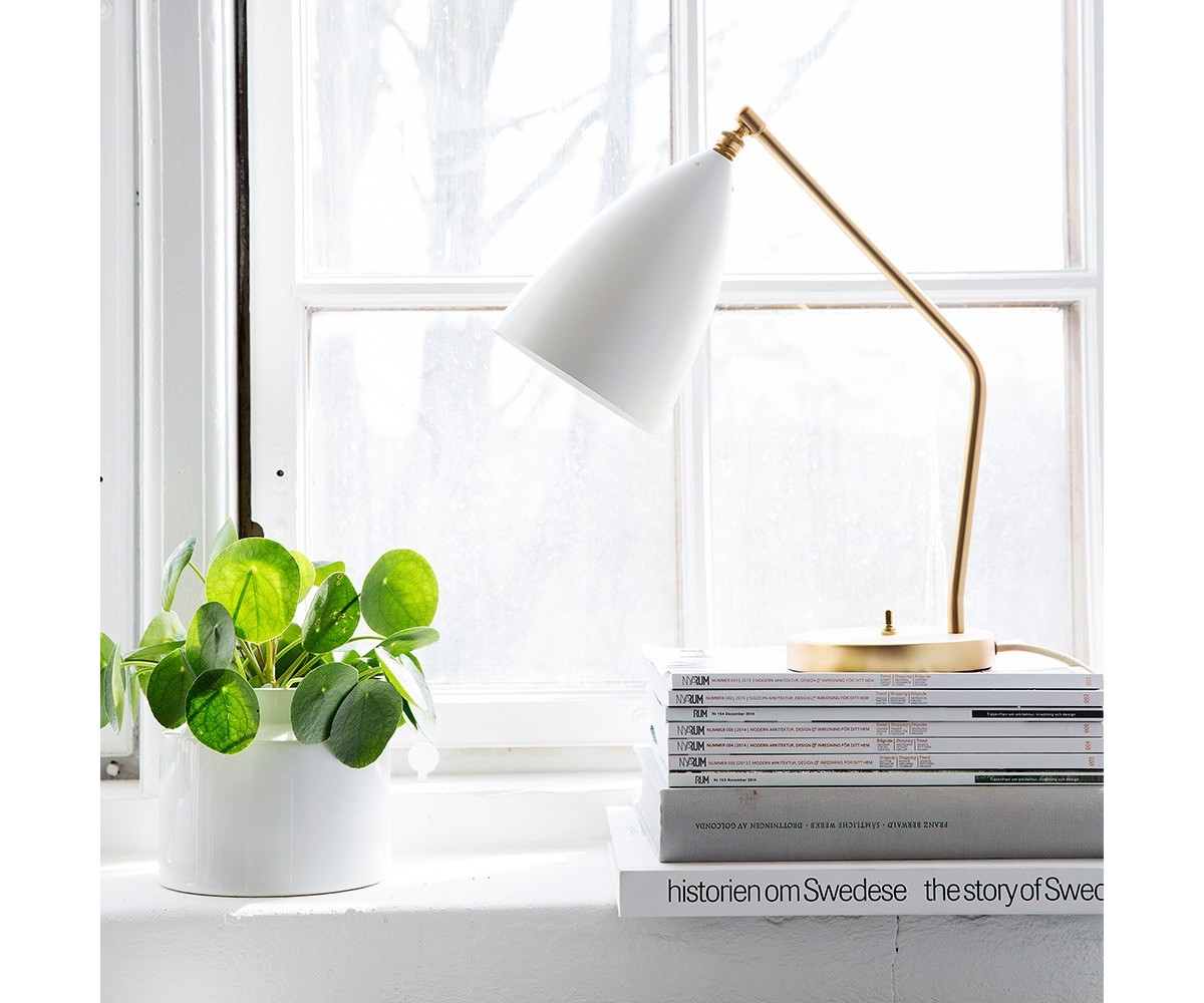 Lámpara de sobremesa / flexo, inspirada en un diseño de Greta Grossman para Gubi. Estructura fabricada en latón, campana en acero con TRIPLE LACADO color negro o blanco. También disponible en lámpara supendida, suelo y aplique. Modelo de bombilla E14. Fabricada en Italia. Réplica exacta con materiales originales de máxima calidad.