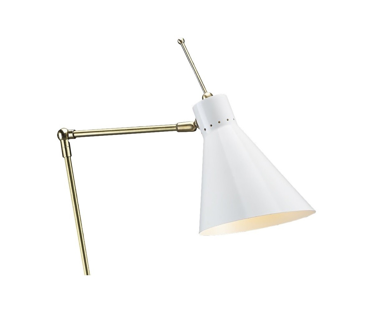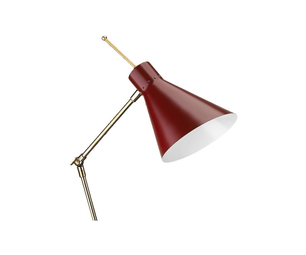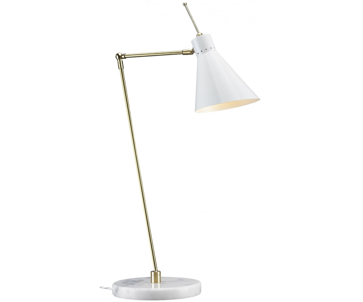 Lámpara de sobremesa / flexo, inspirado en un diseño de Vittoriano Vigano. Base circular de mármol blanco macael, cuerpo de dos brazos articulados en latón, campana en acero con TRIPLE LACADO color negro, blanco o granate. Cable retorcido de tela. Modelo de bombilla E27 no incluida. Fabricada en Italia. Réplica exacta con materiales originales de máxima calidad.