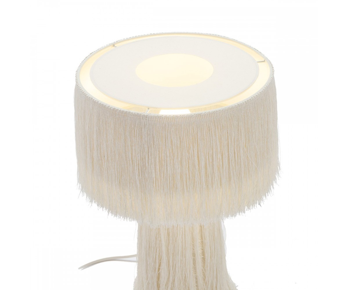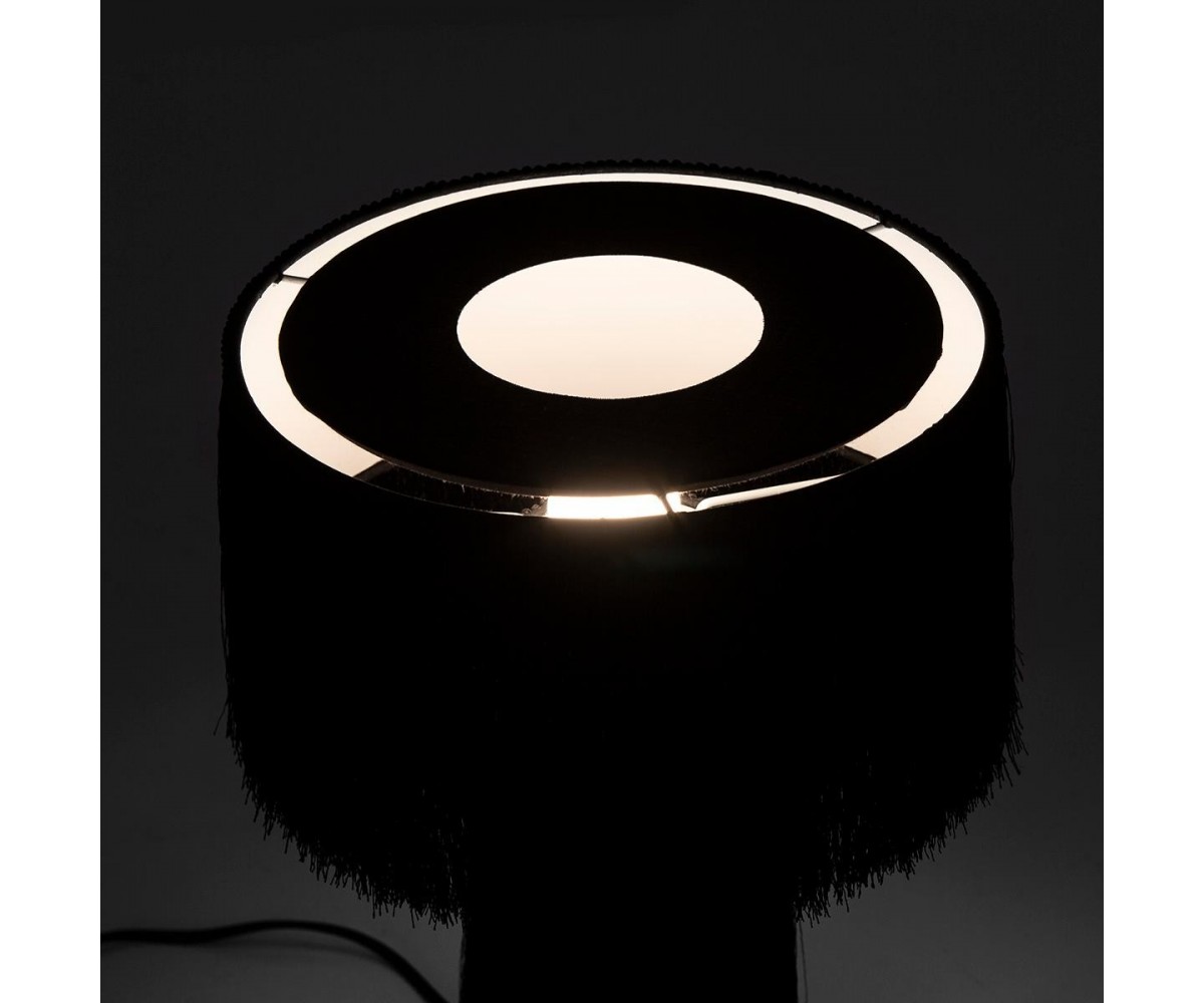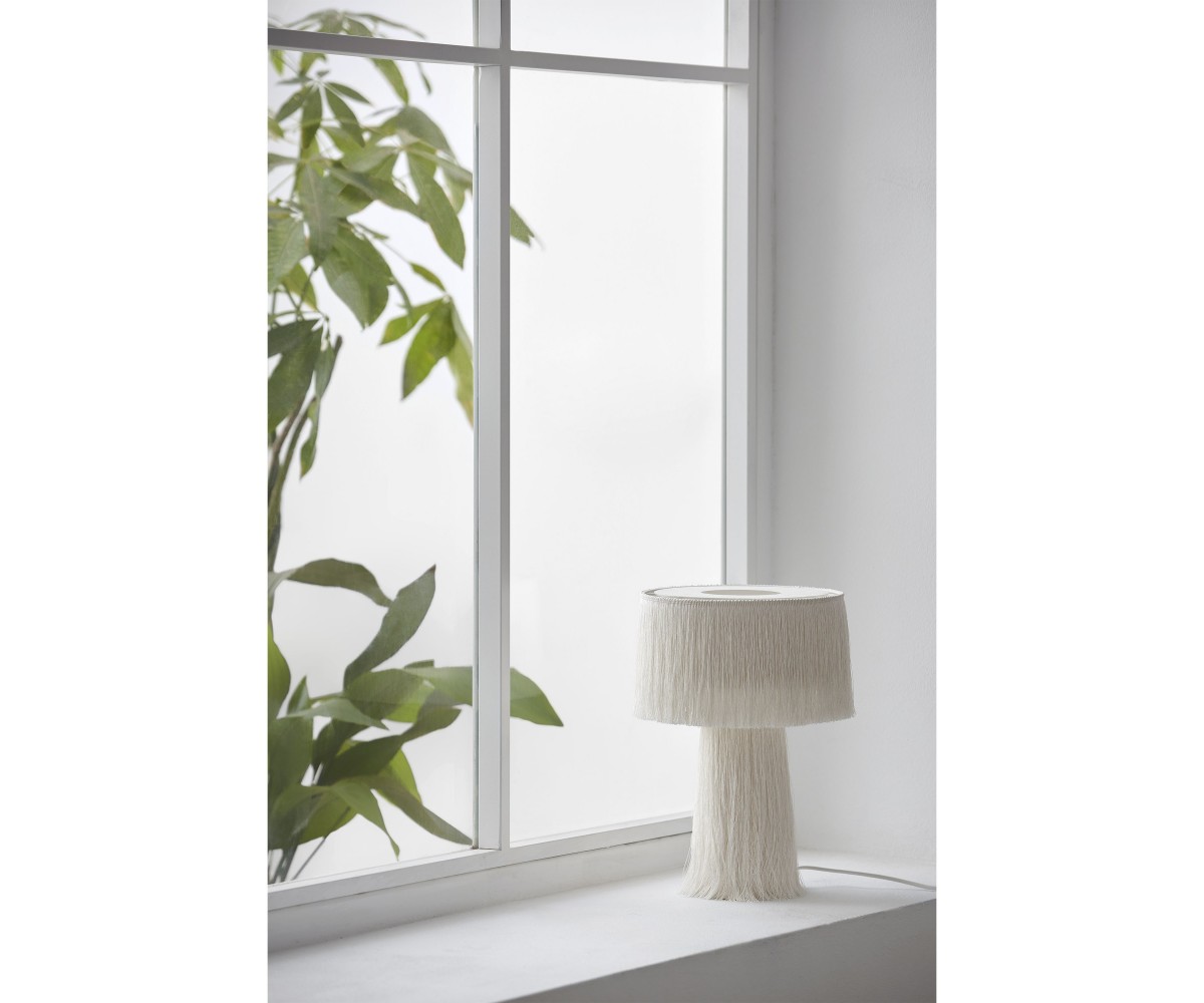Lámpara de sobremesa inspirada en un diseño de Hans-Age Jakobbson para Markaryd. Base cónica y tulipa circular, fabricada en tela y hilos de seda color beig o negro. Modelo de bomilla E14 no incluida. Réplica exacta con materiales originales de máxima calidad.