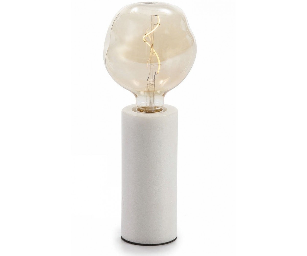 Lámpara de sobremesa inspirada en un diseño de Edgar H. Base tubular en mármol color blanco veteado, bombilla uniforme filamentos Edison E27 Led. Réplica exacta con materiales originales de máxima calidad.