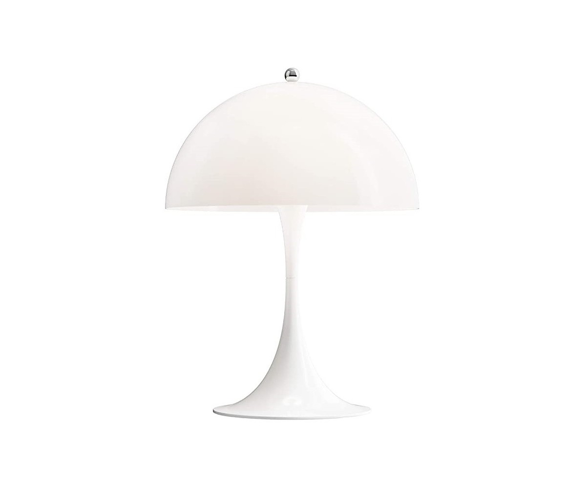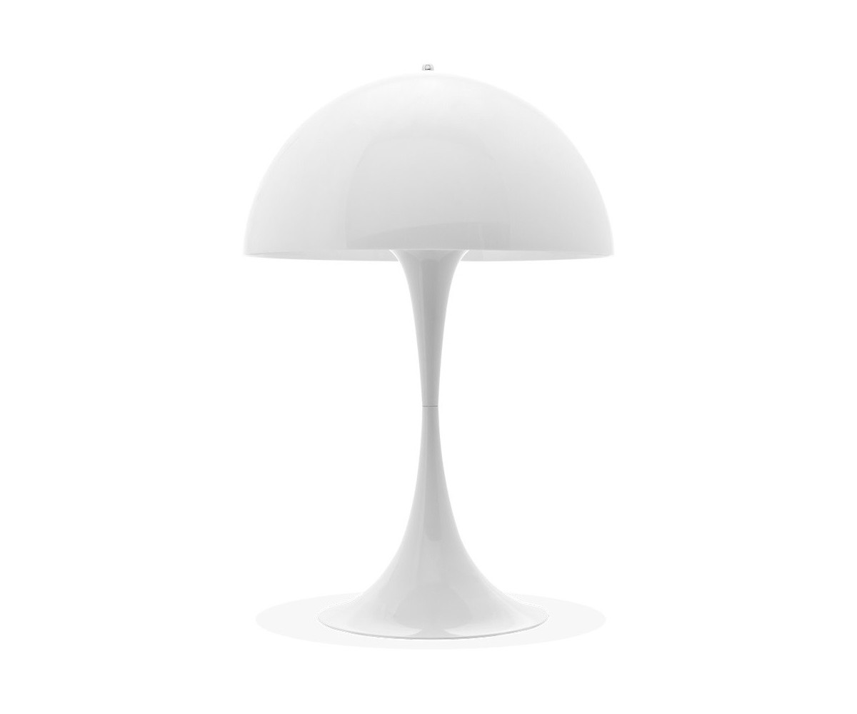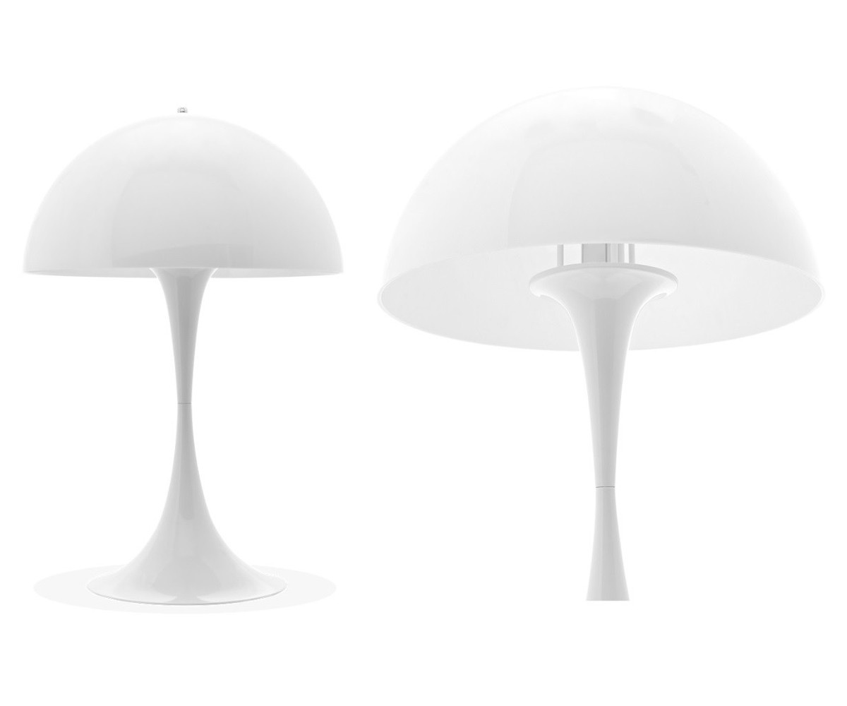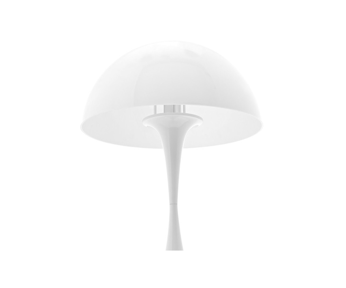 Lámpara de sobremesa procedente de Dinamarca, inspirada en un diseño de Verner Panton para Louis Poulsen. Presentamos un icono de la luz, su autor danés concebía la casa como una trama imaginativa de volúmenes, colores y texturas, donde la iluminación cumplía una función fundamental.Cuerpo en aluminio, lacado al horno terminación blanco.