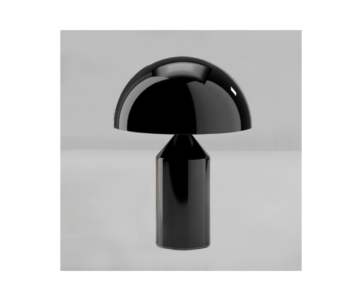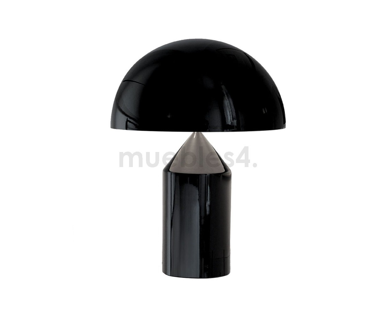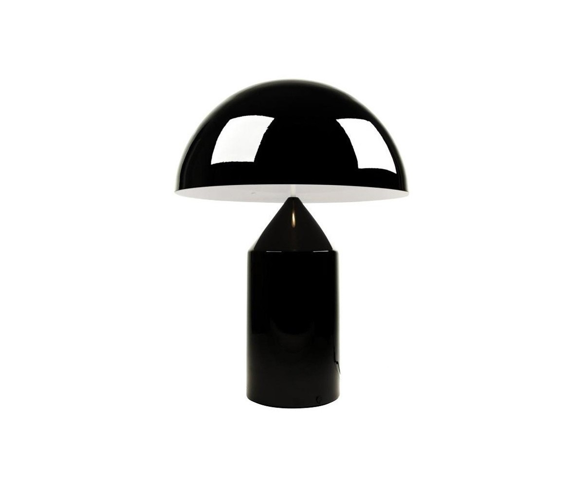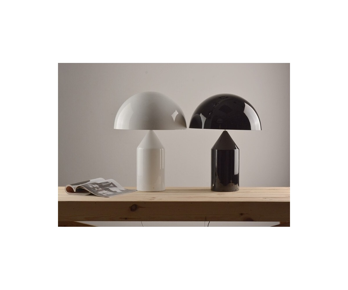 Lámpara de sobremesa inspirada en un diseño de Vico Magistretti. Se ha convertido en un icono, uno de los símbolos más conocidos del diseño italiano. Construcción geométrica de sus formas, cono en el cilindro y la semisfera. Una escultura luminosa.
