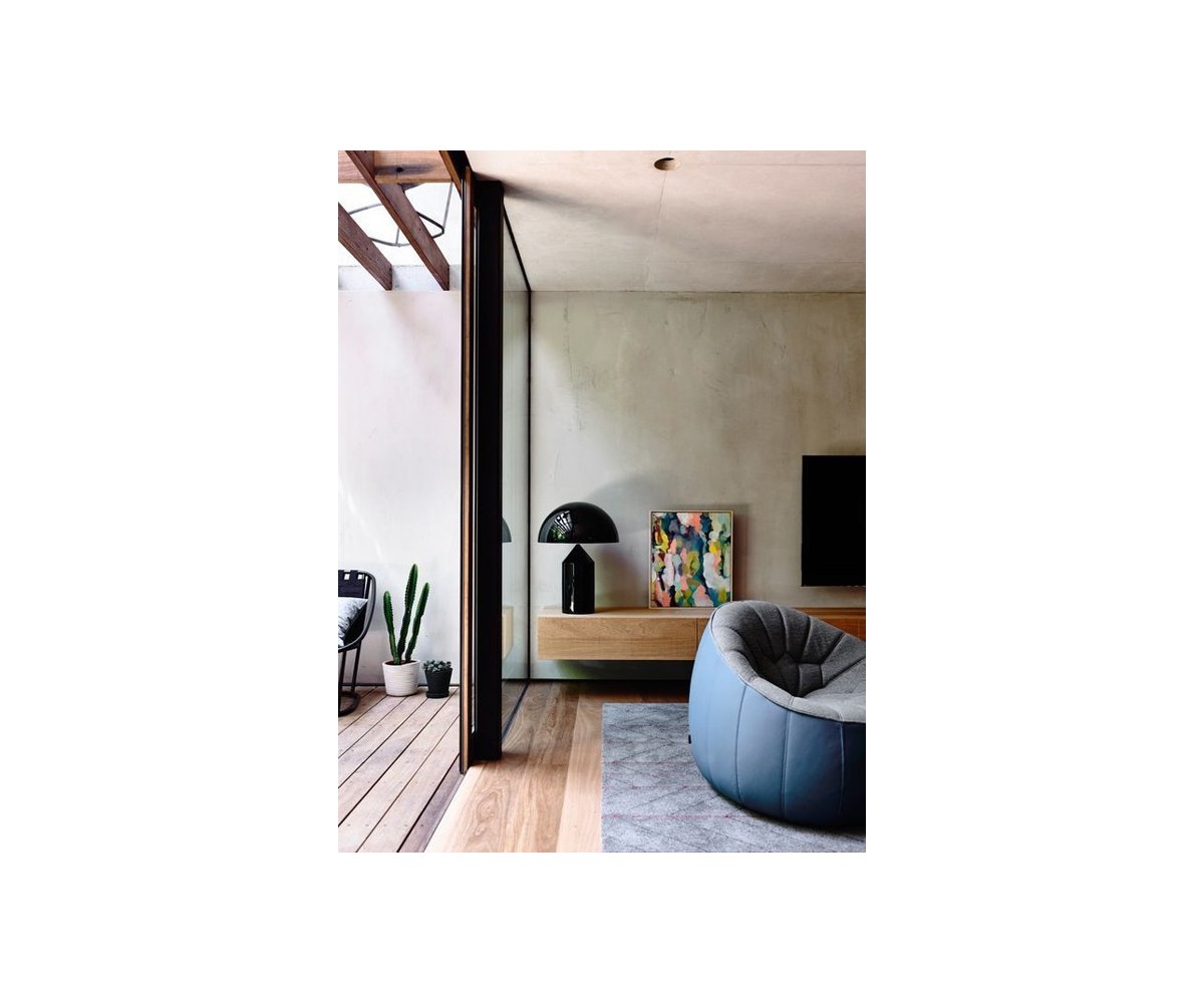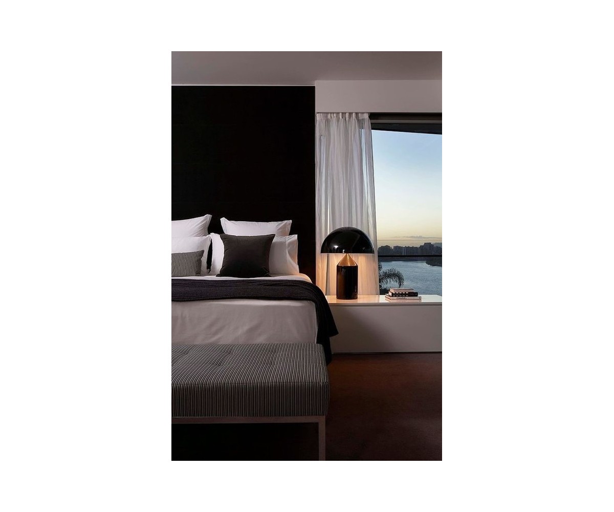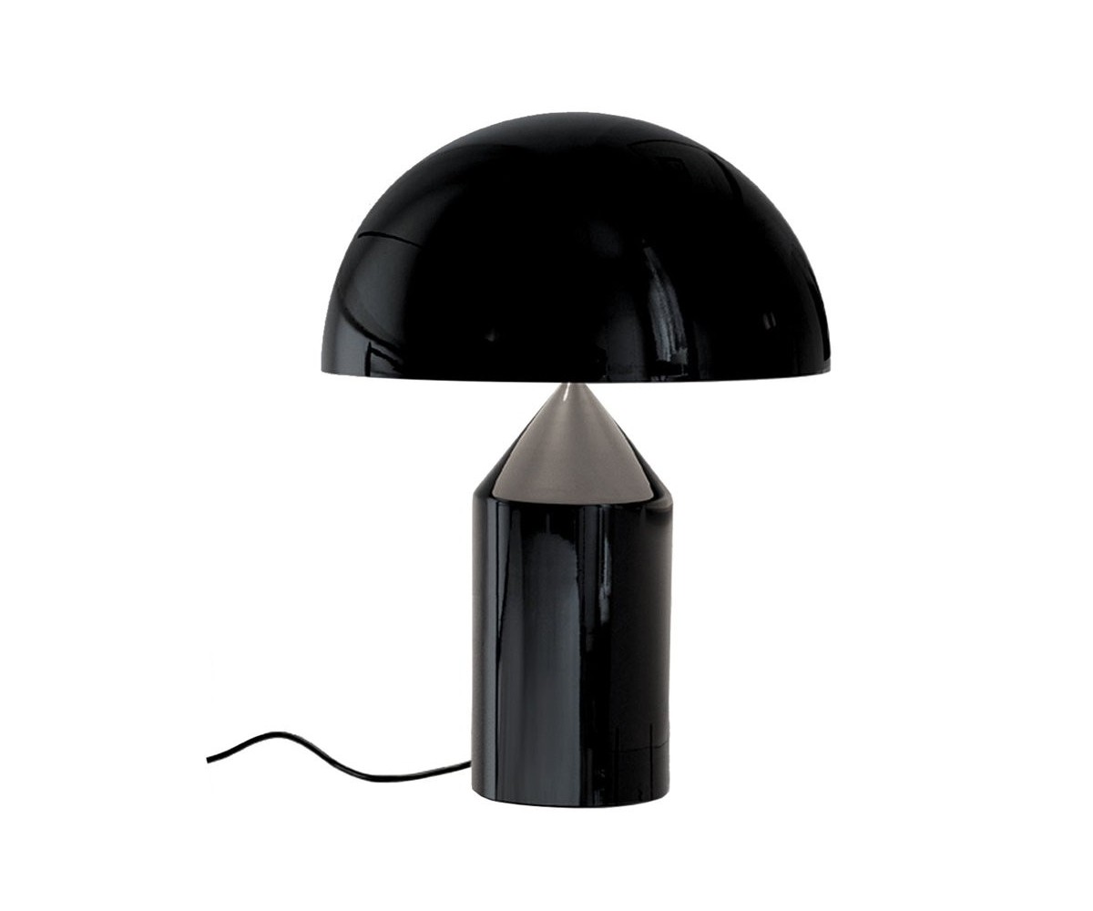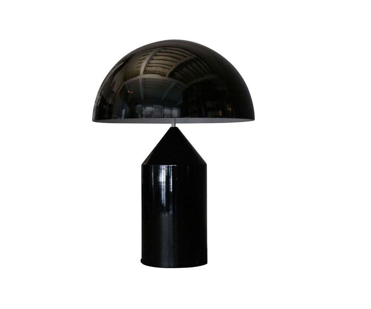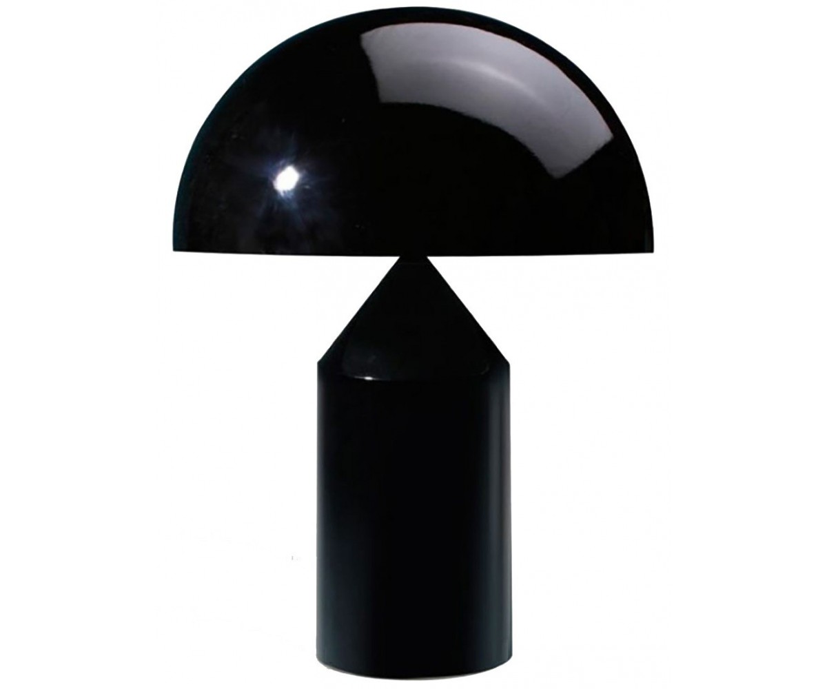 Lámpara de sobremesa inspirada en un diseño de Vico Magistretti. Se ha convertido en un icono, uno de los símbolos más conocidos del diseño italiano. Construcción geométrica de sus formas, cono en el cilindro y la semisfera. Una escultura luminosa.