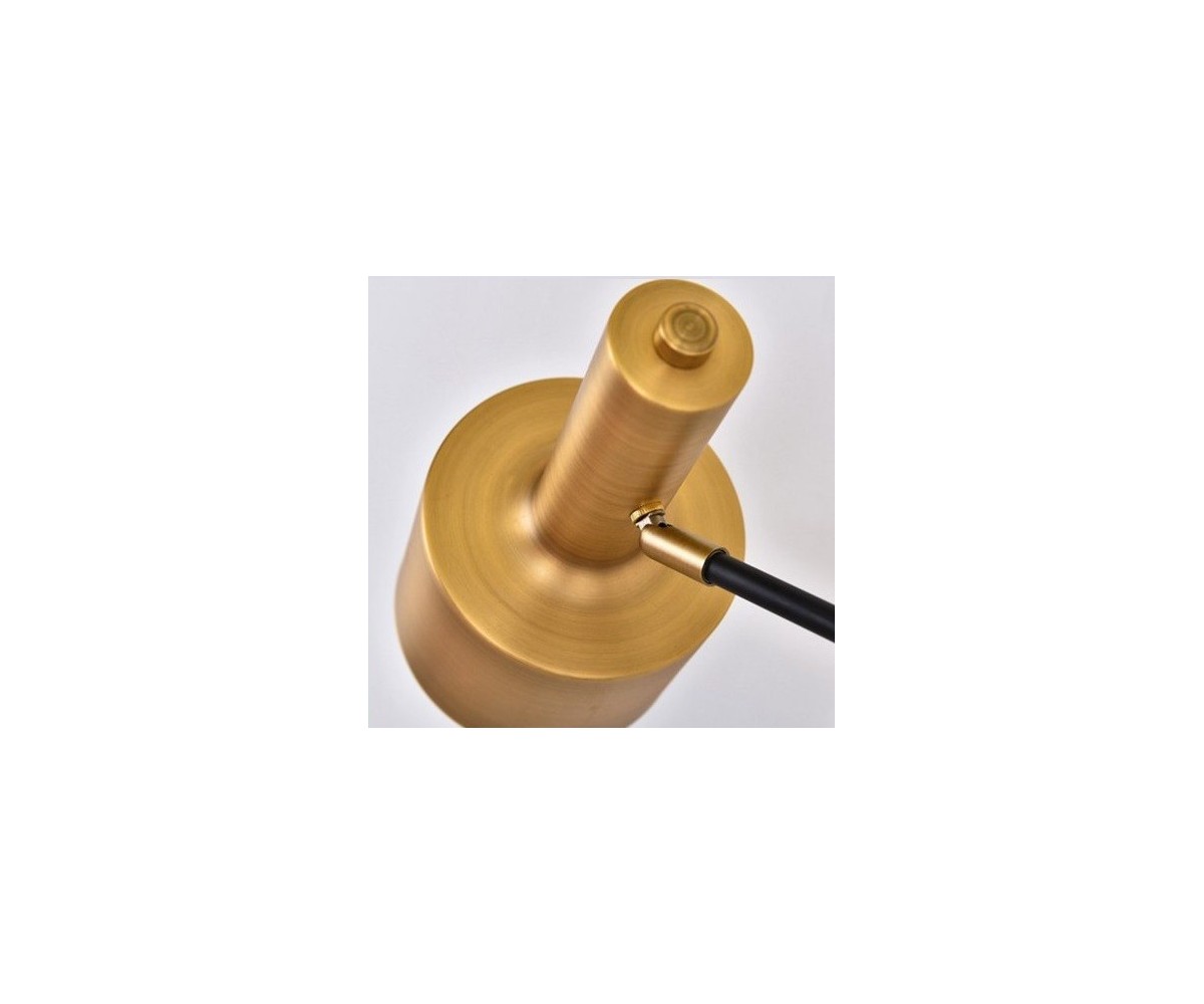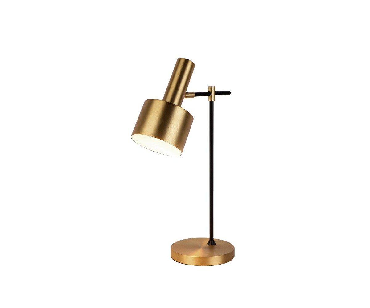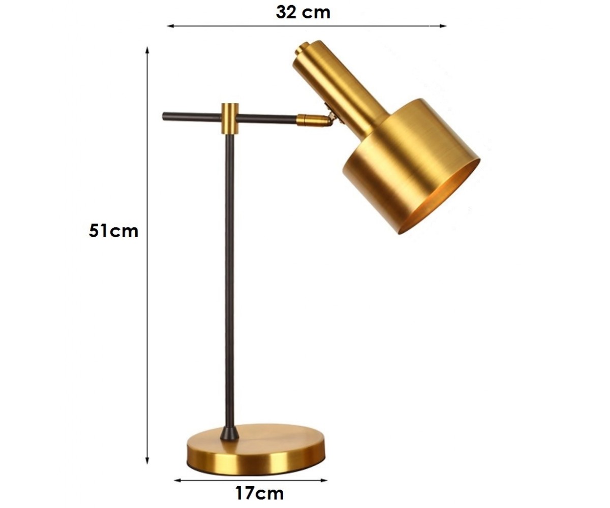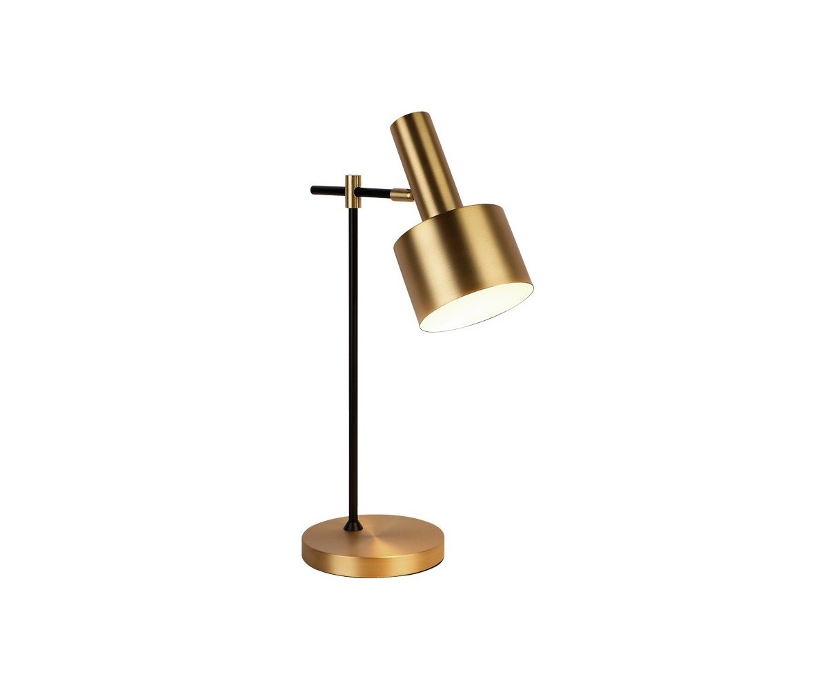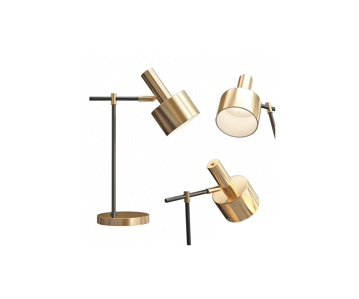 Lámpara de sobremesa y lectura, inspirada en un diseño de Jo Hammerborg para Fog and Mørup en 1963. Fabricada en acero dorado y lacado color negro. Tulipa orientable. Rosca para bombilla E27, no incluida. Réplica con materiales originales de máxima calidad.