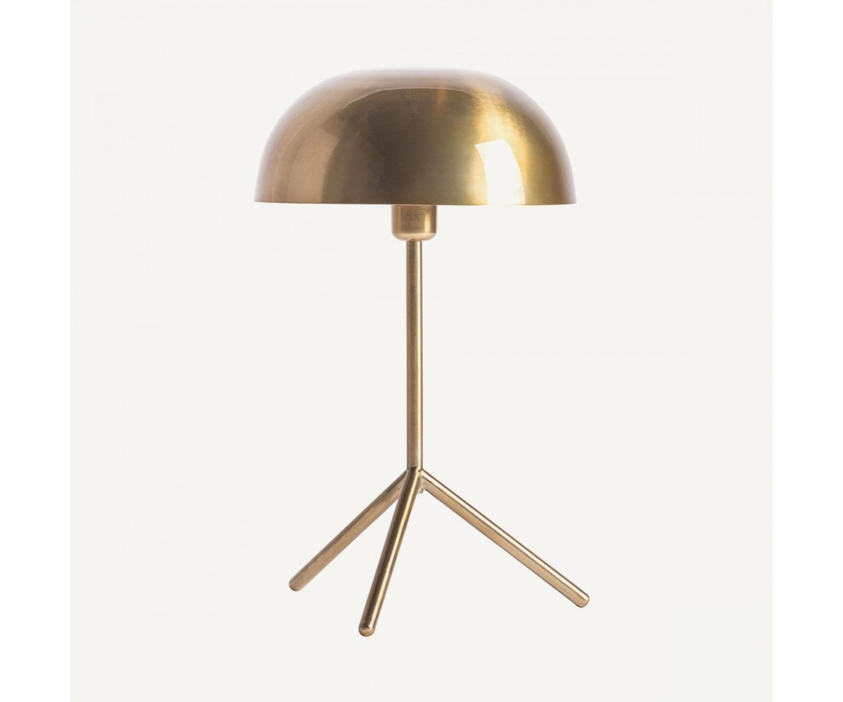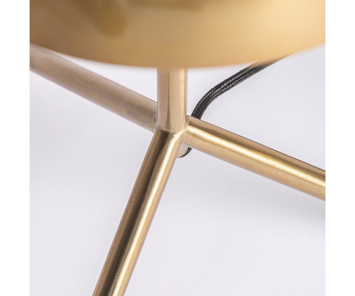 Lámpara de sobremesa ART DECO, inspirado en un diseño de Paavo Tynell. Cuerpo y tulipa fabricada en acero, terminación dorado. Medidas de la pantalla 30x30x13cm. Largo del cable 220cm, distancia al interruptor 45cm. Rosca de bombilla modelo E27 no incluida, máximo 5W LED. Peso total 1.7kg. Réplica con materiales originales de máxima calidad.