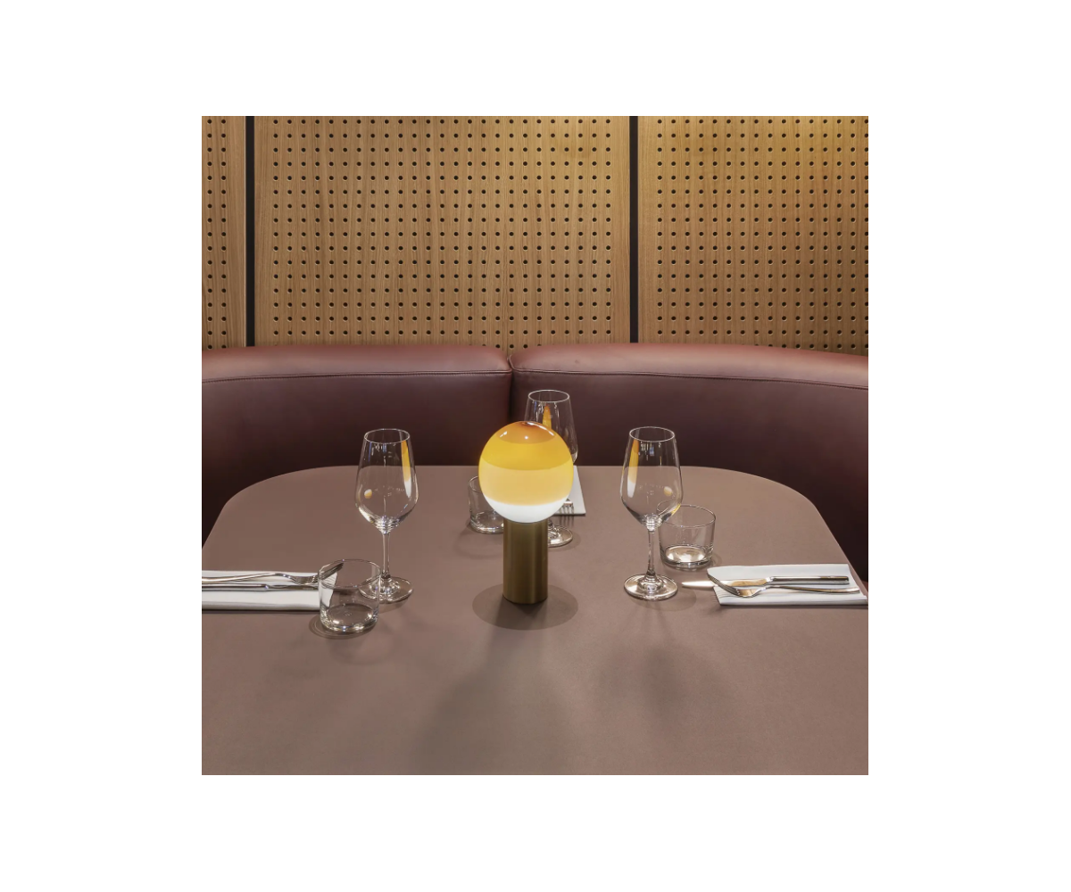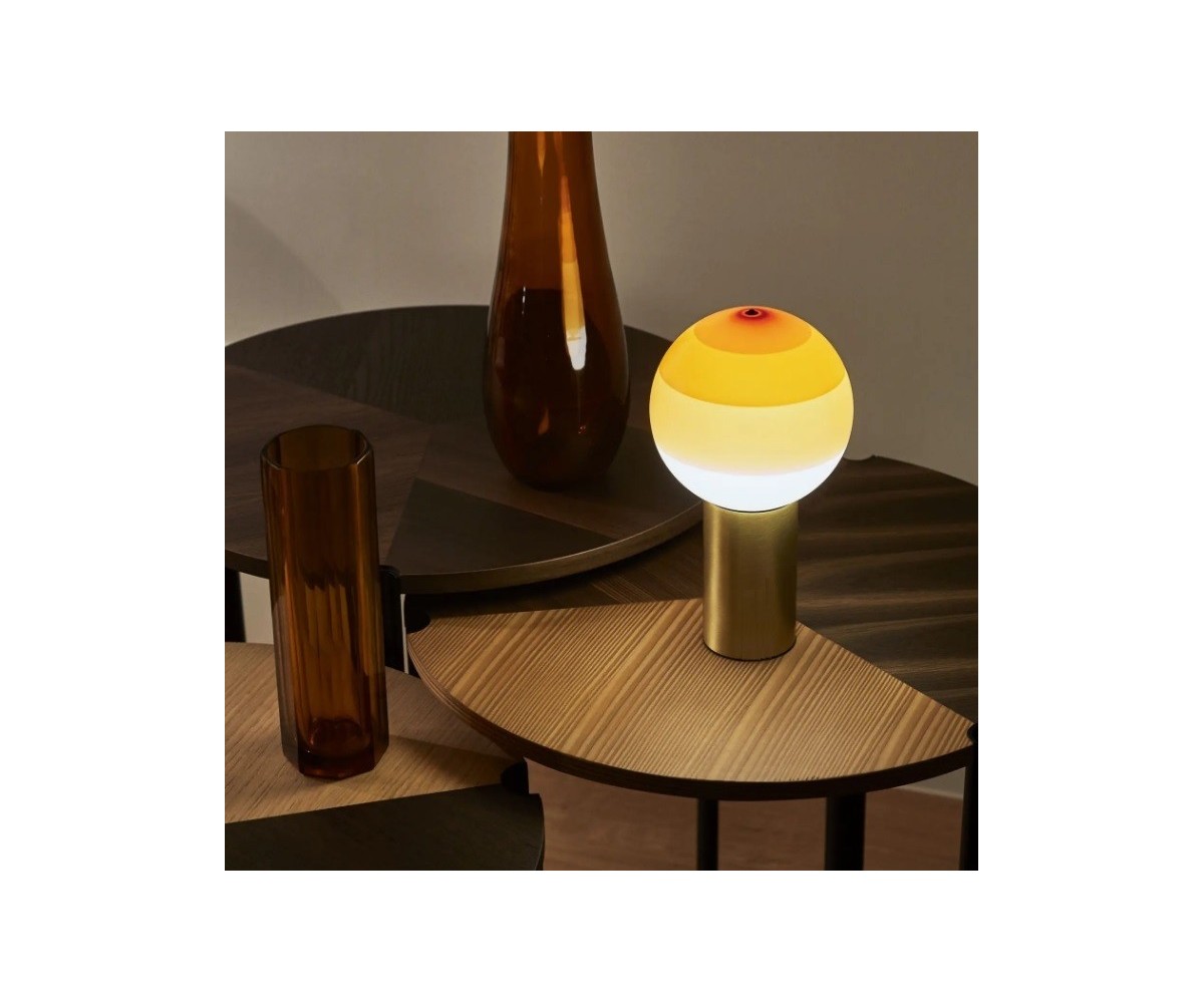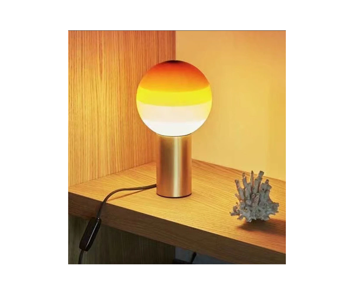 Lámpara de sobremesa donde se juega con el color y la luz del difusor. Se trata de una réplica inspirada en un diseño de Jordi Canudas. Encendida las distintas tonalidades de pintura matizan la luz creando un ambiente único.